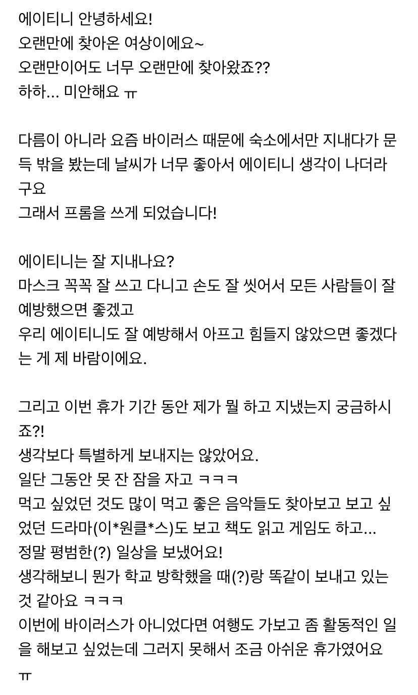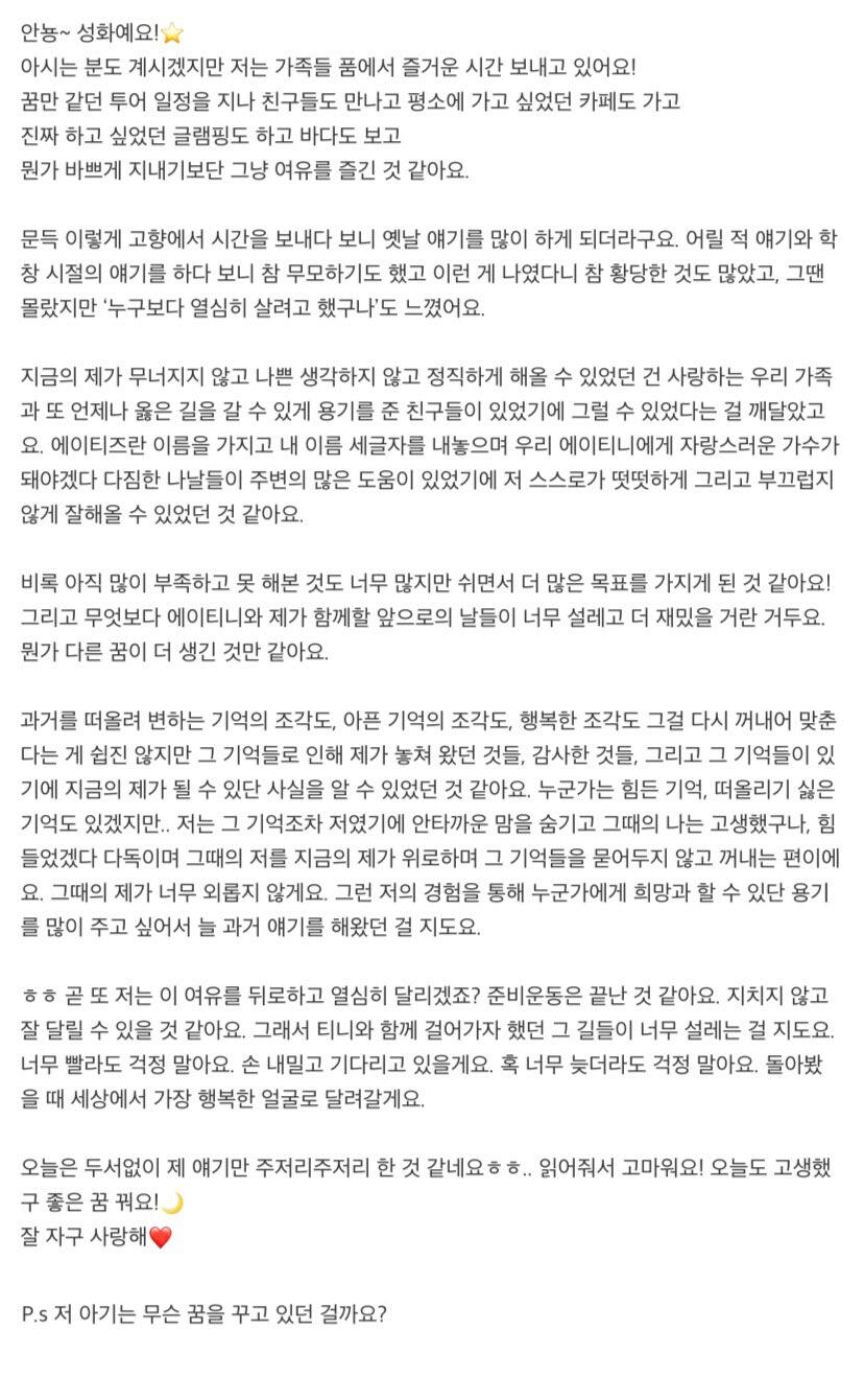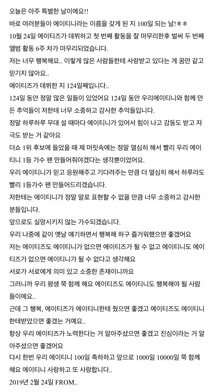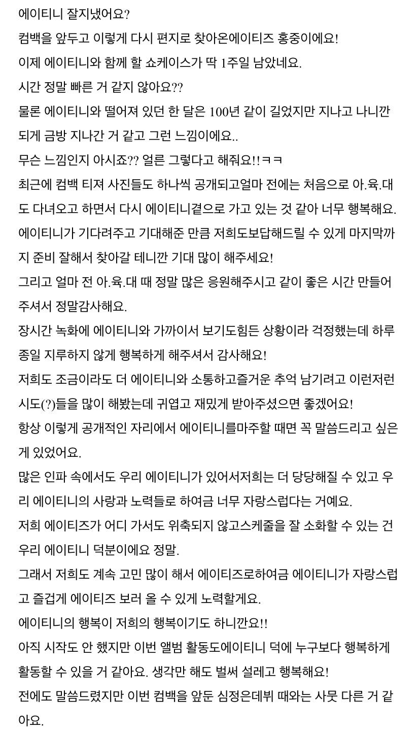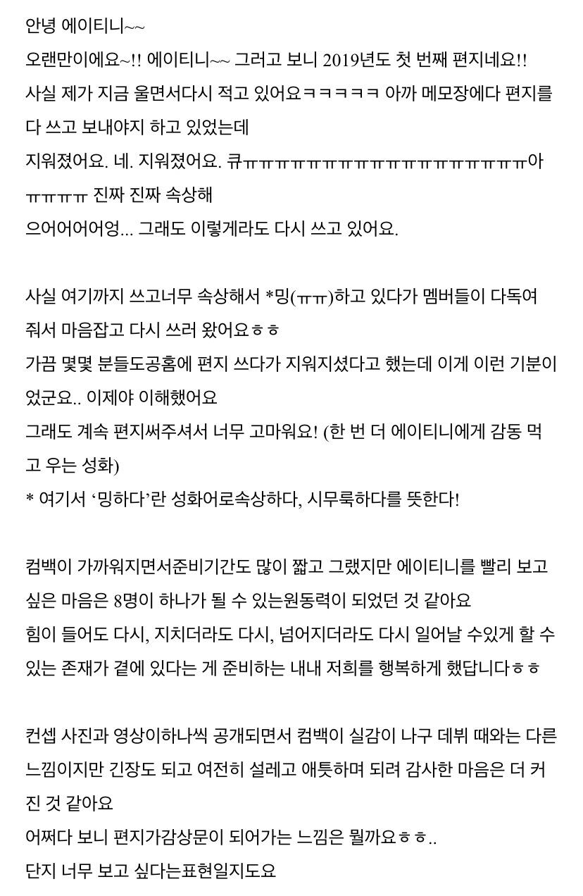 To. 너무 보고싶은 우리 에이티니