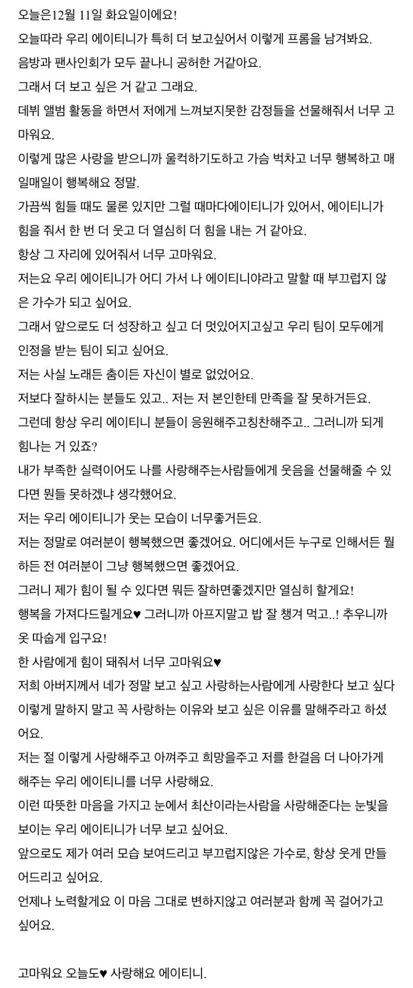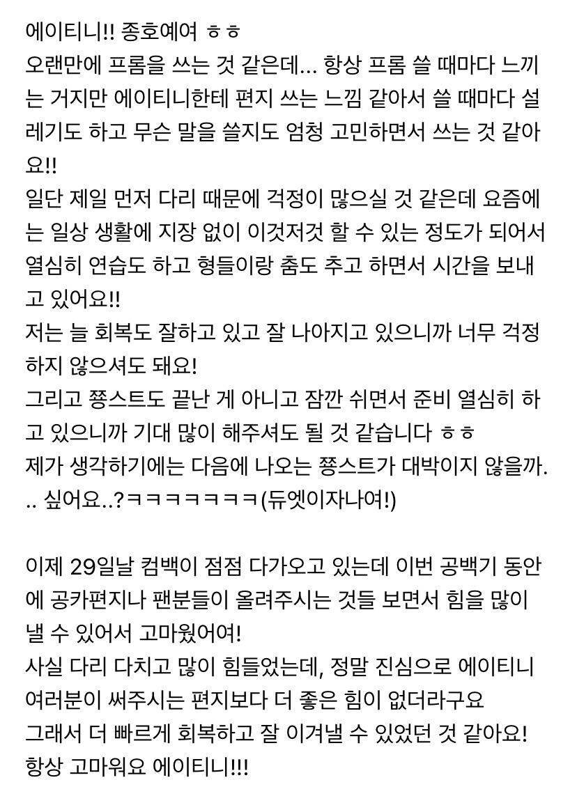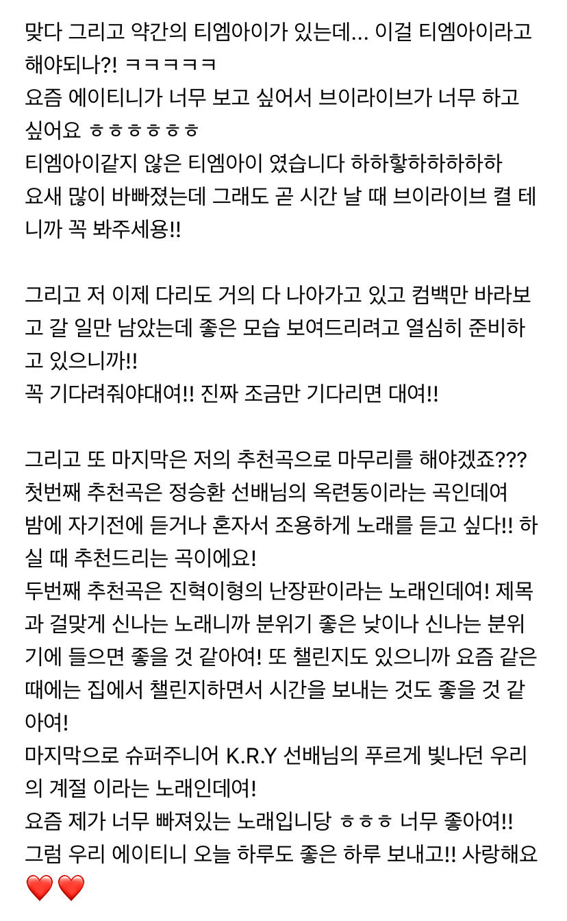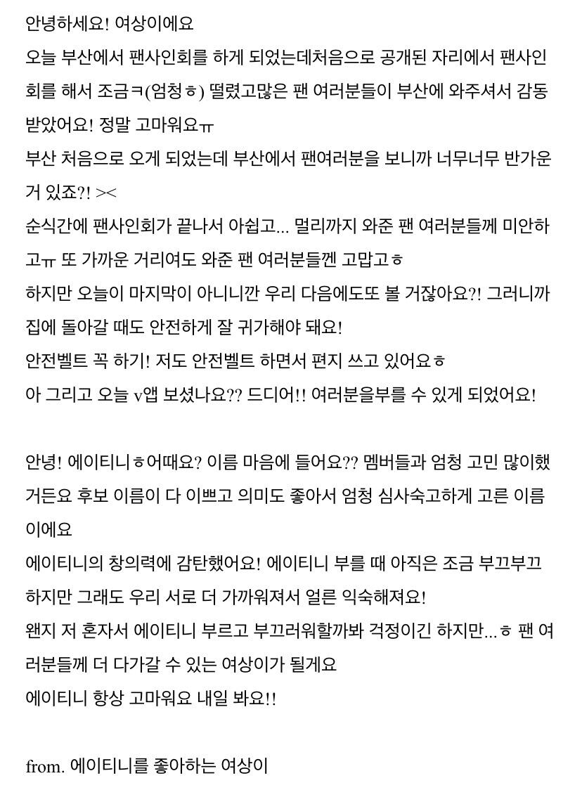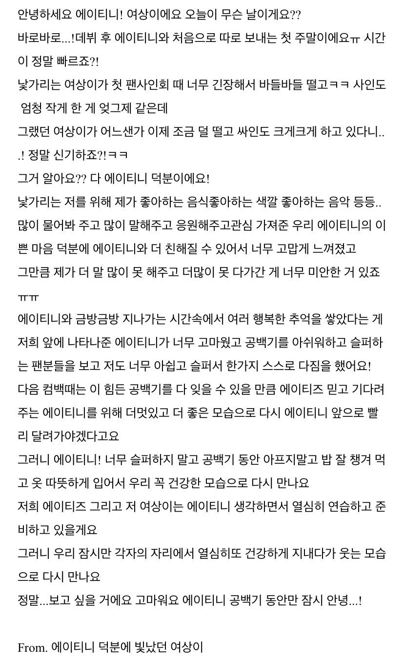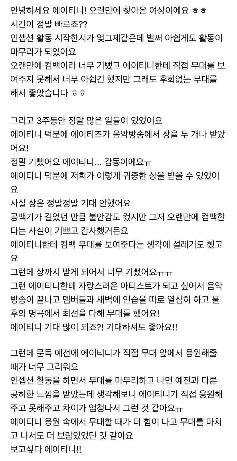 To. 너무 보고싶은 우리 에이티니