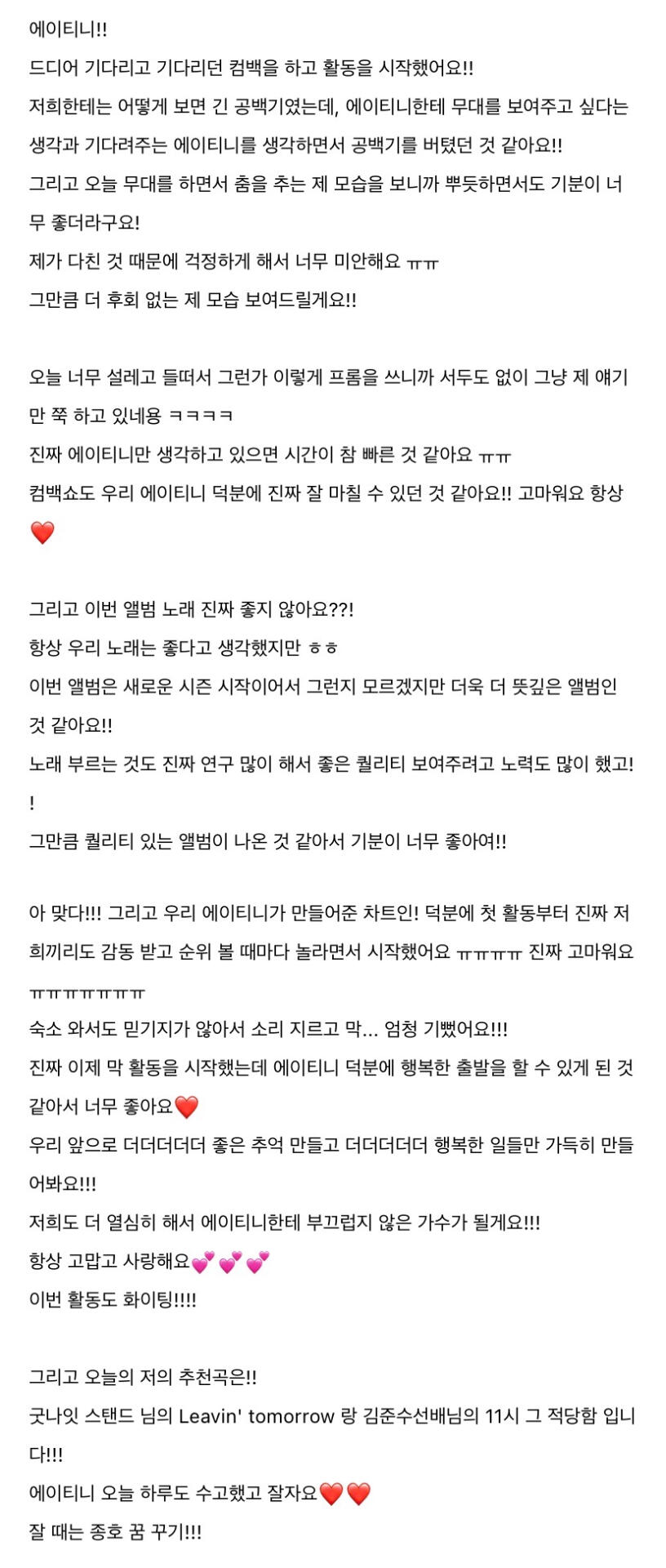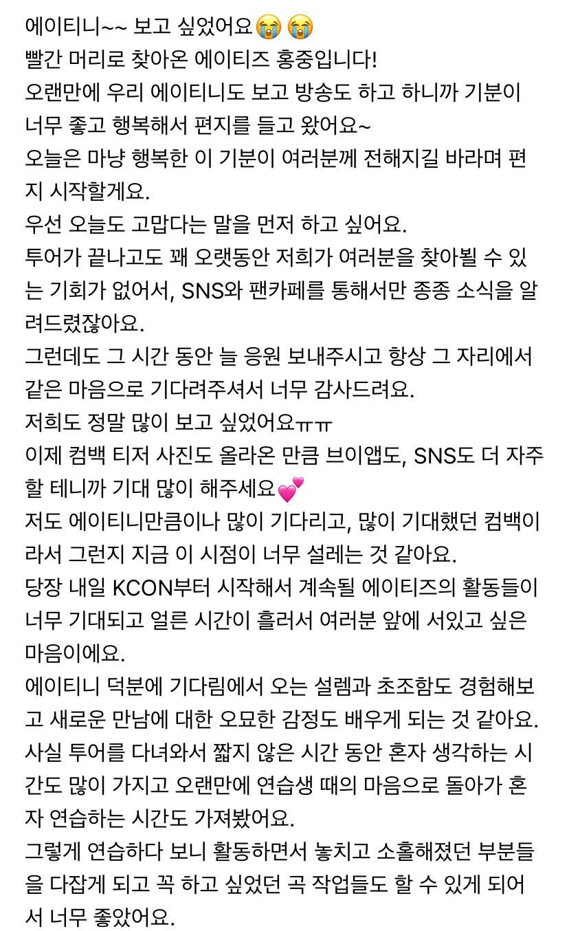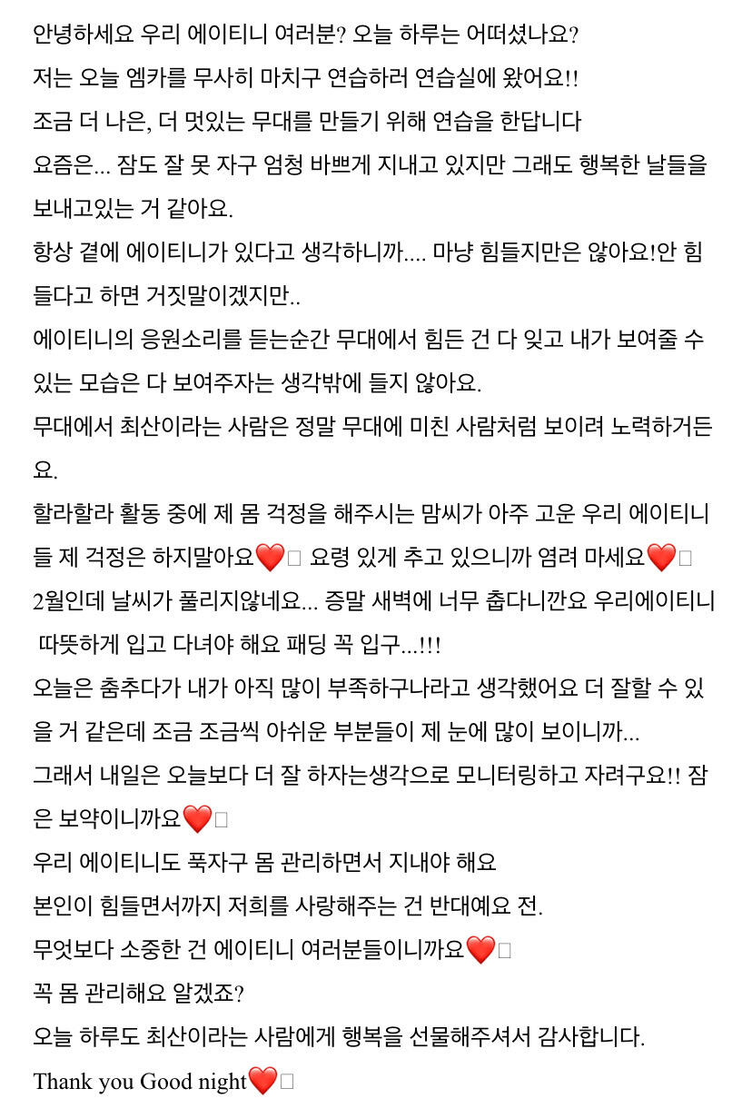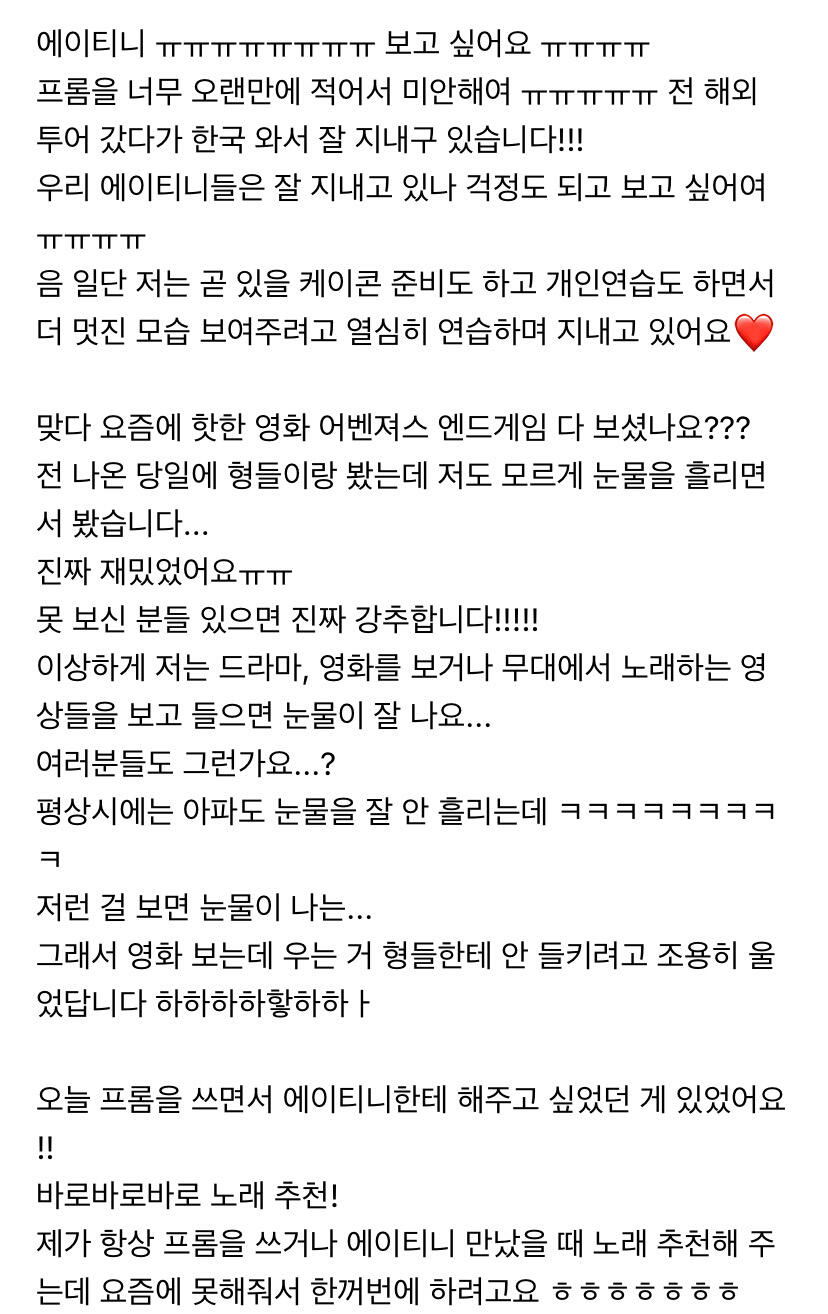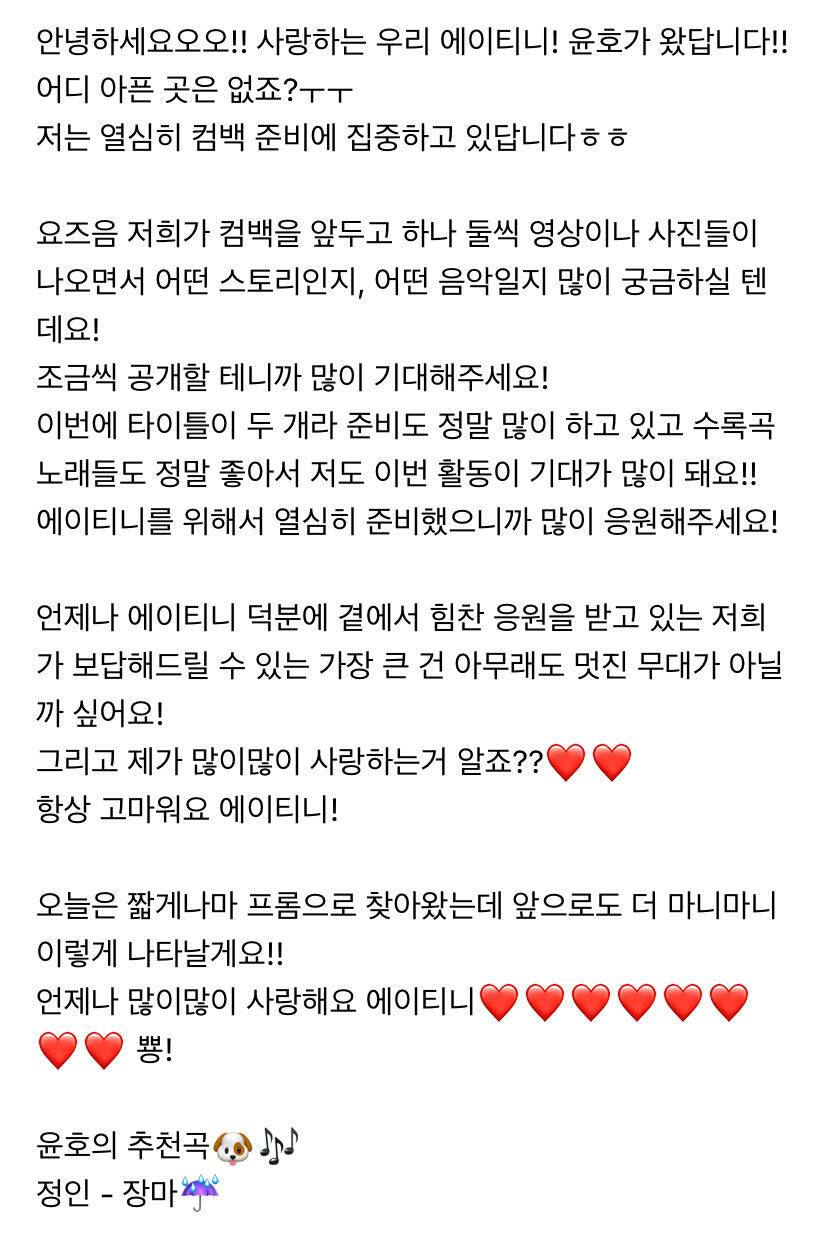 To. 너무 보고싶은 우리 에이티니