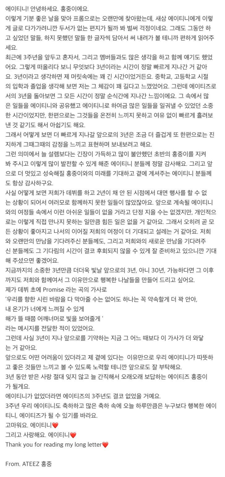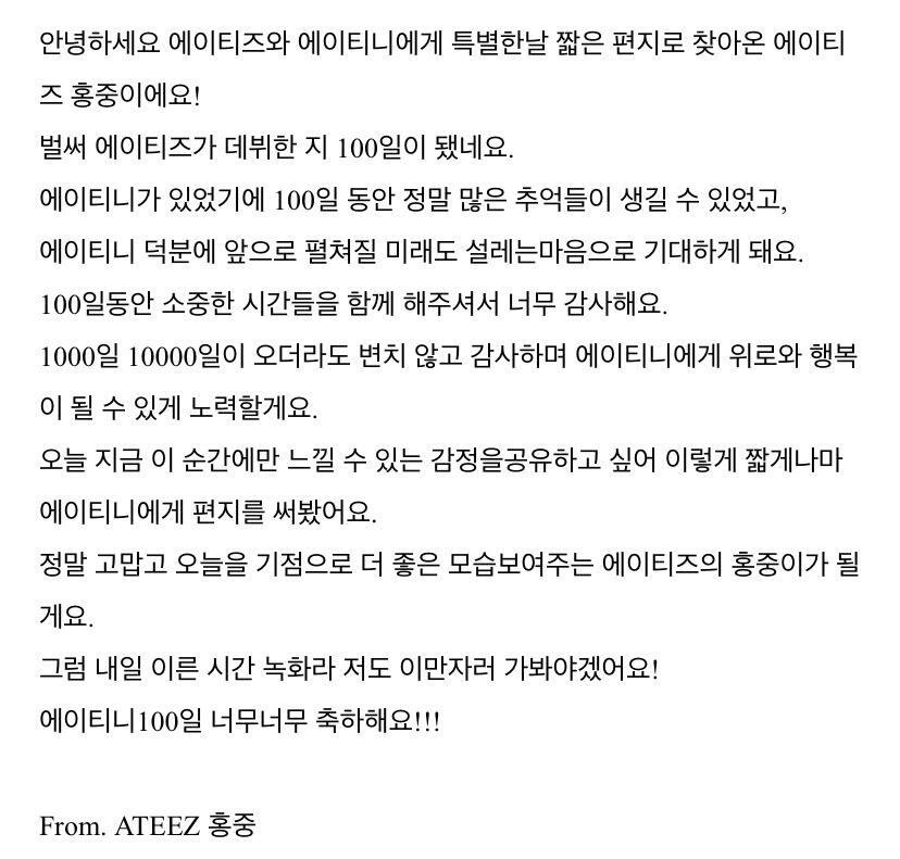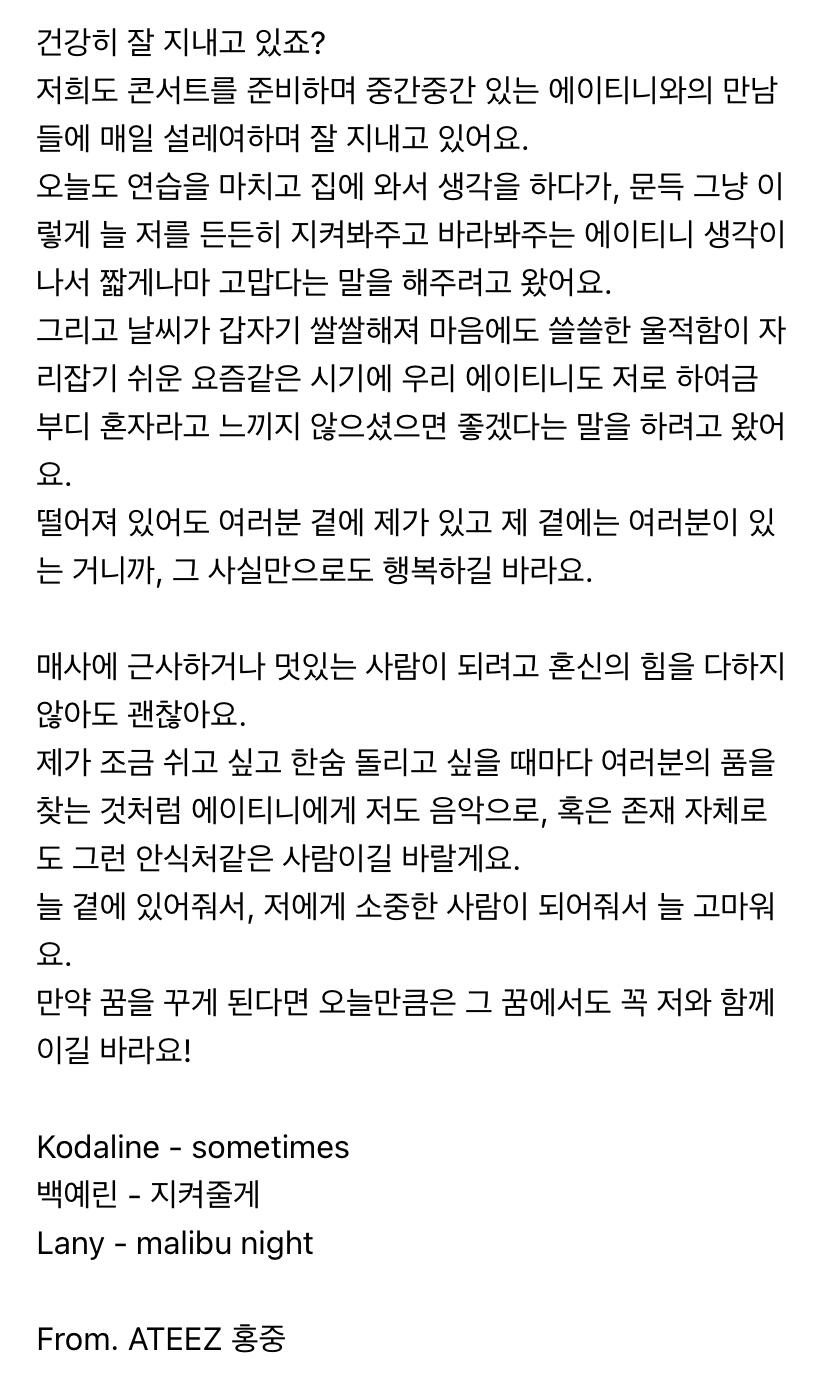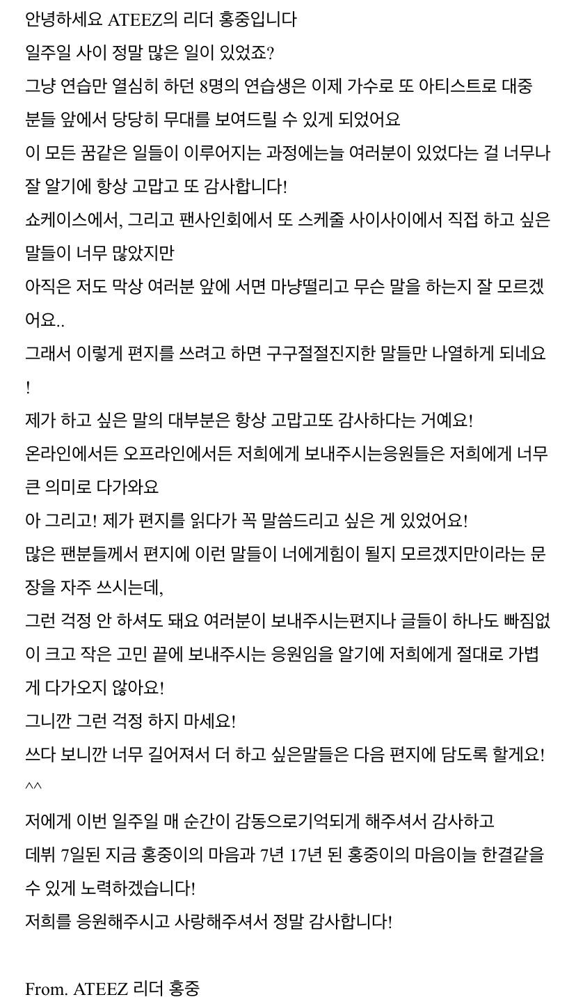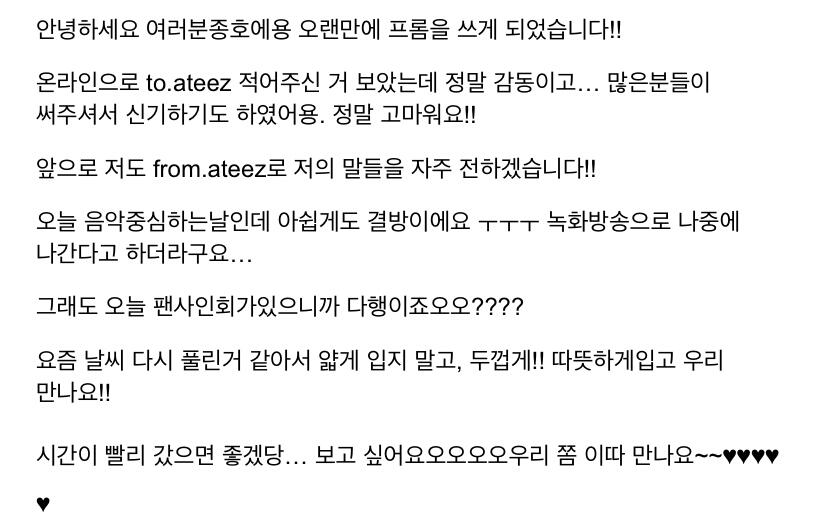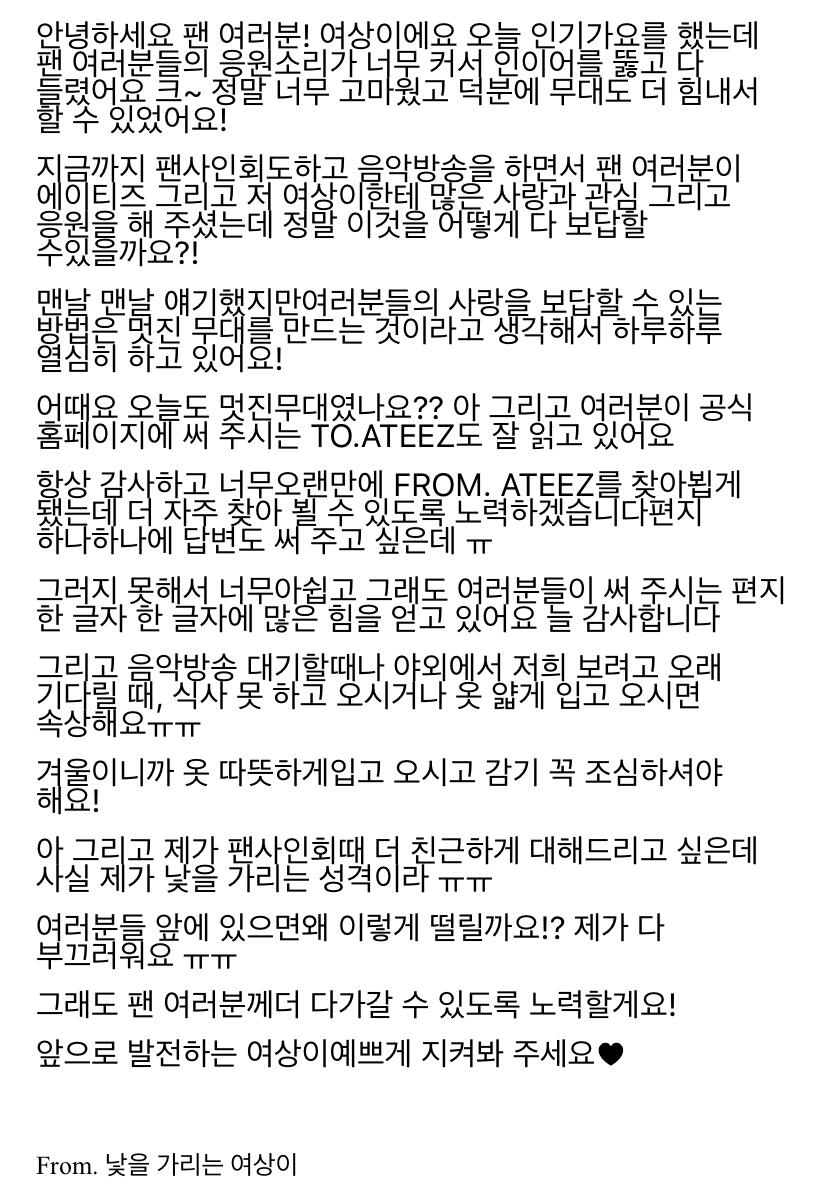 To. 늘 고마운 우리 ATEEZ 팬분들께