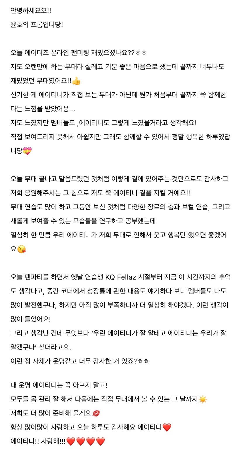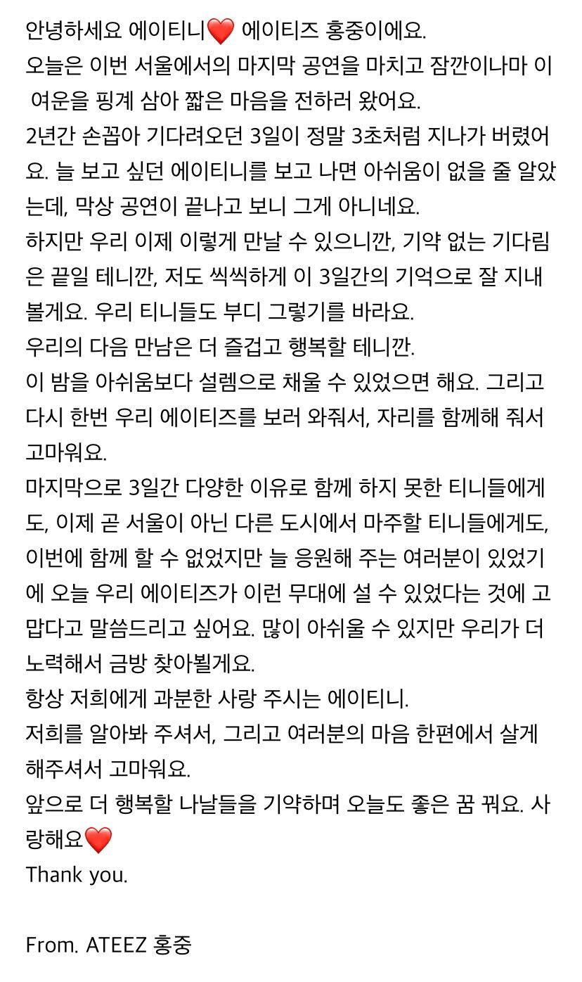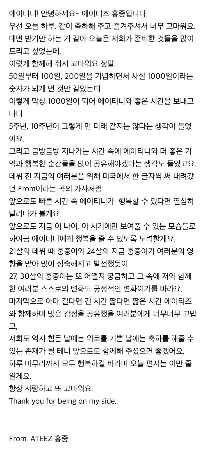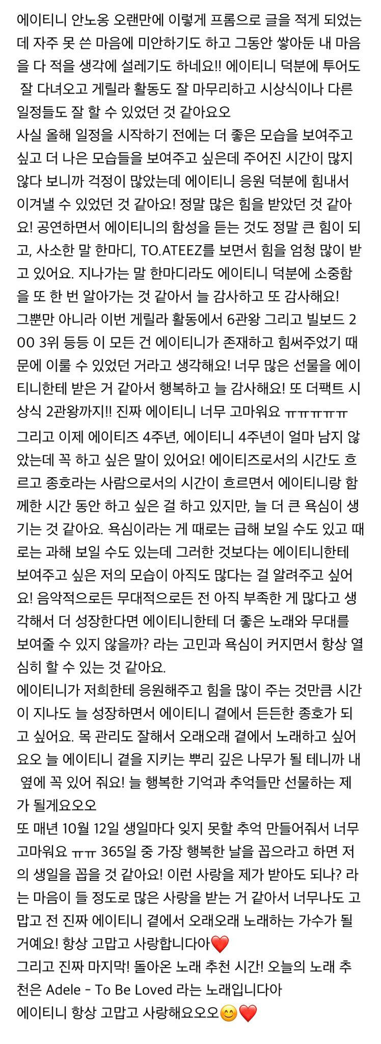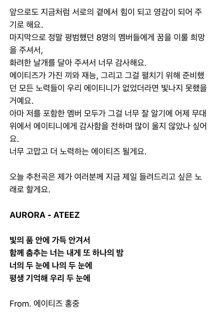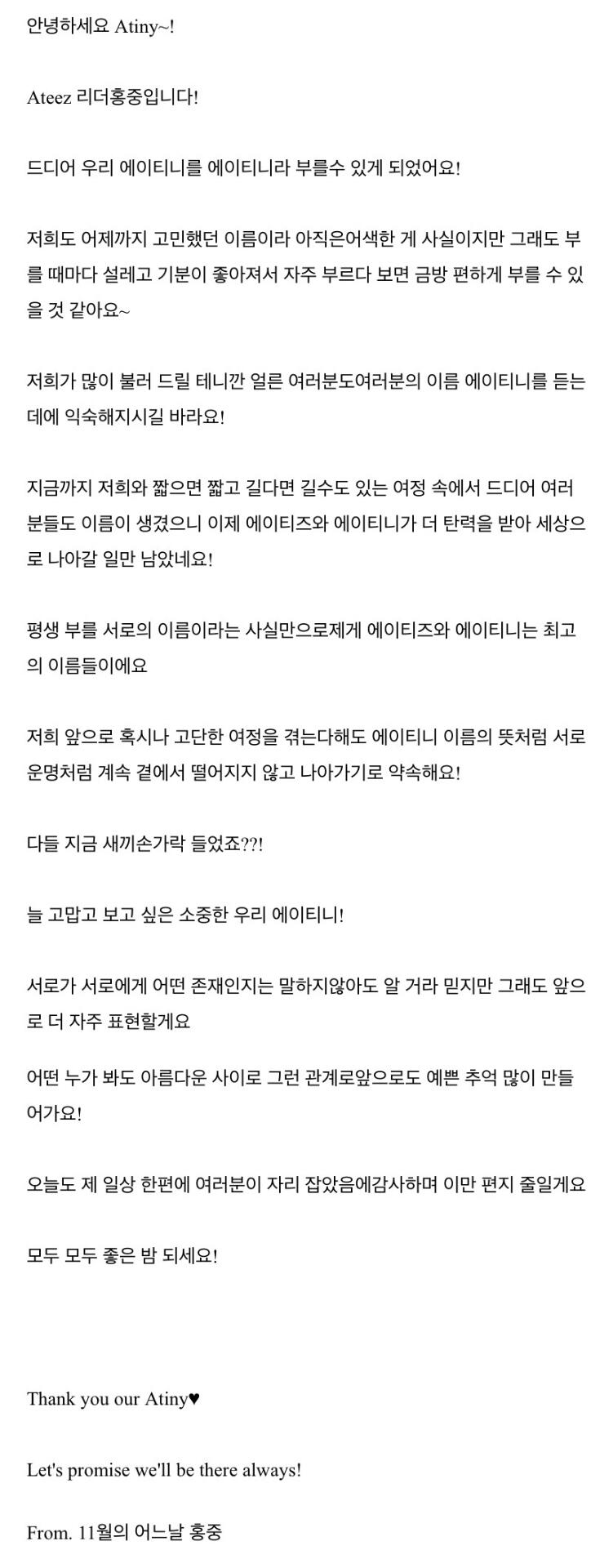 To. 늘 고마운 우리 ATEEZ 팬분들께