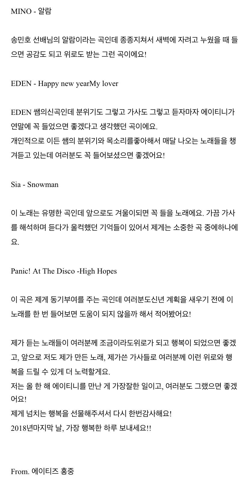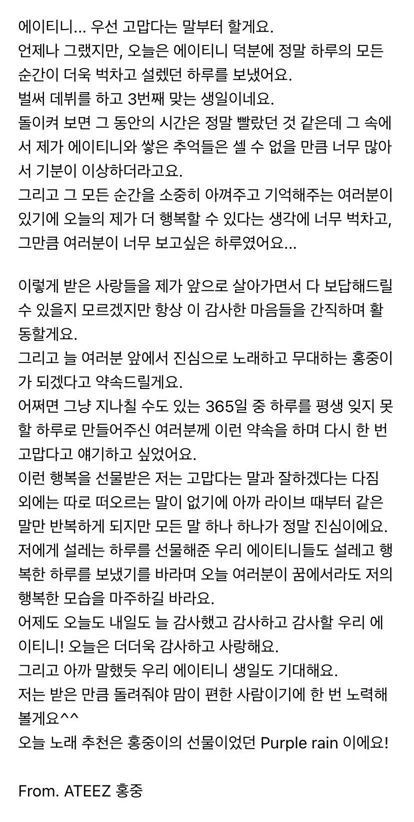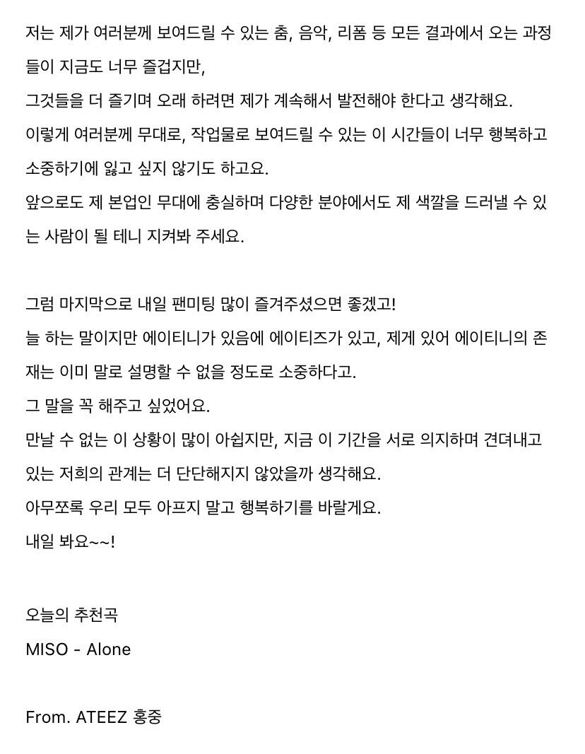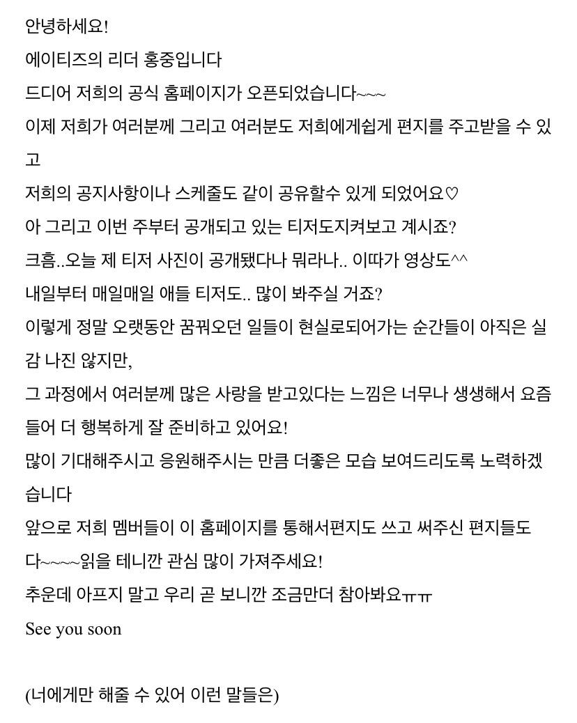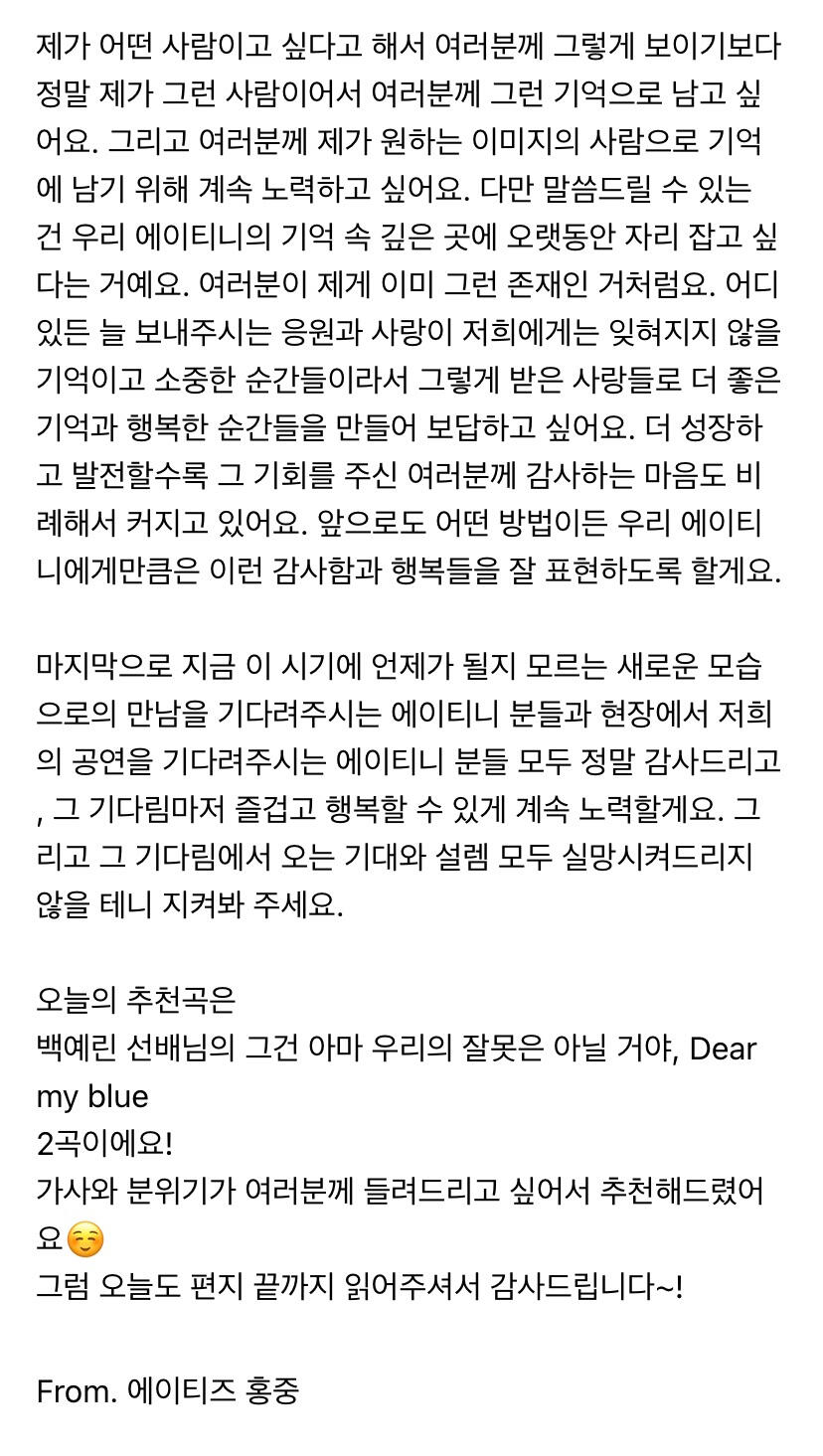 To. 늘 고마운 우리 ATEEZ 팬분들께