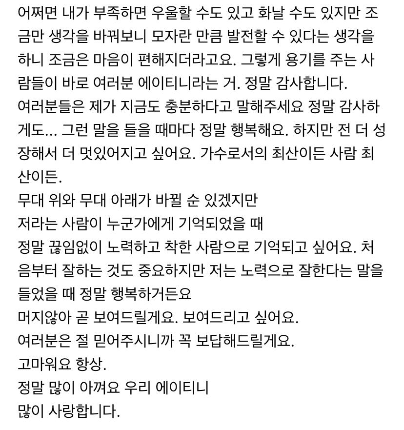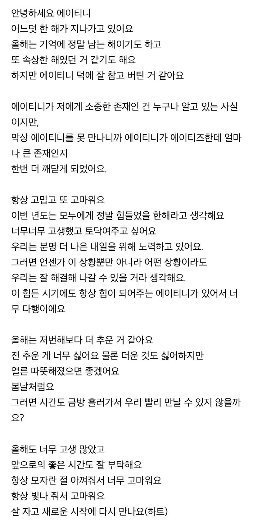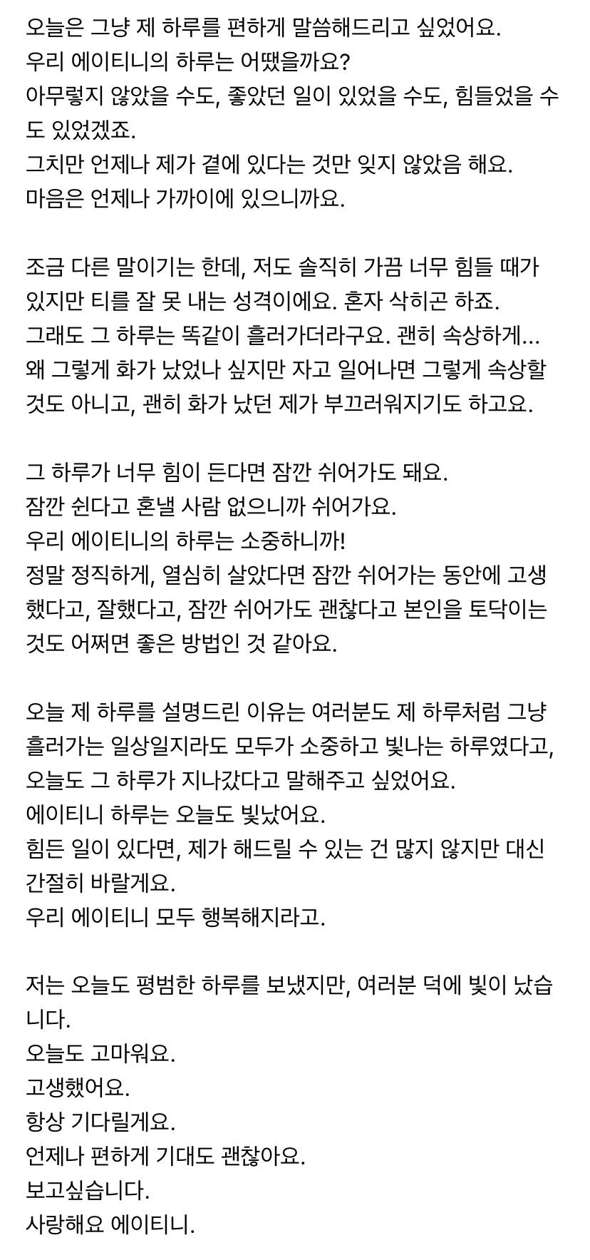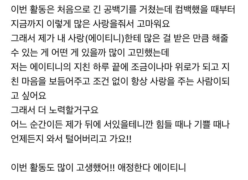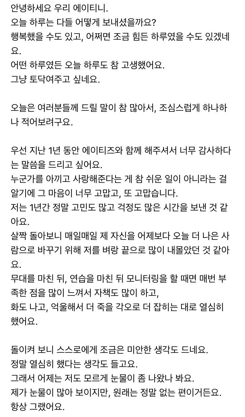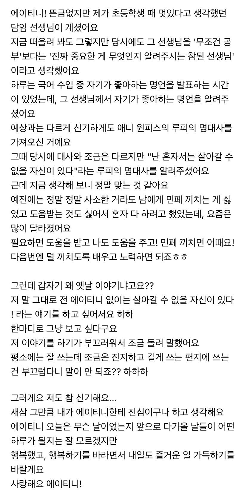 에이티니에게 하고 싶은 말