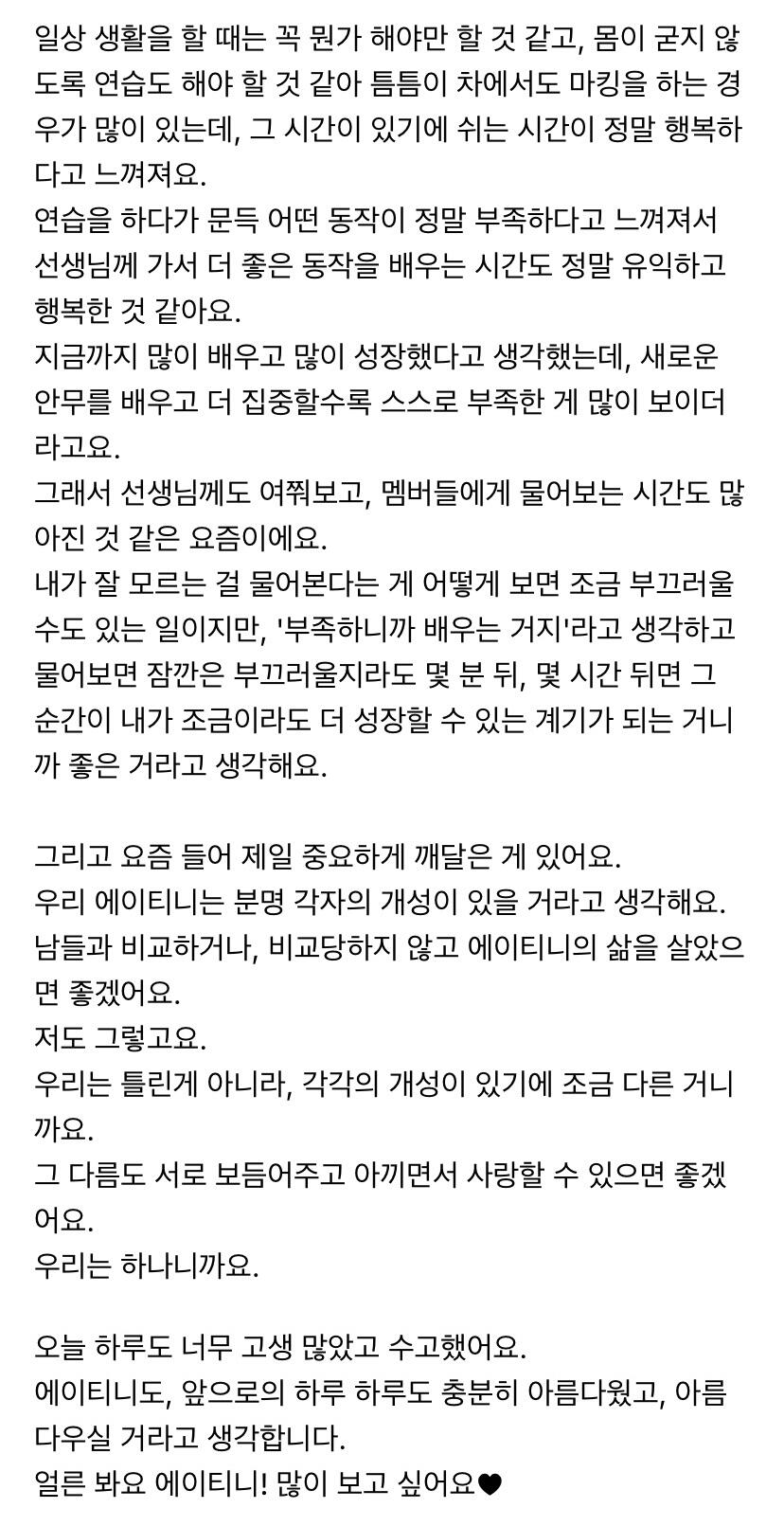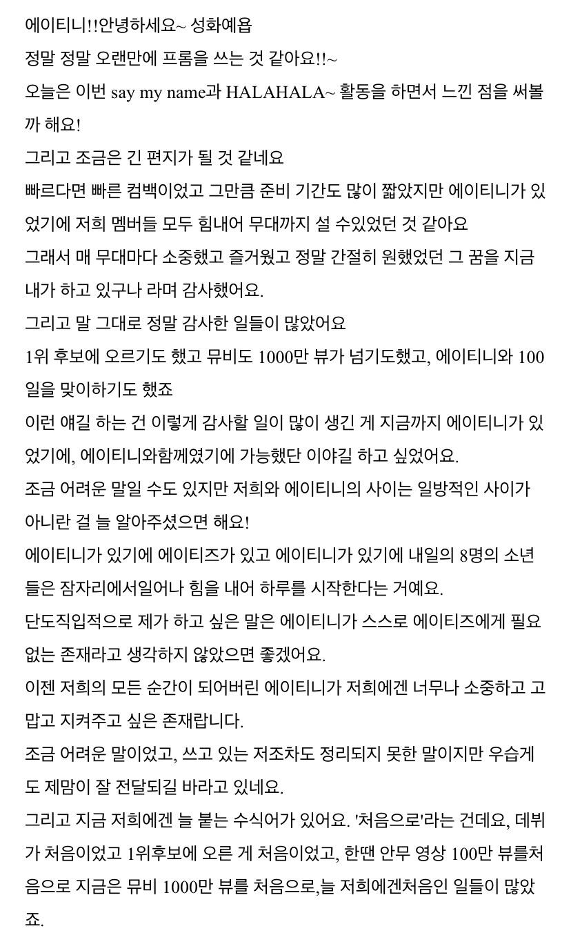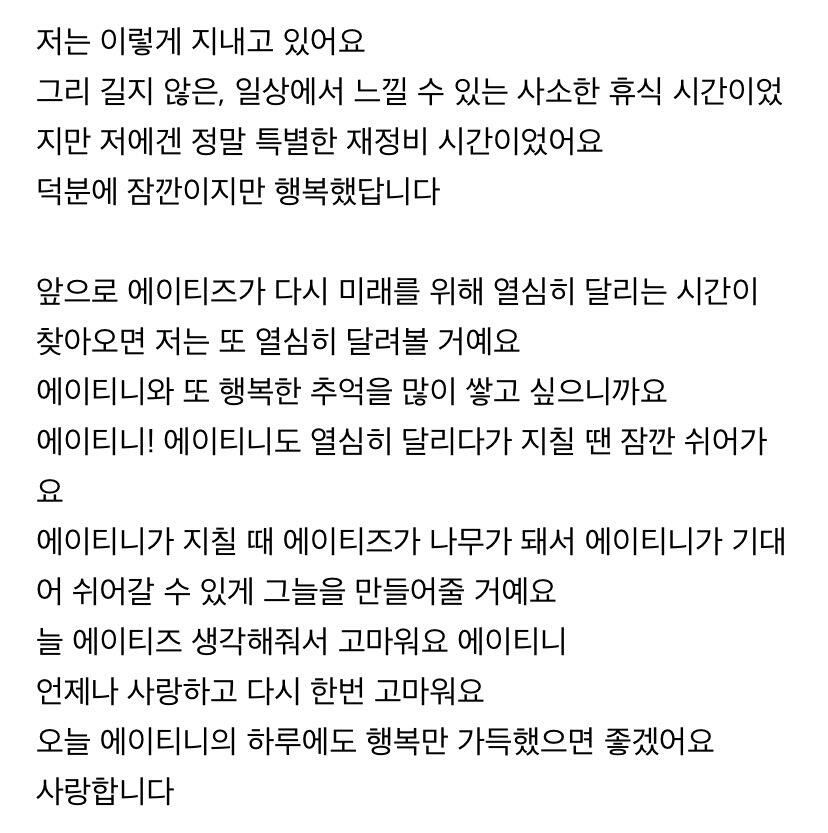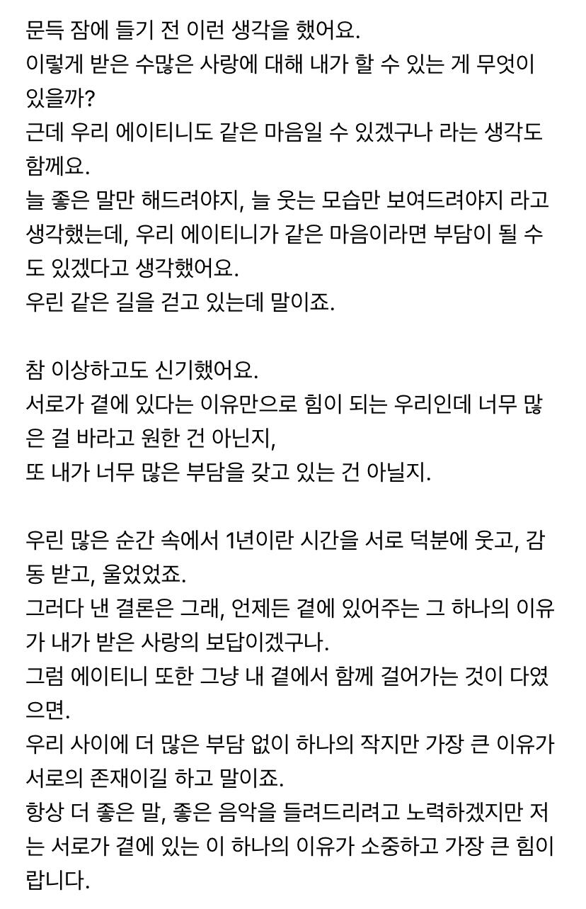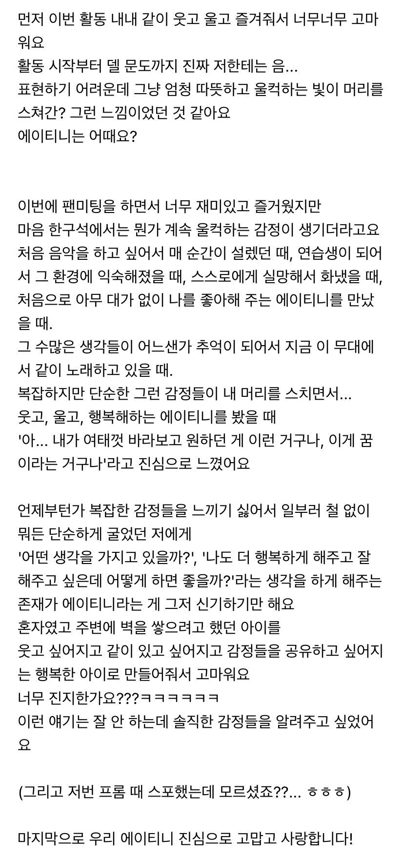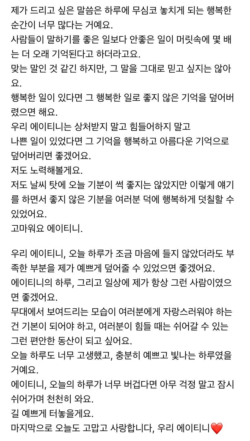 에이티니에게 하고 싶은 말