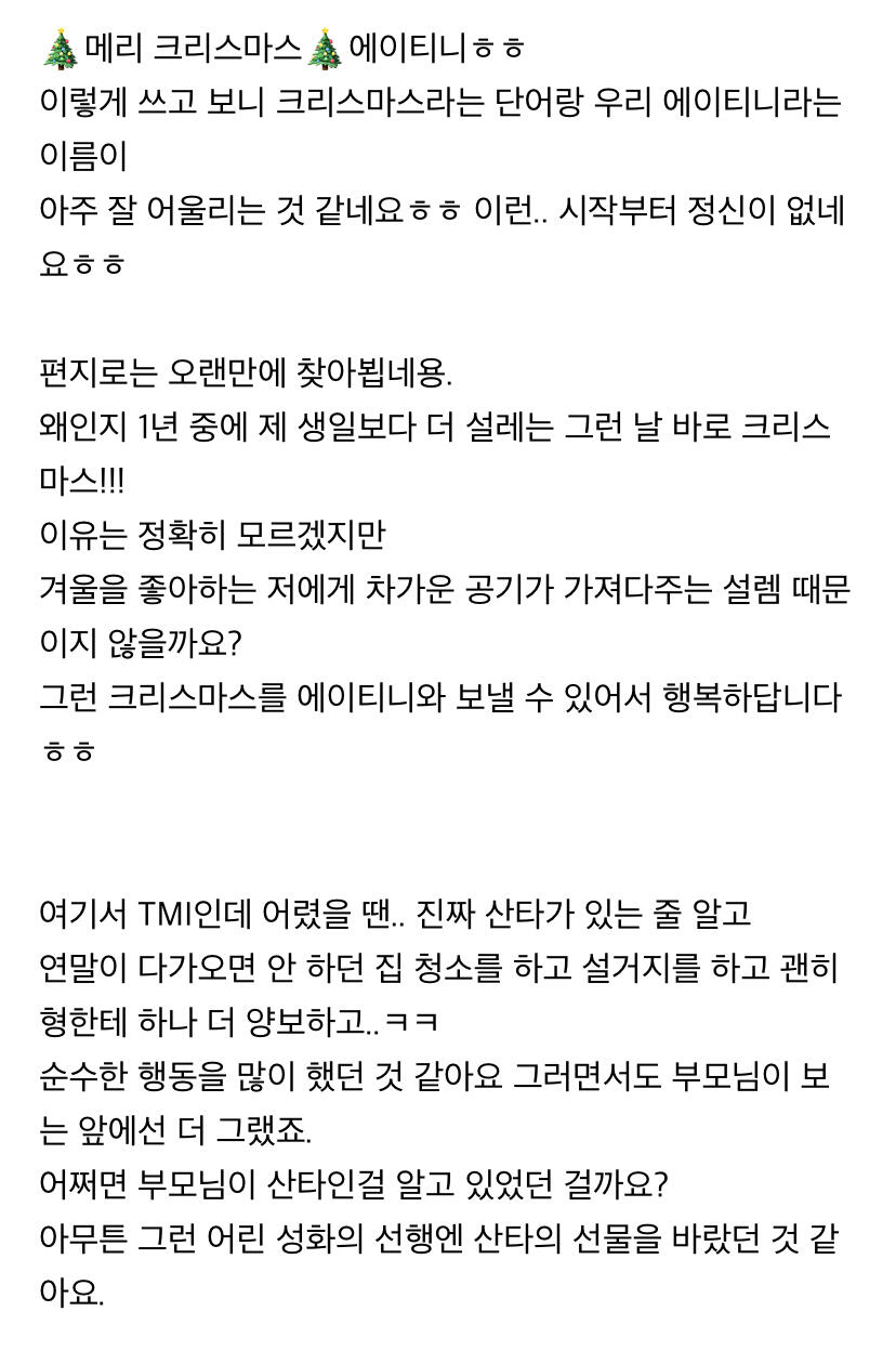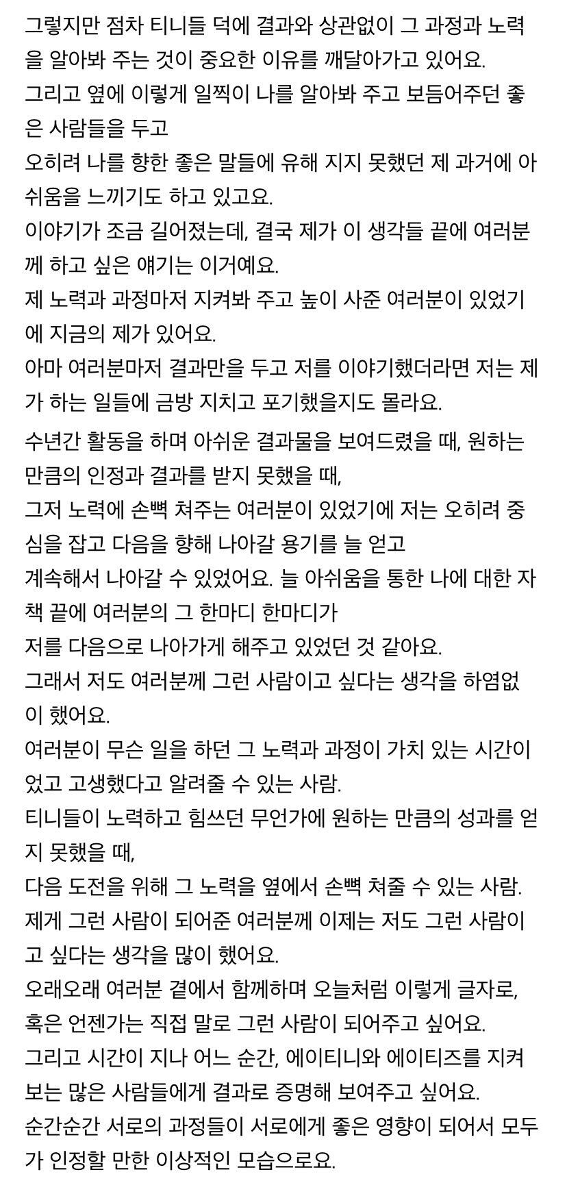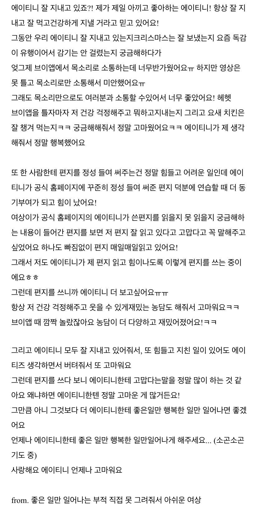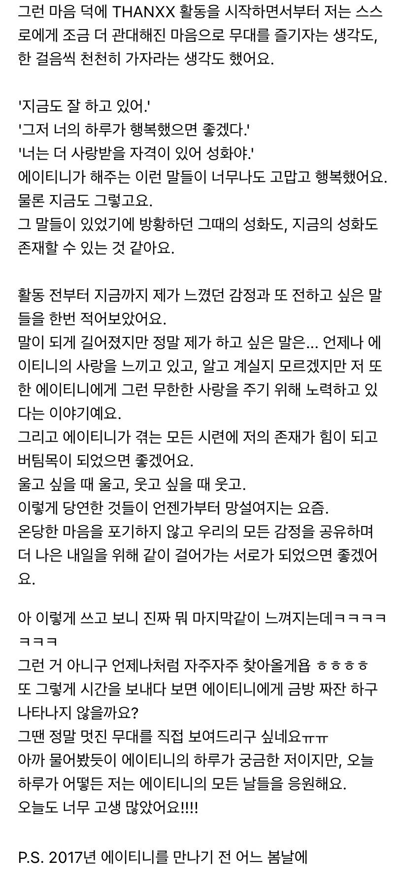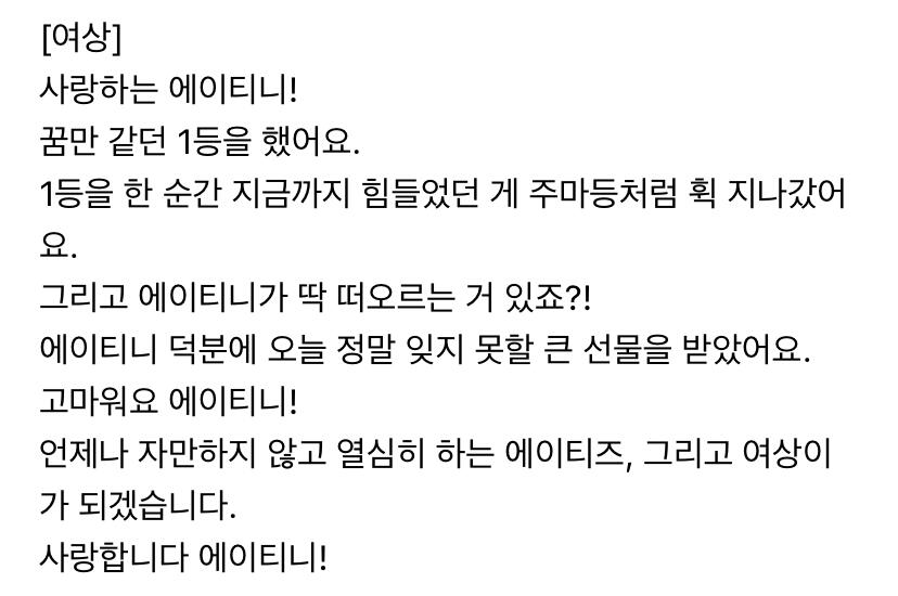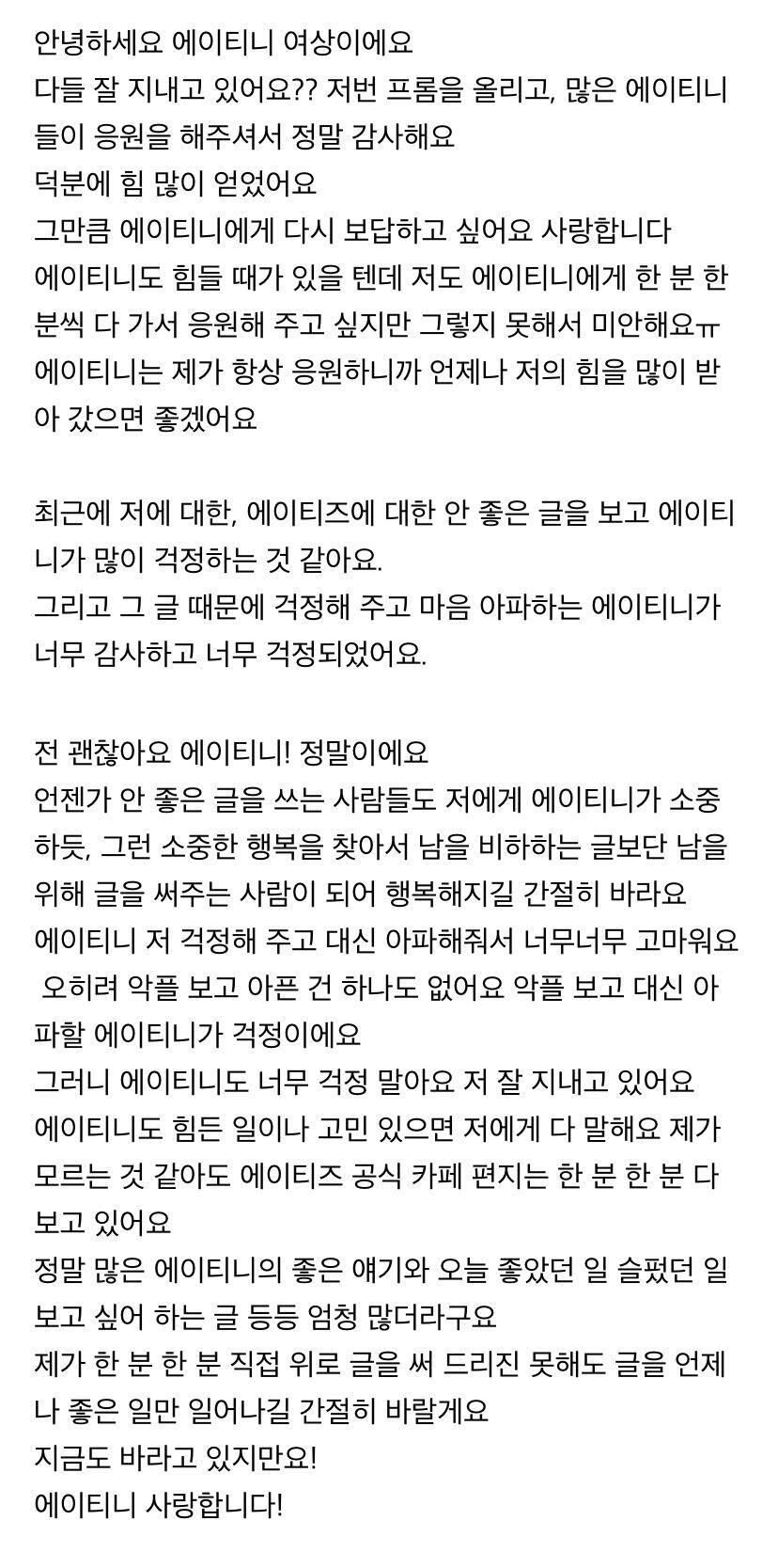 에이티니에게 하고 싶은 말