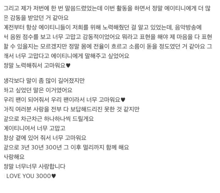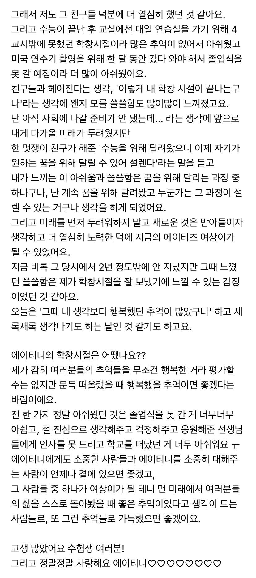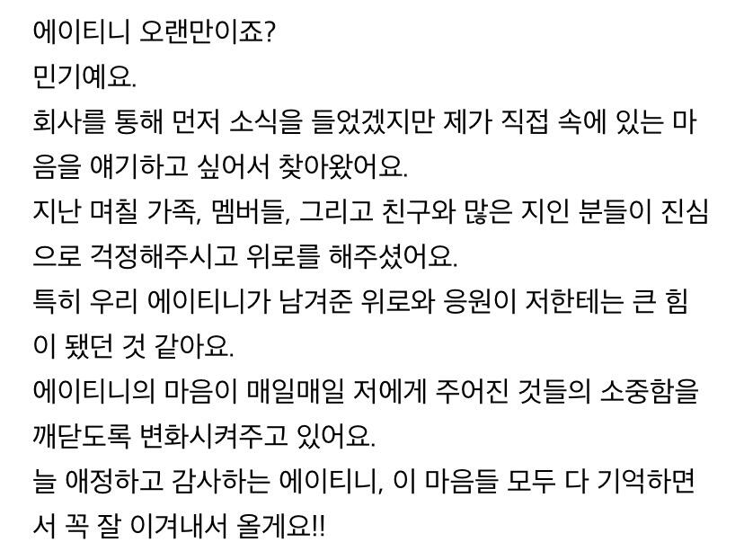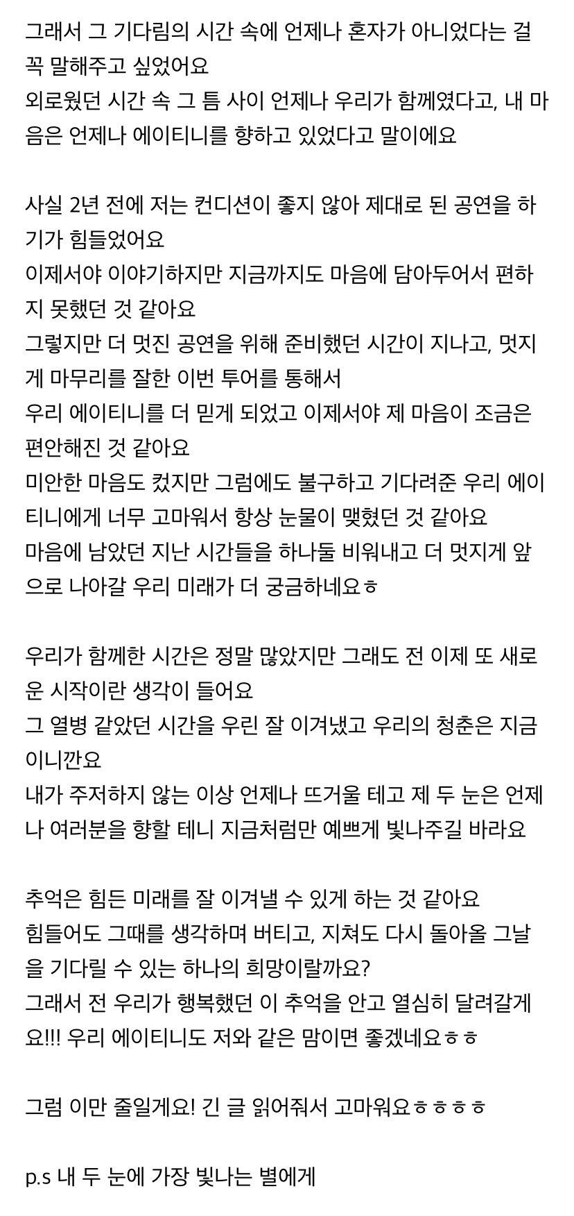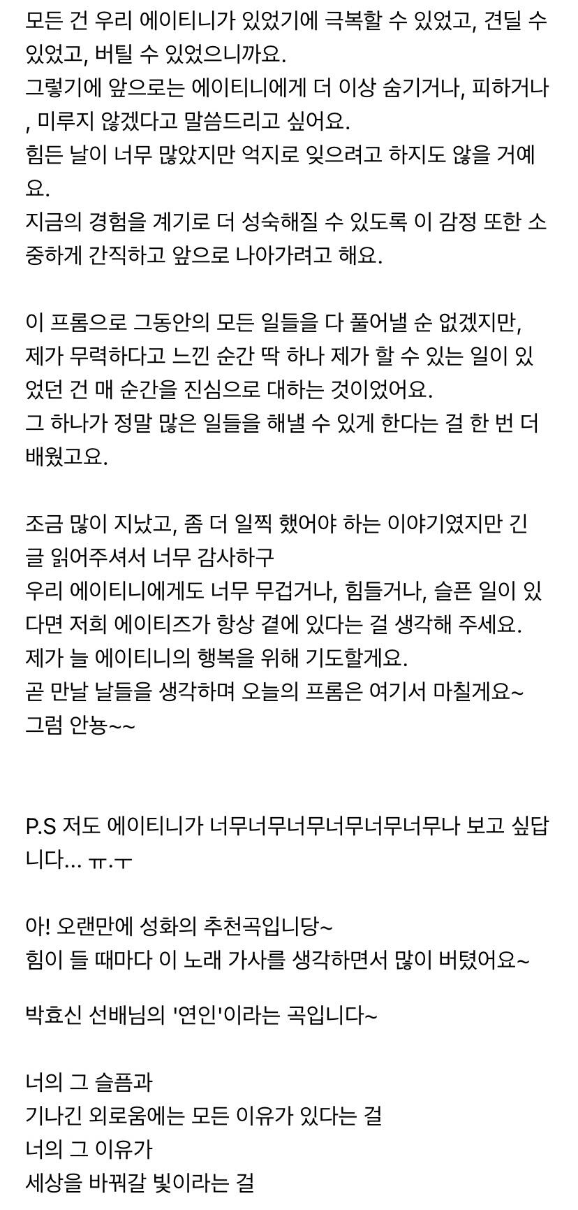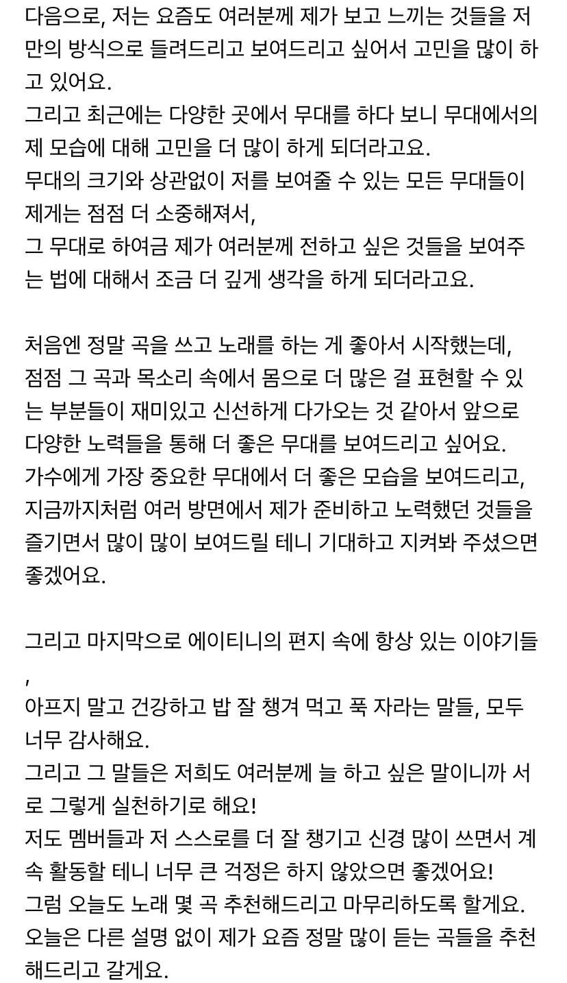 에이티니에게 하고 싶은 말