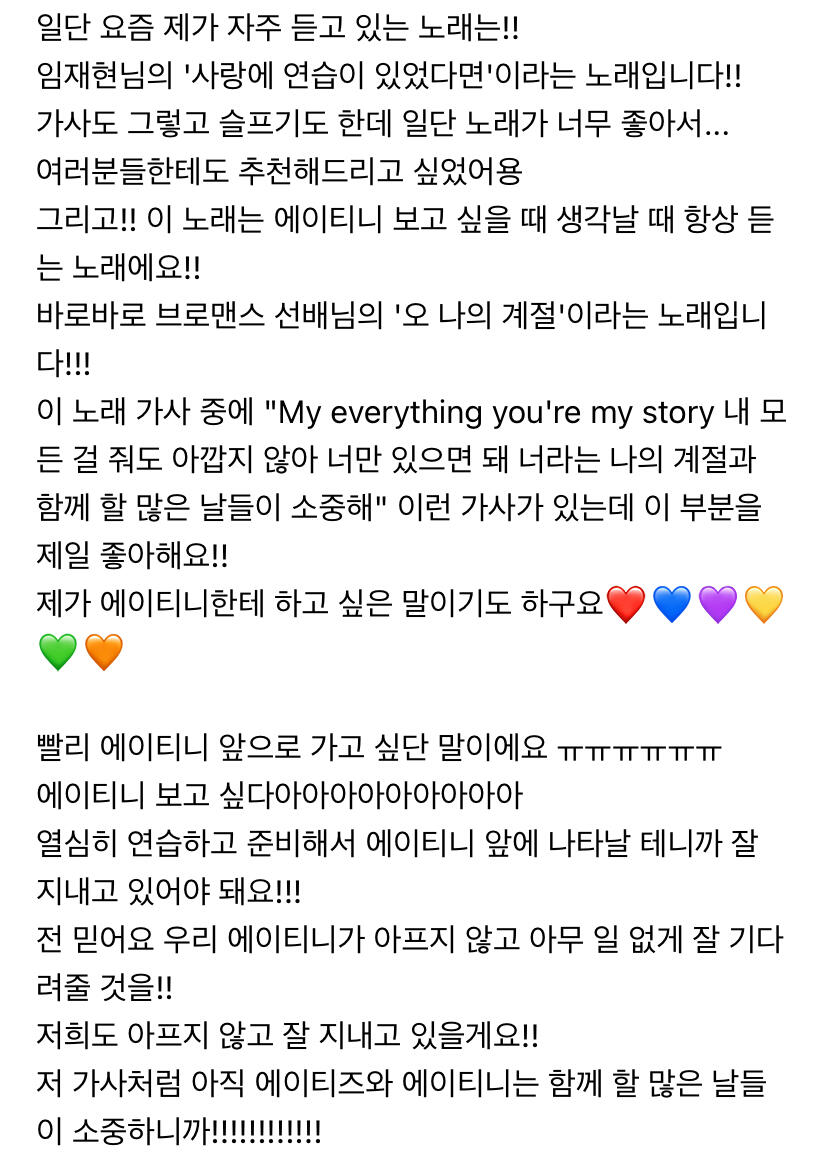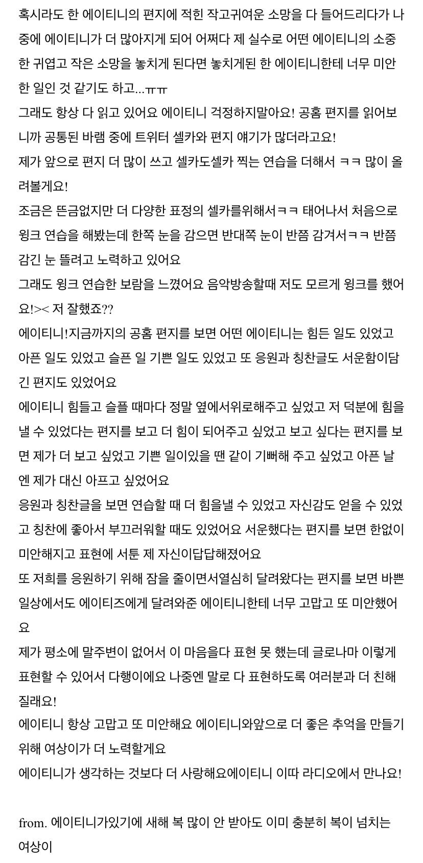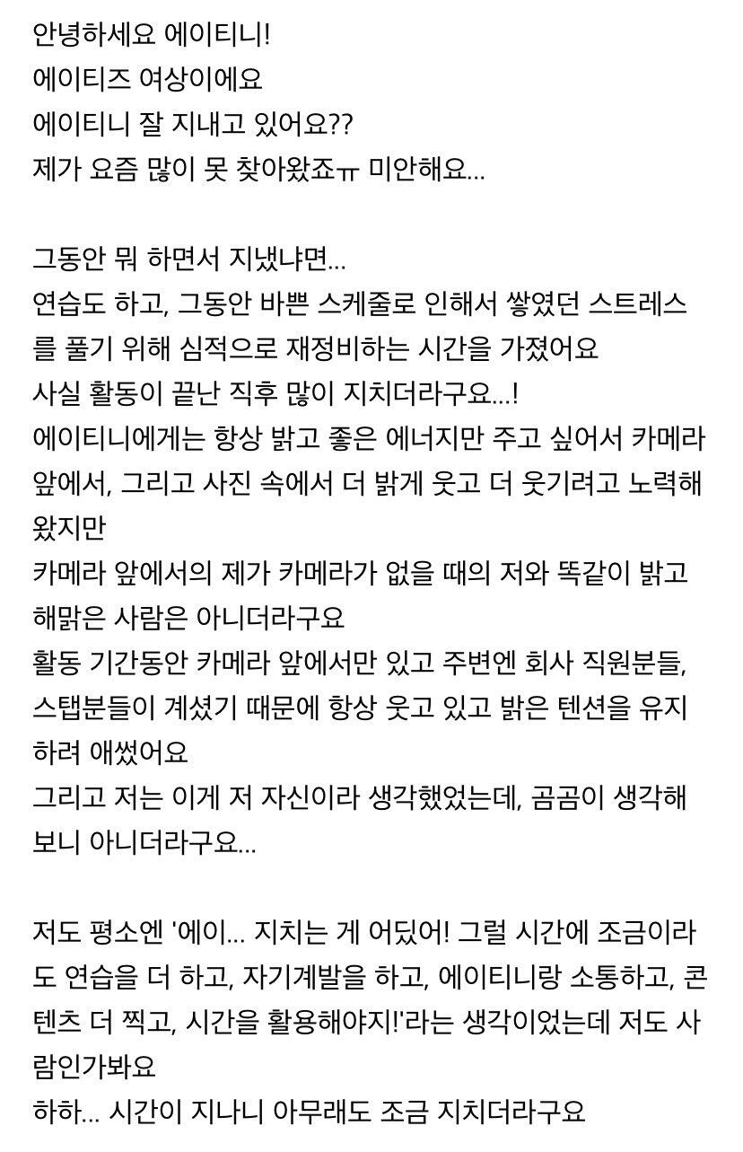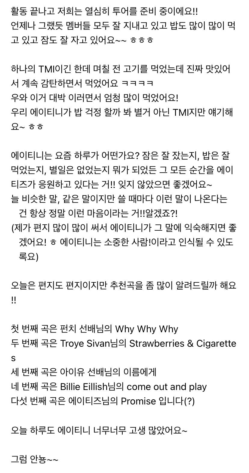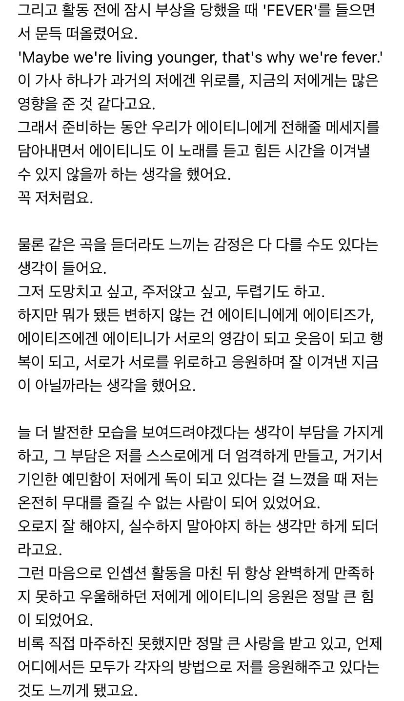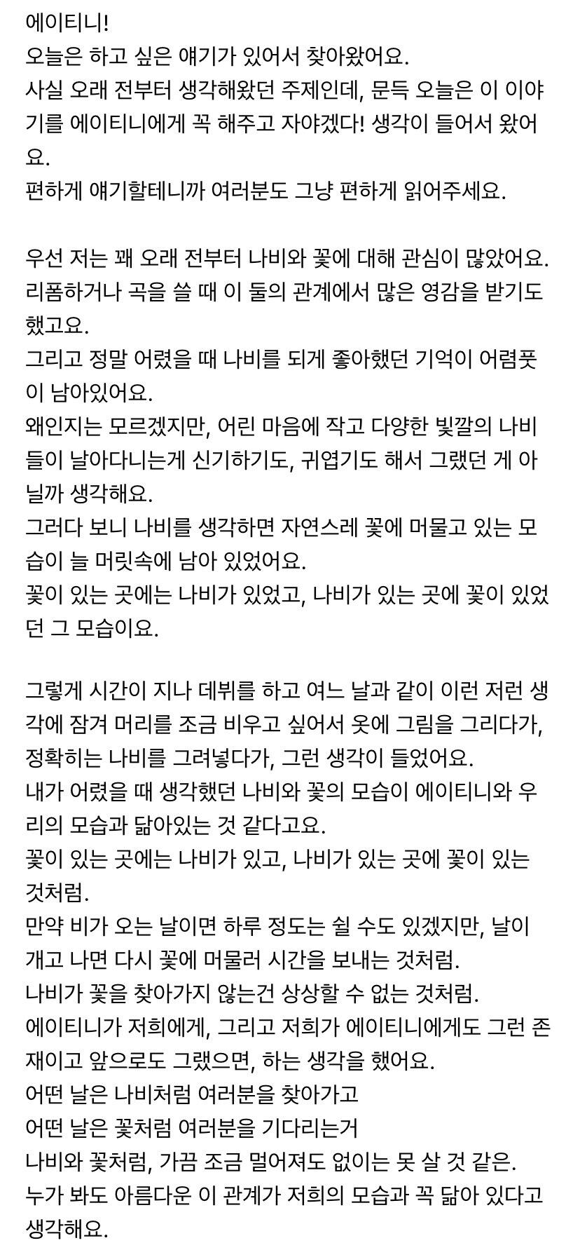 에이티니에게 하고 싶은 말