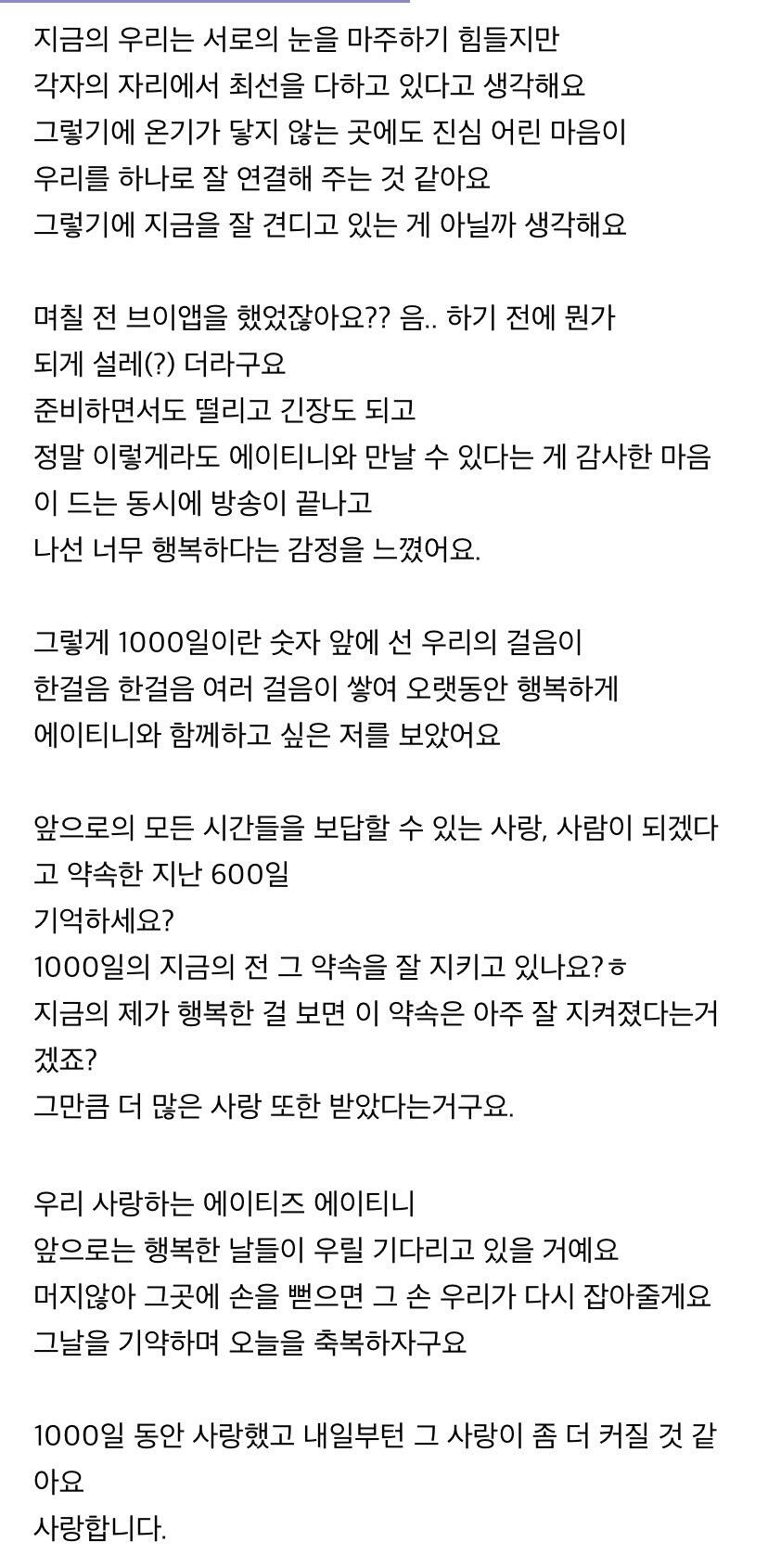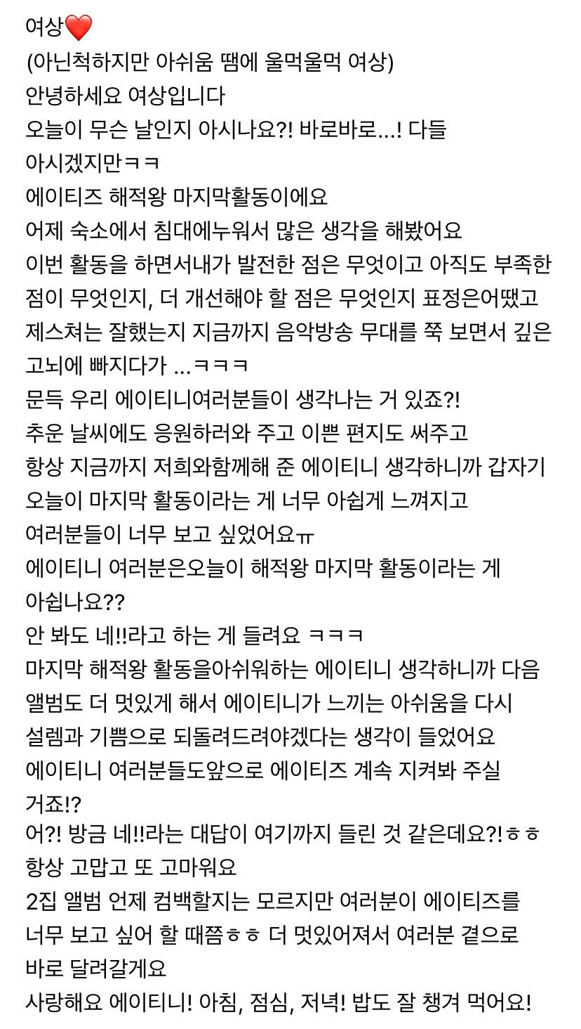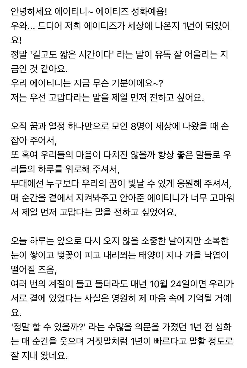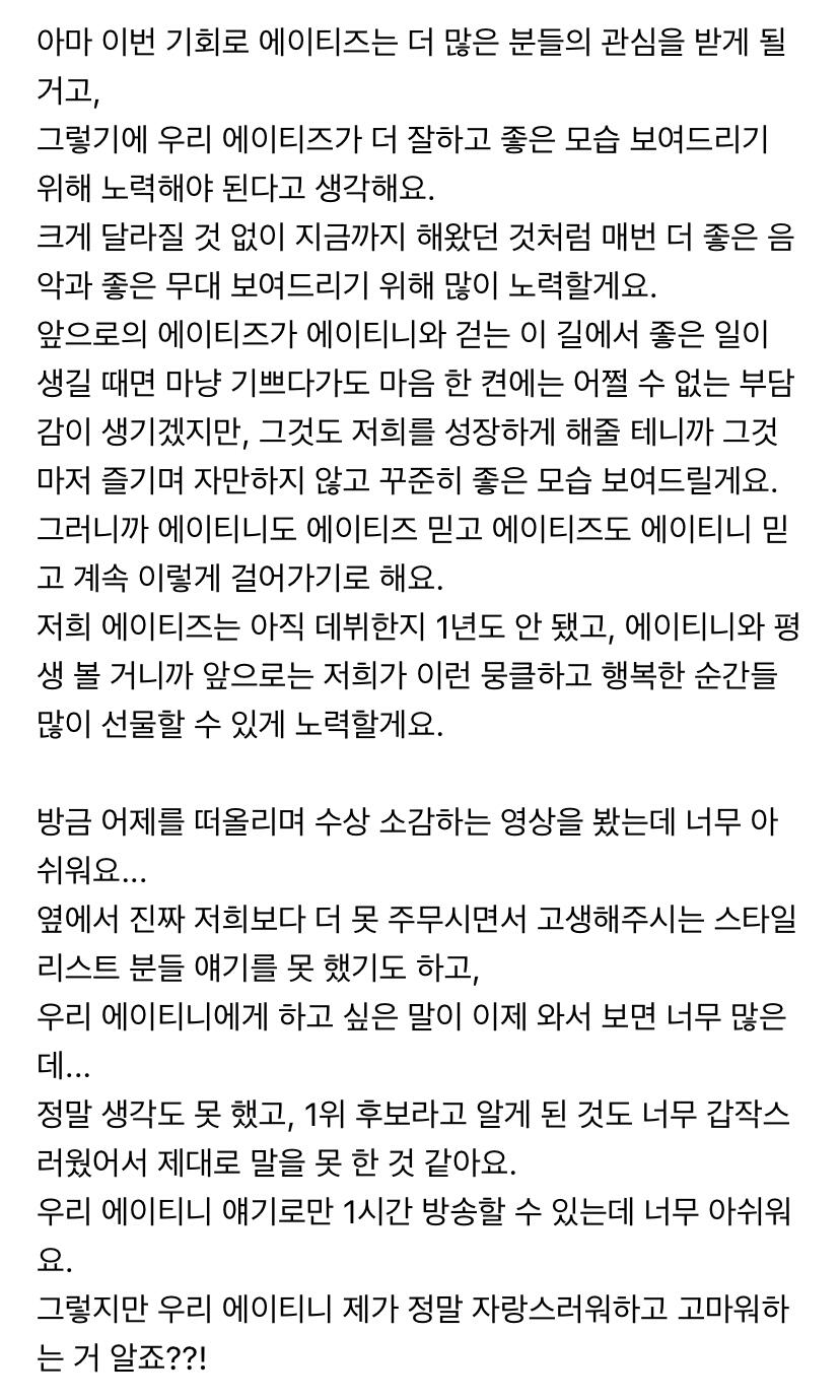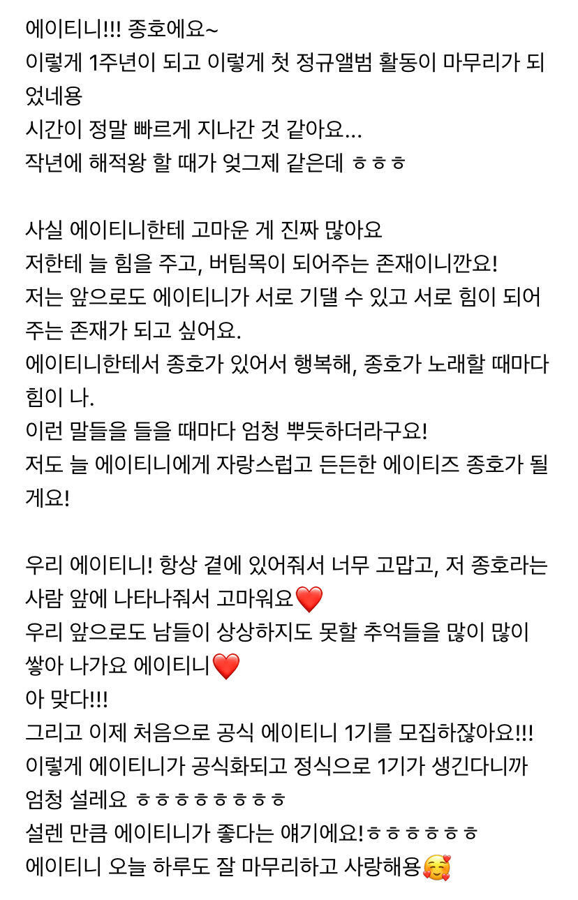 에이티니에게 하고 싶은 말