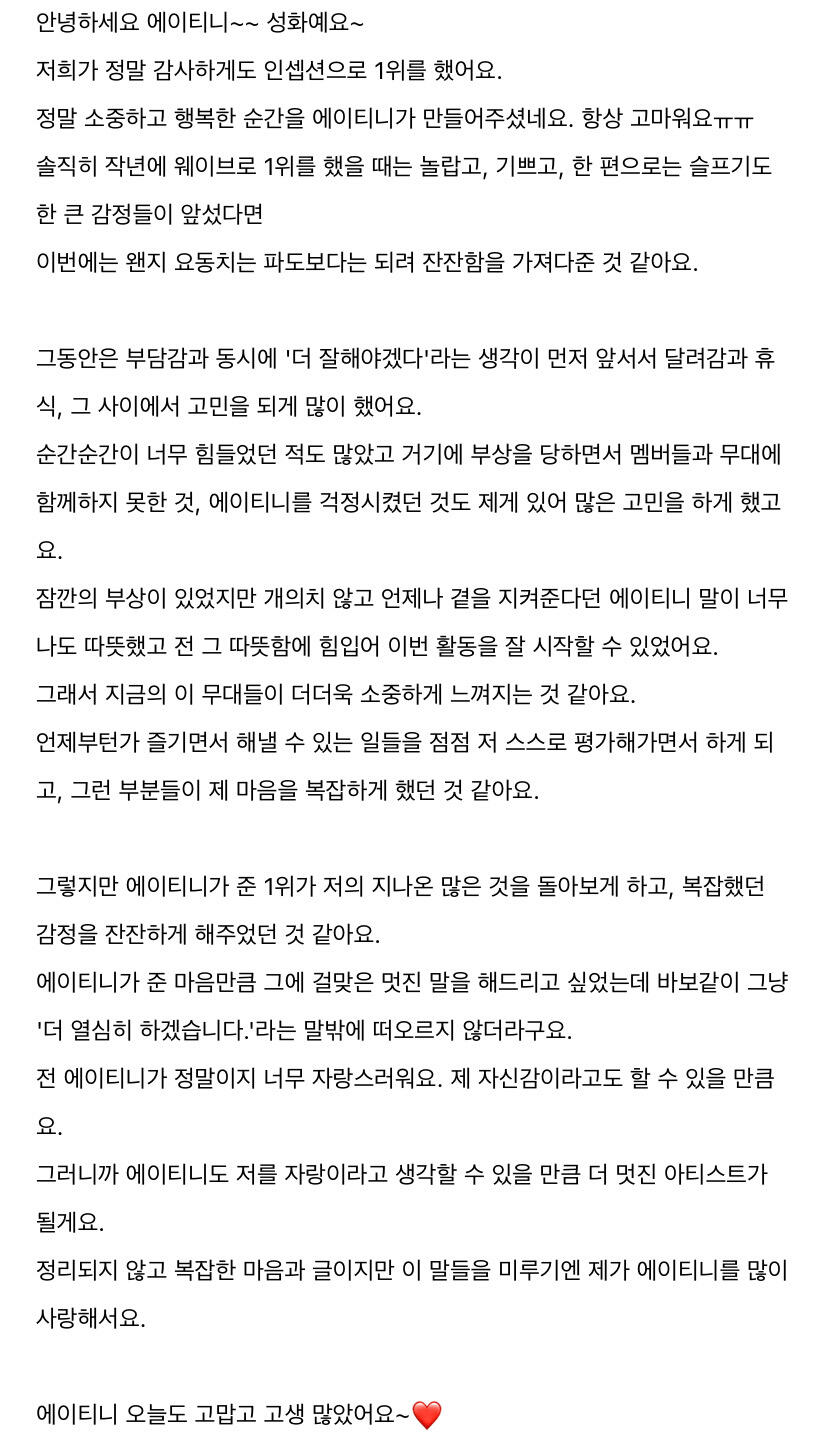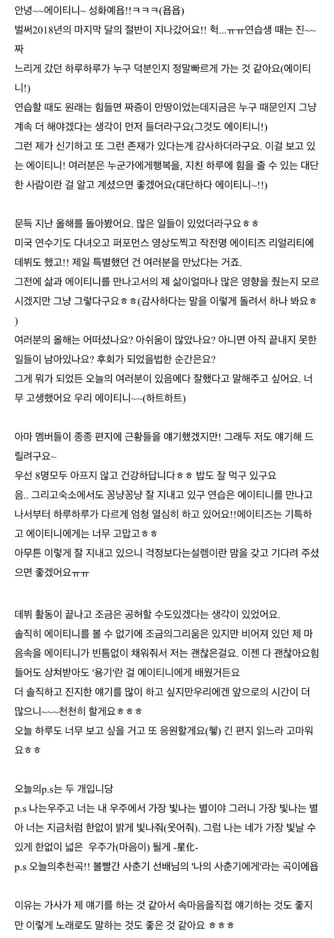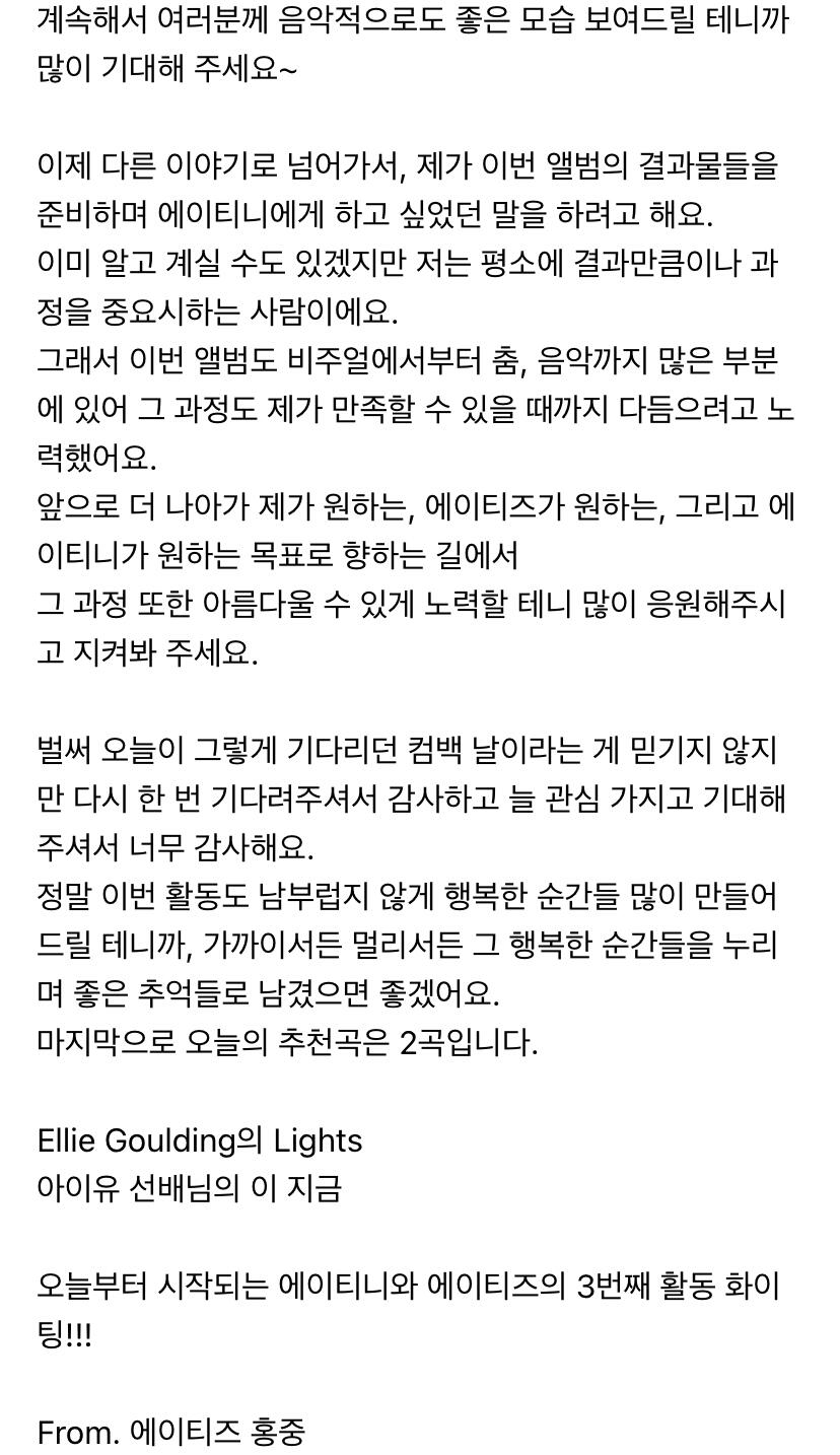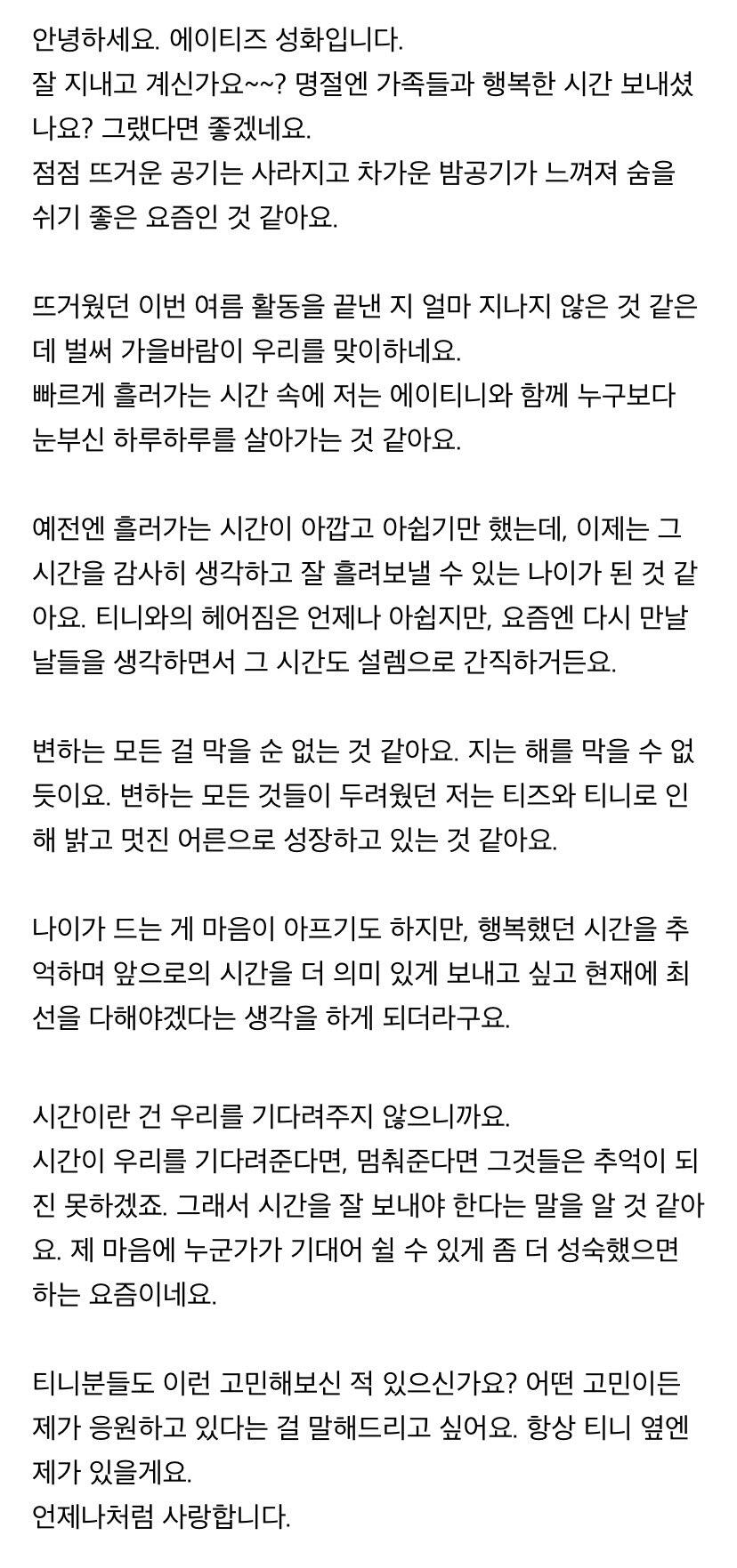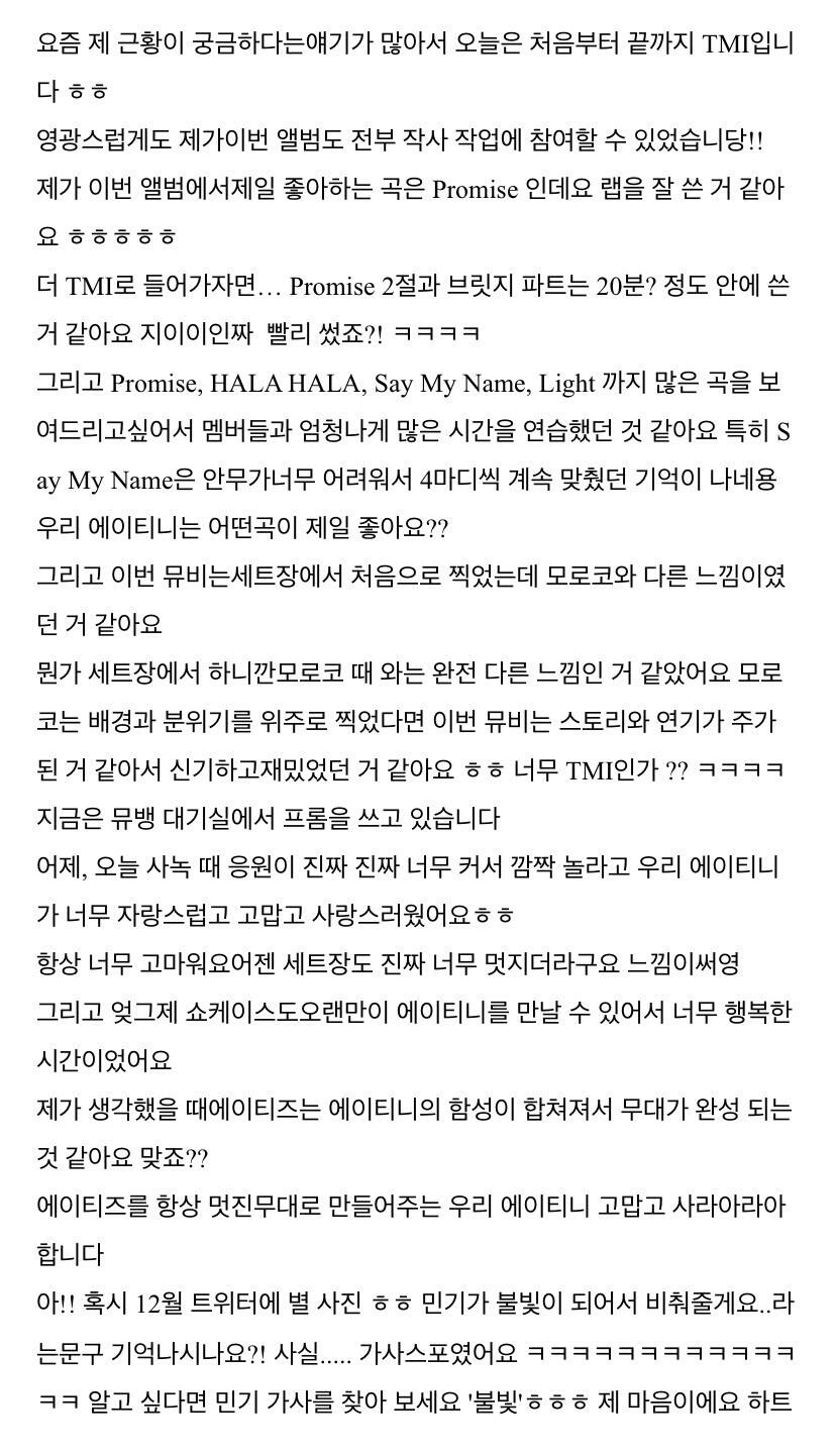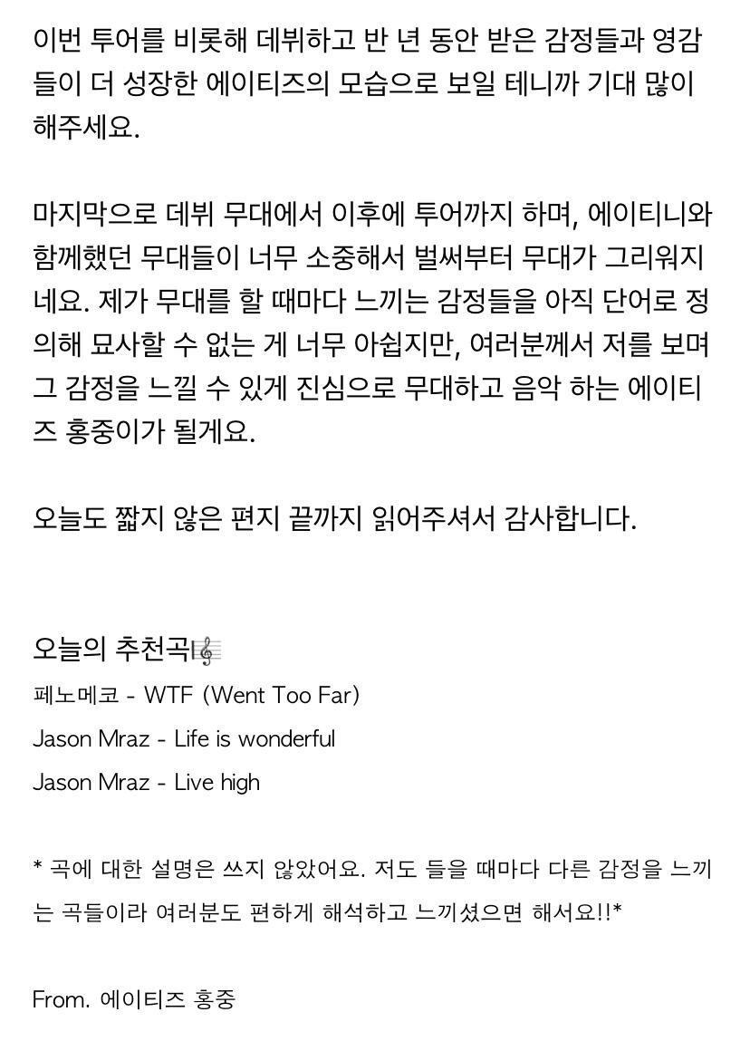 에이티니에게 하고 싶은 말