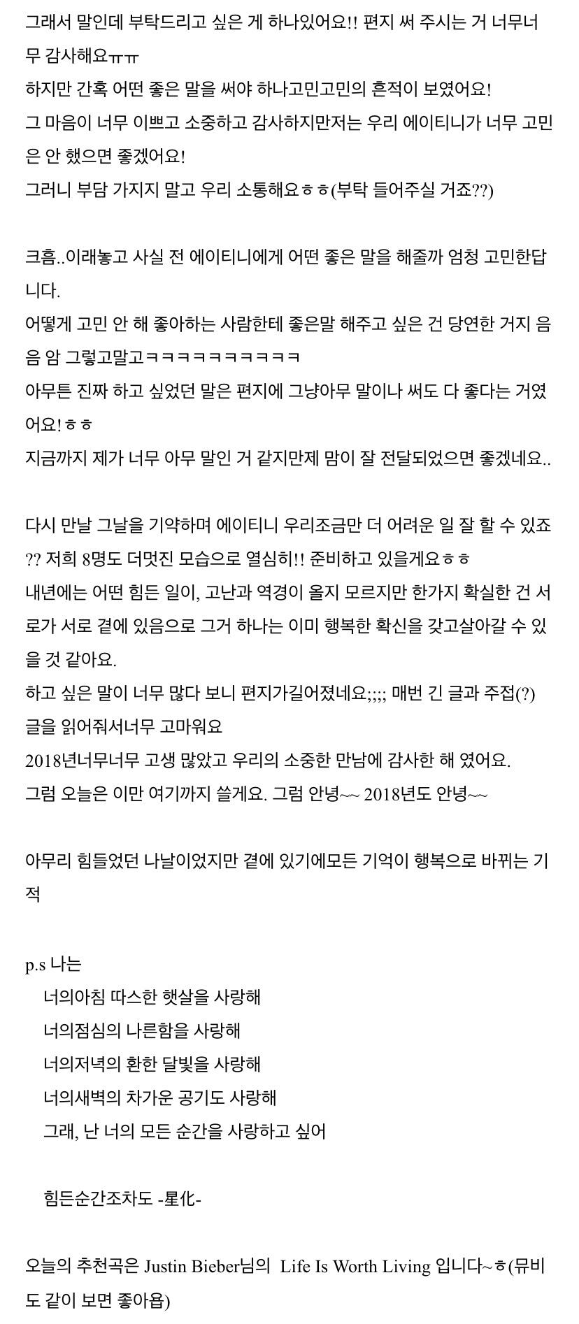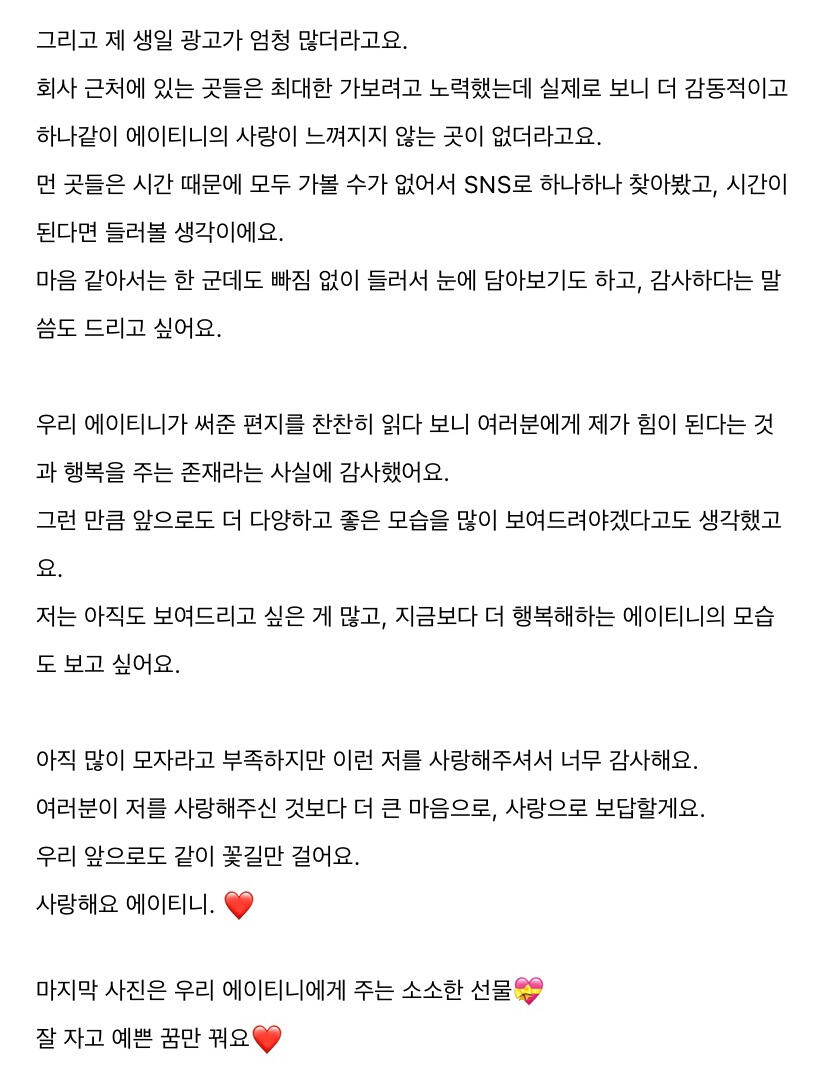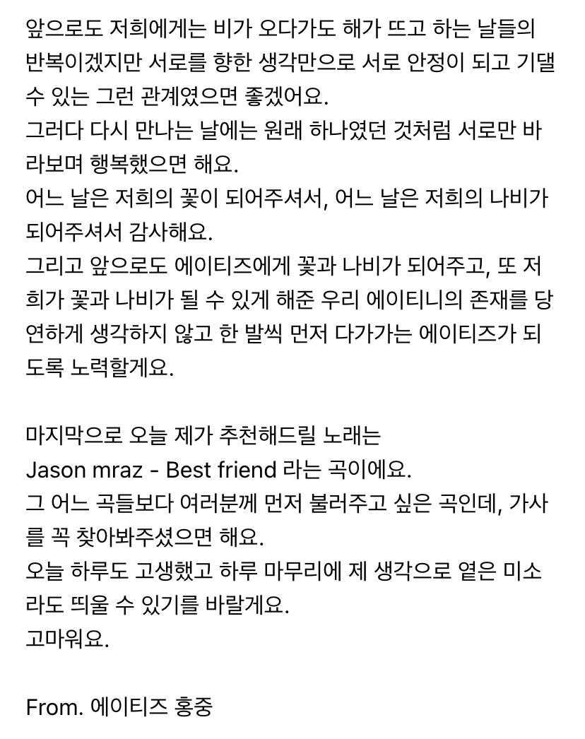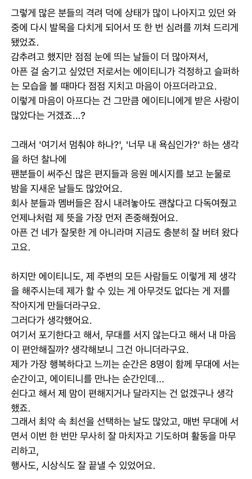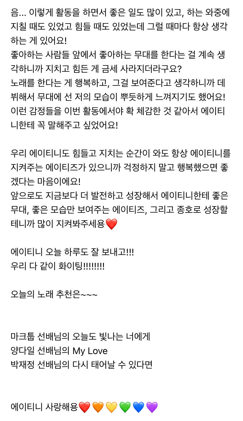 에이티니에게 하고 싶은 말