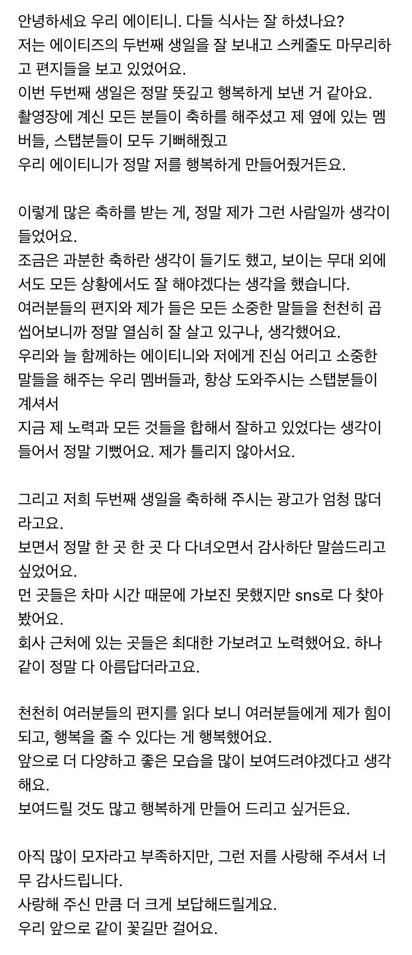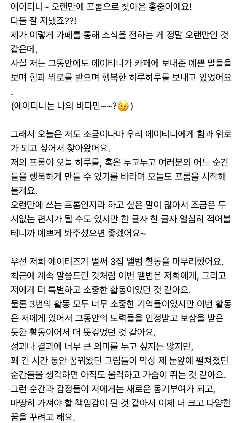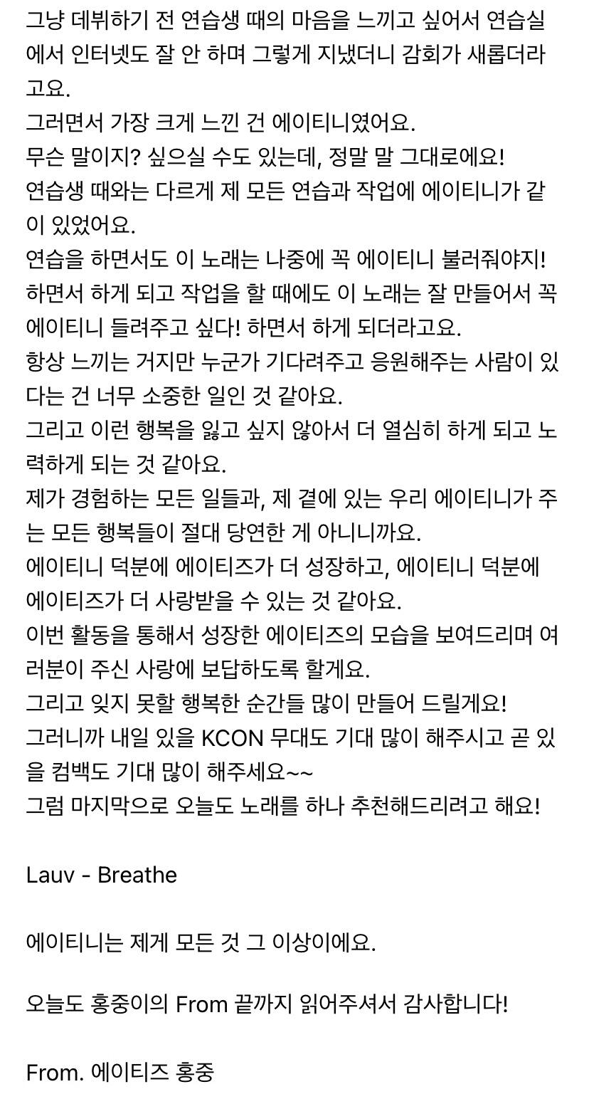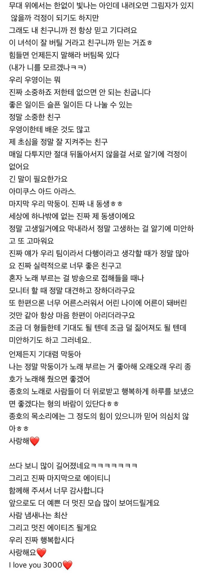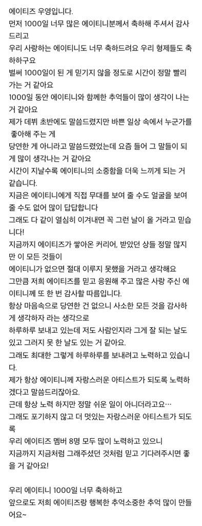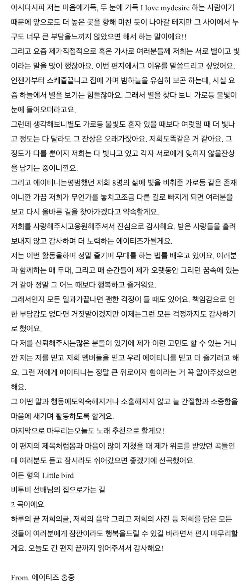 에이티니에게 하고 싶은 말