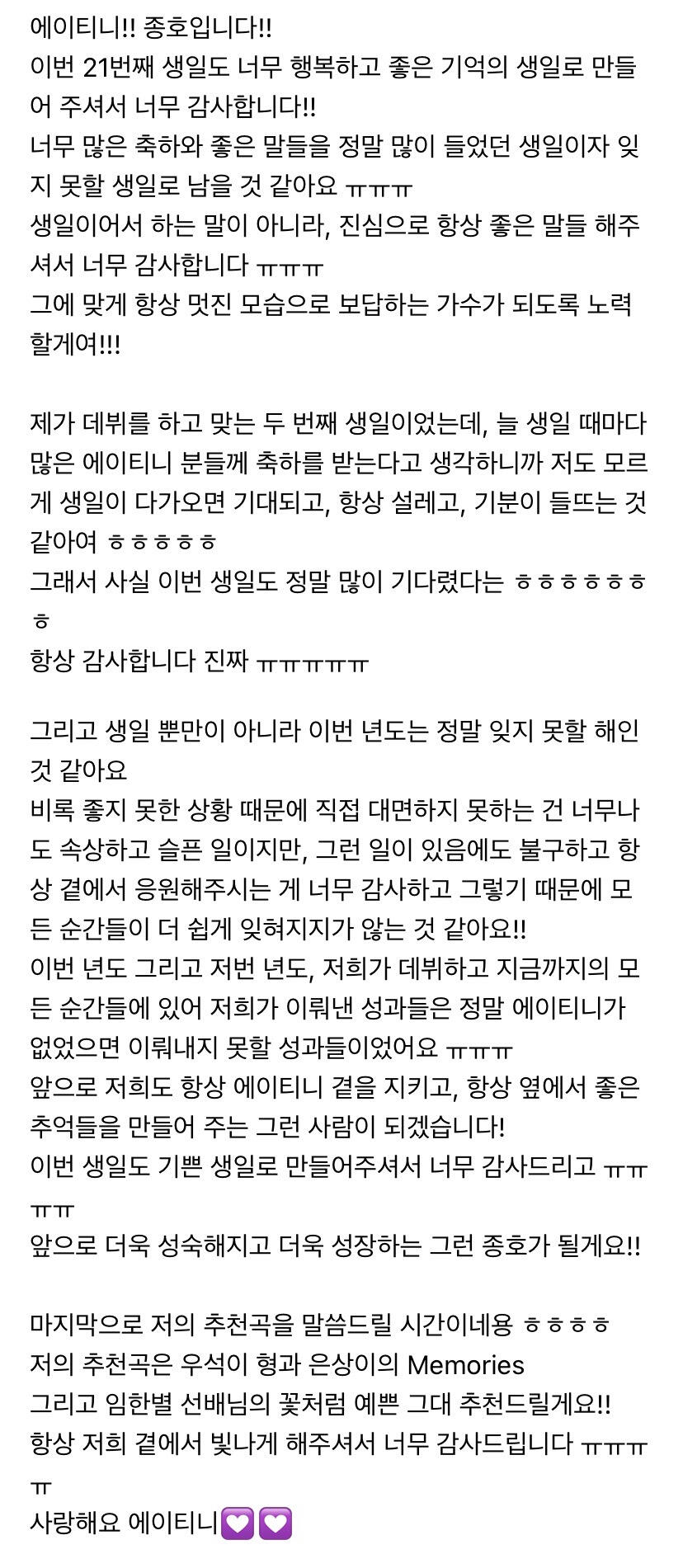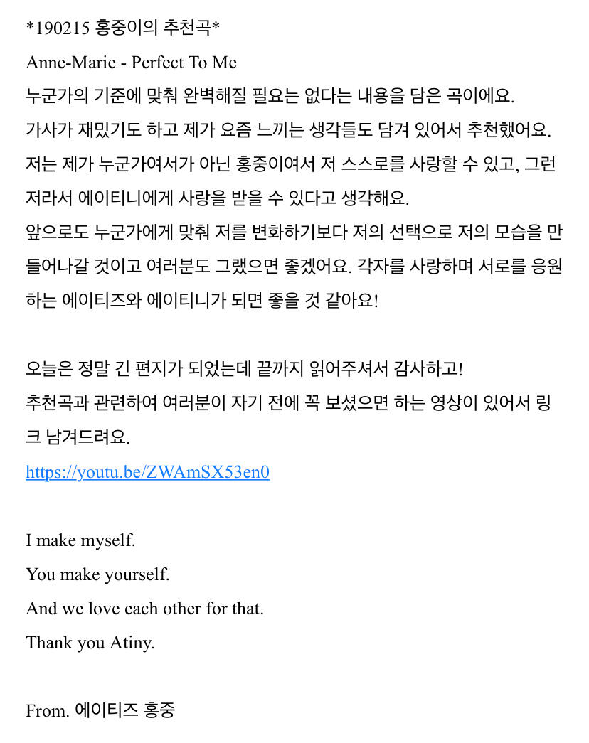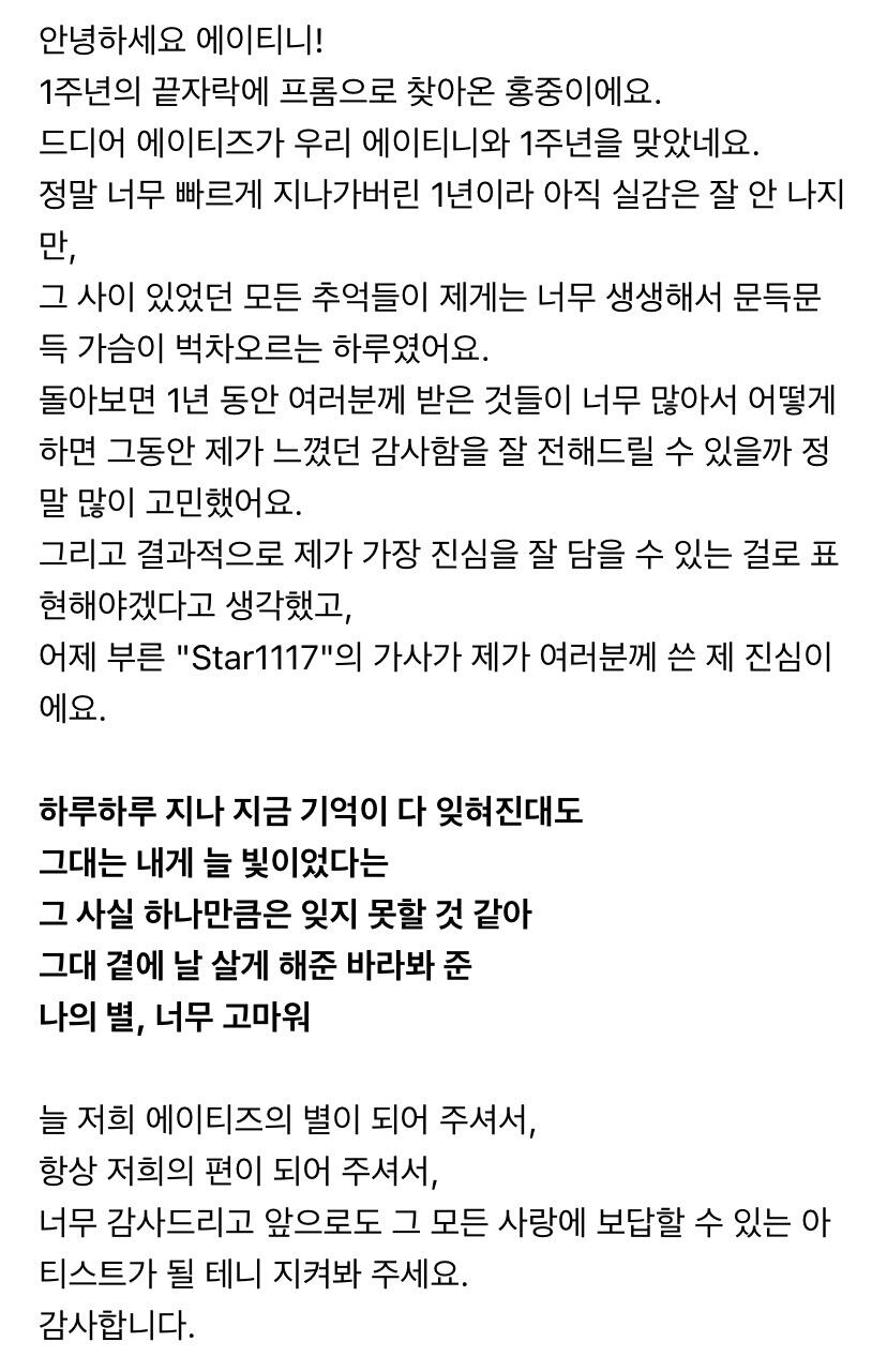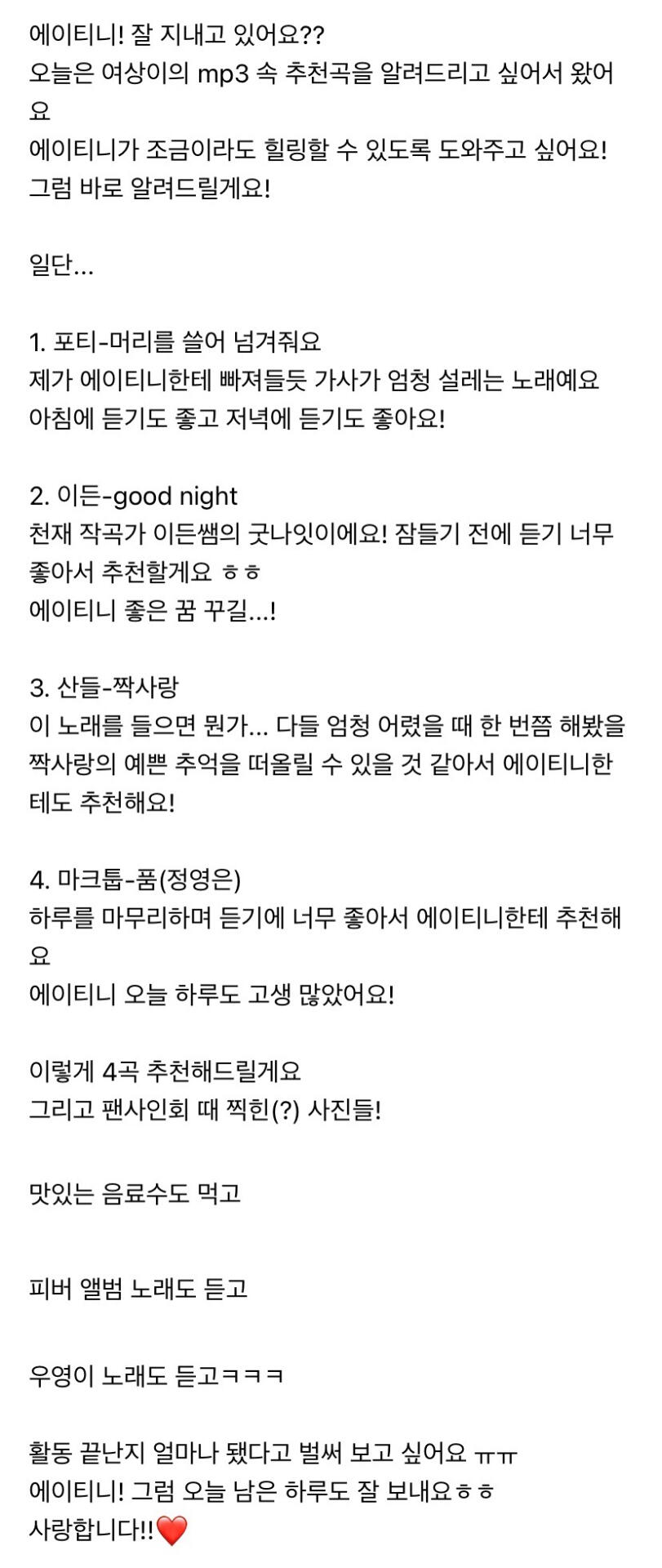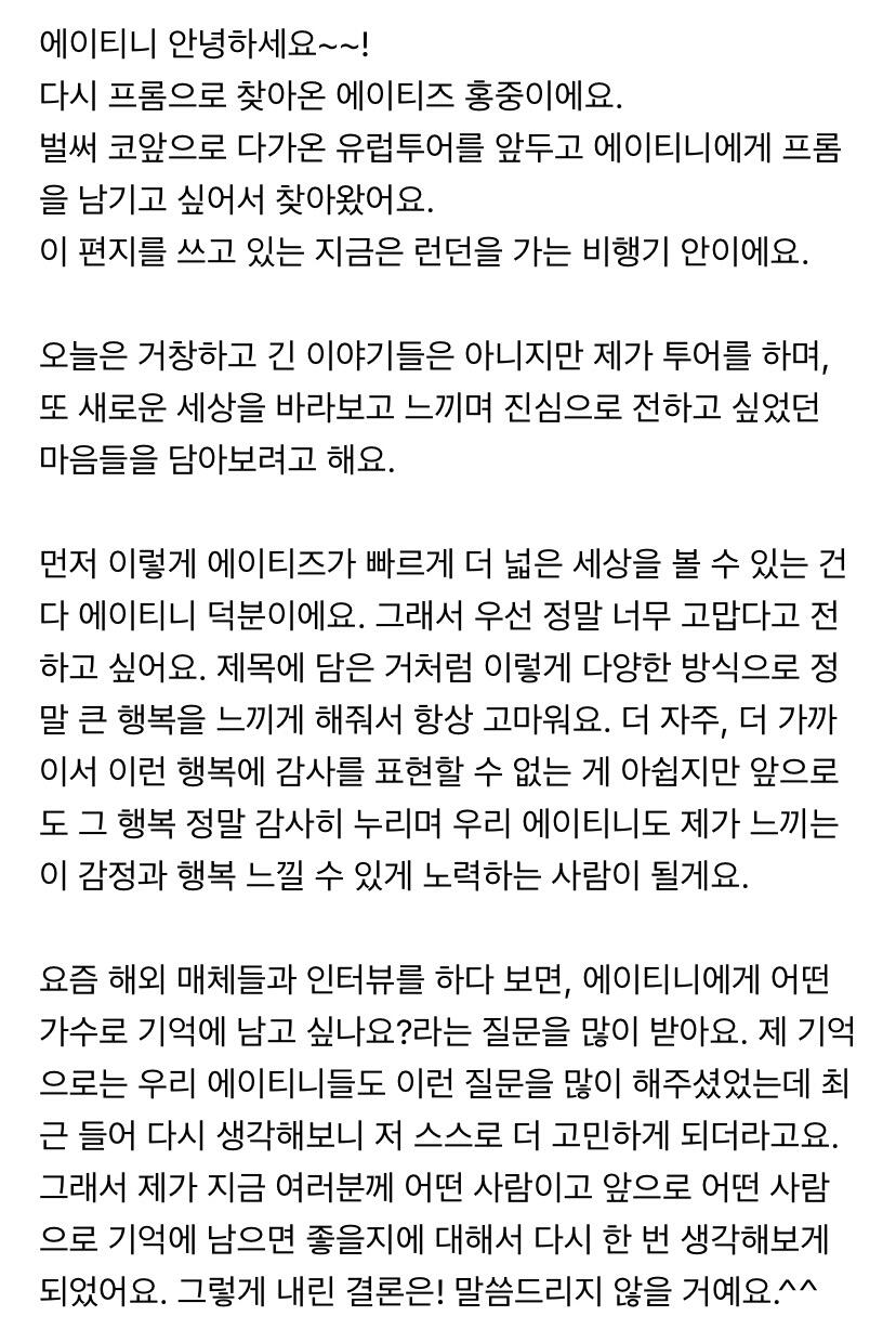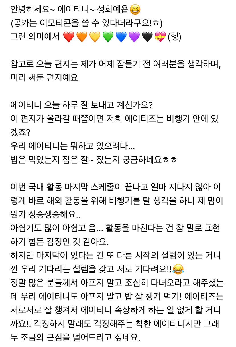 에이티니에게 하고 싶은 말