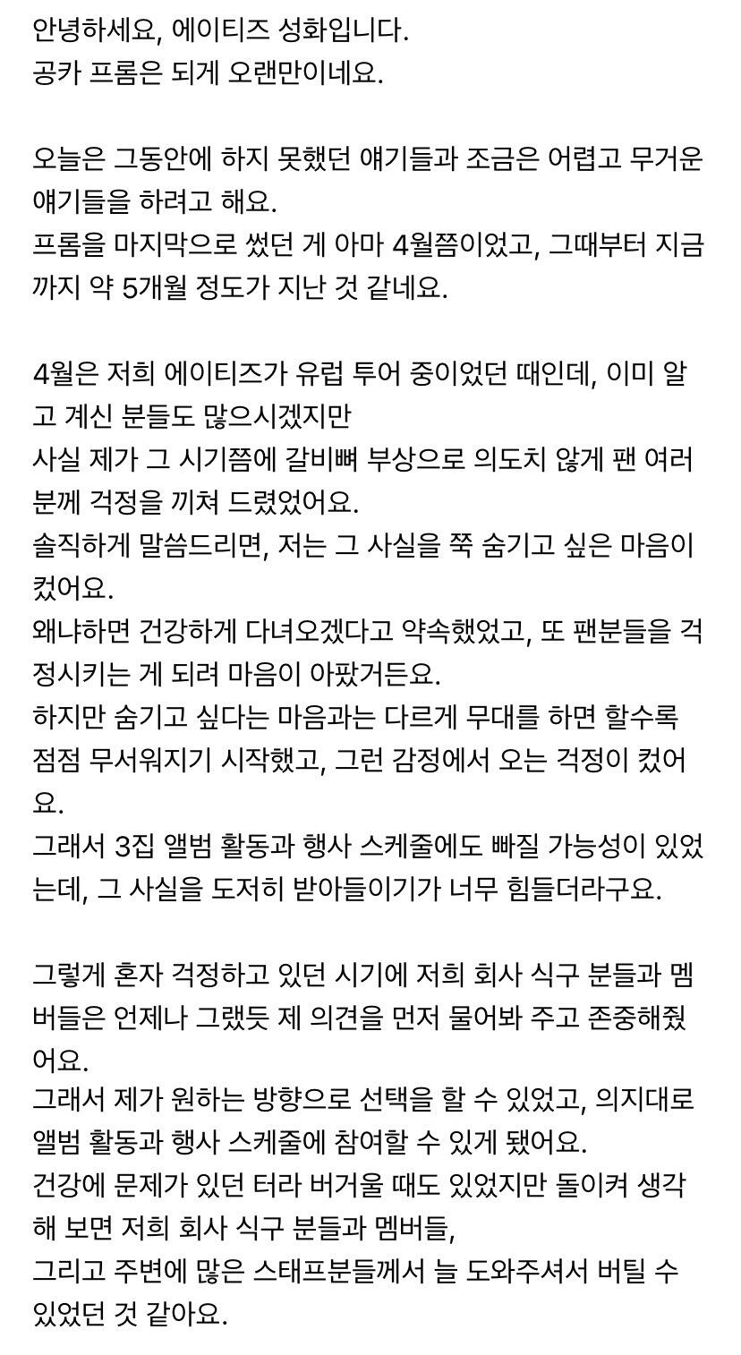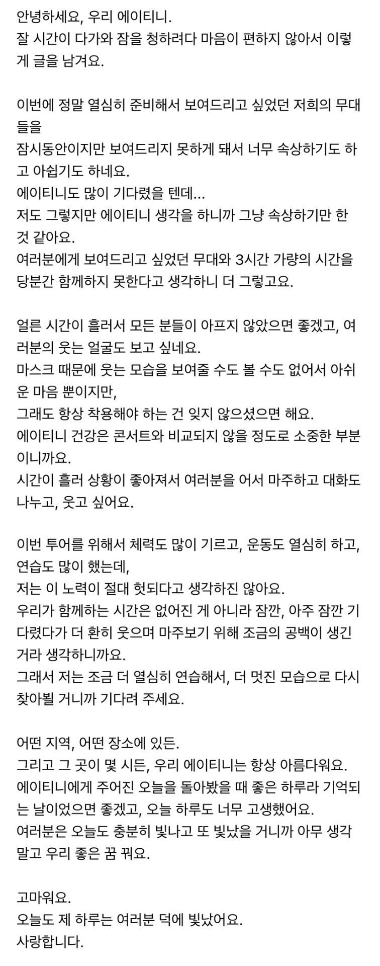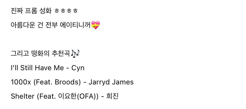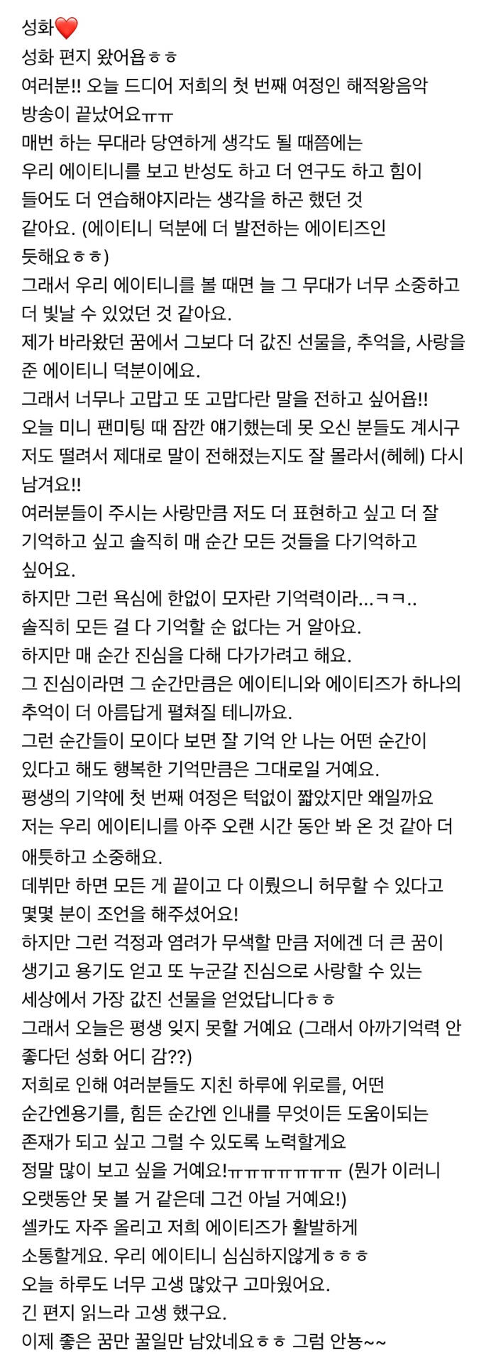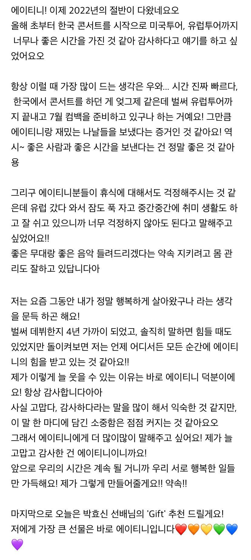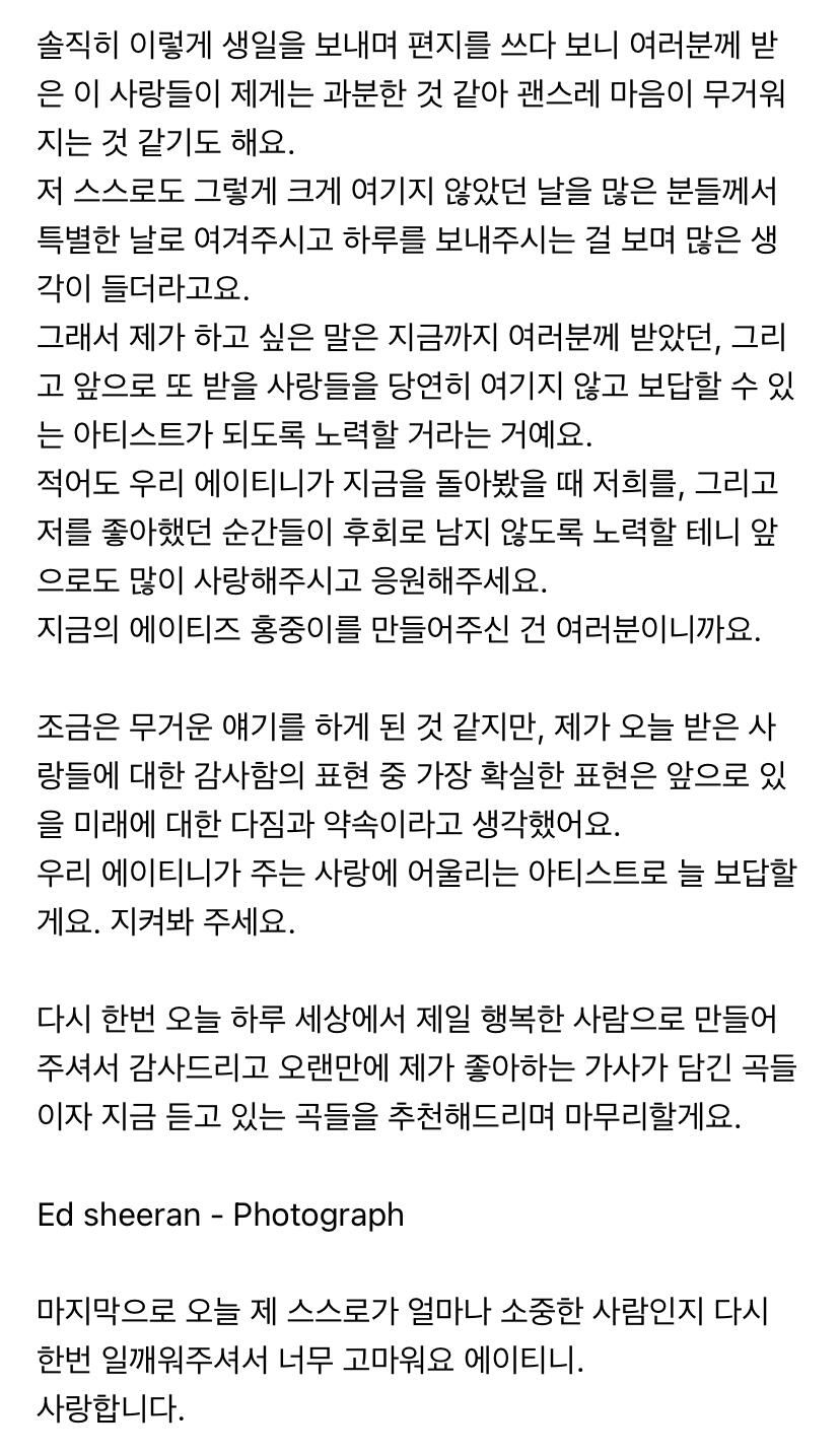 에이티니에게 하고 싶은 말