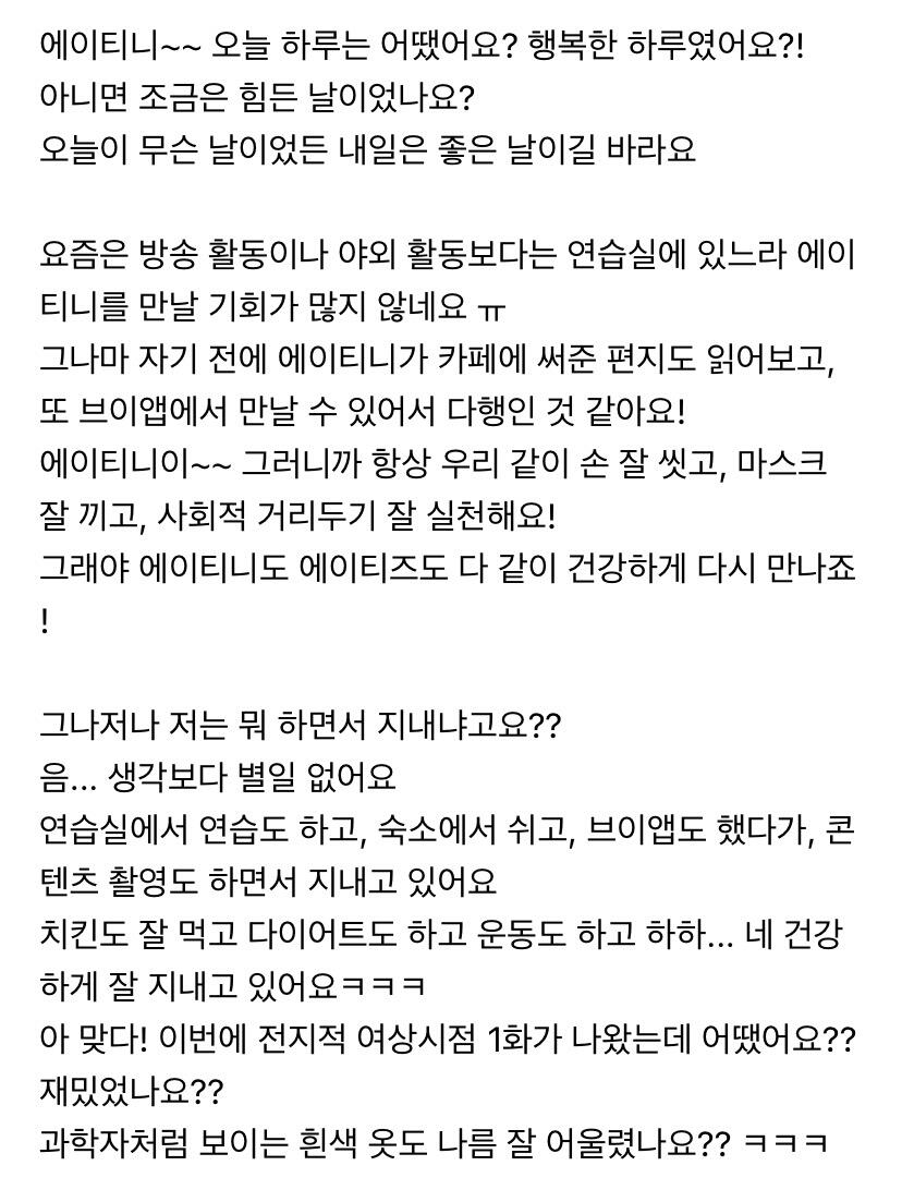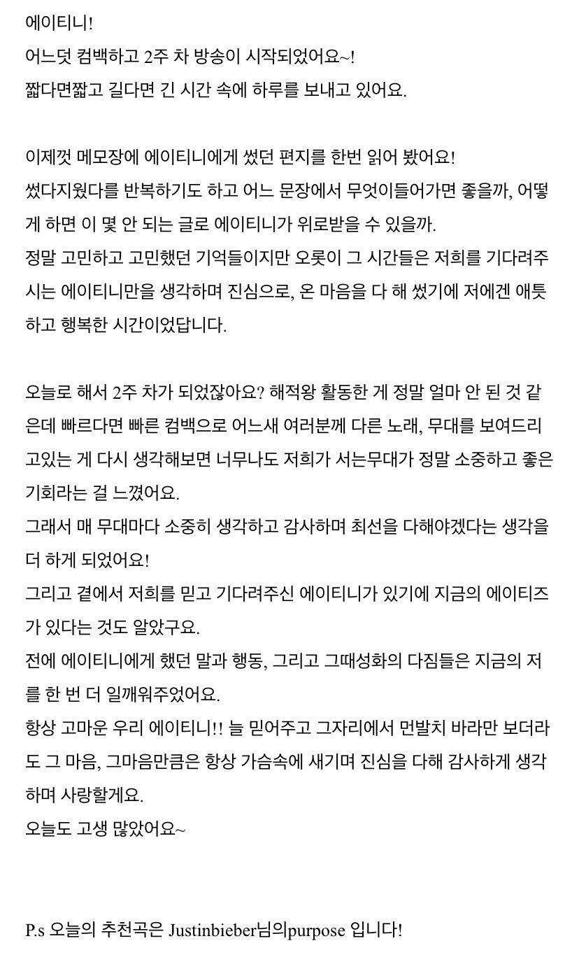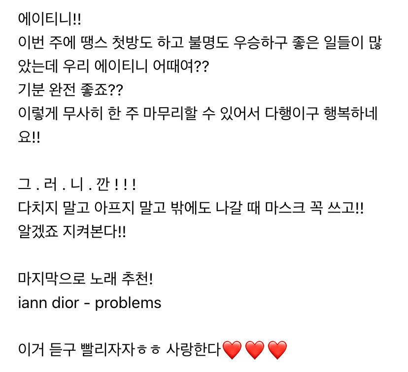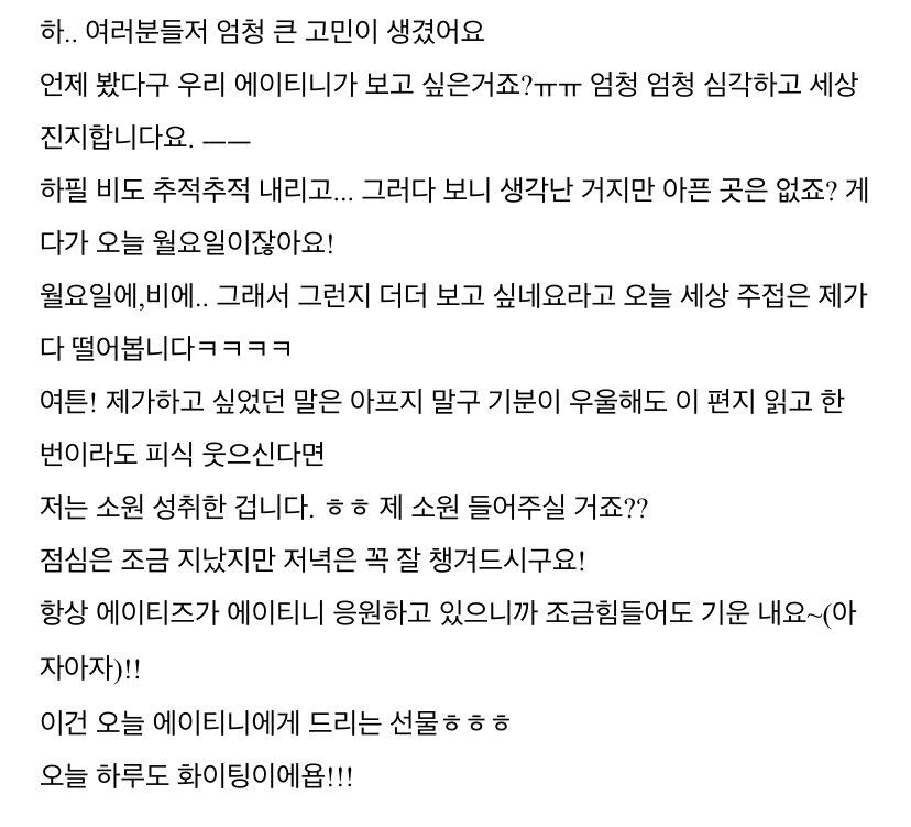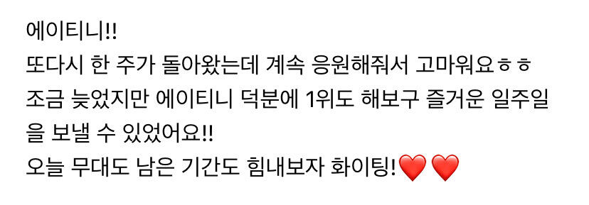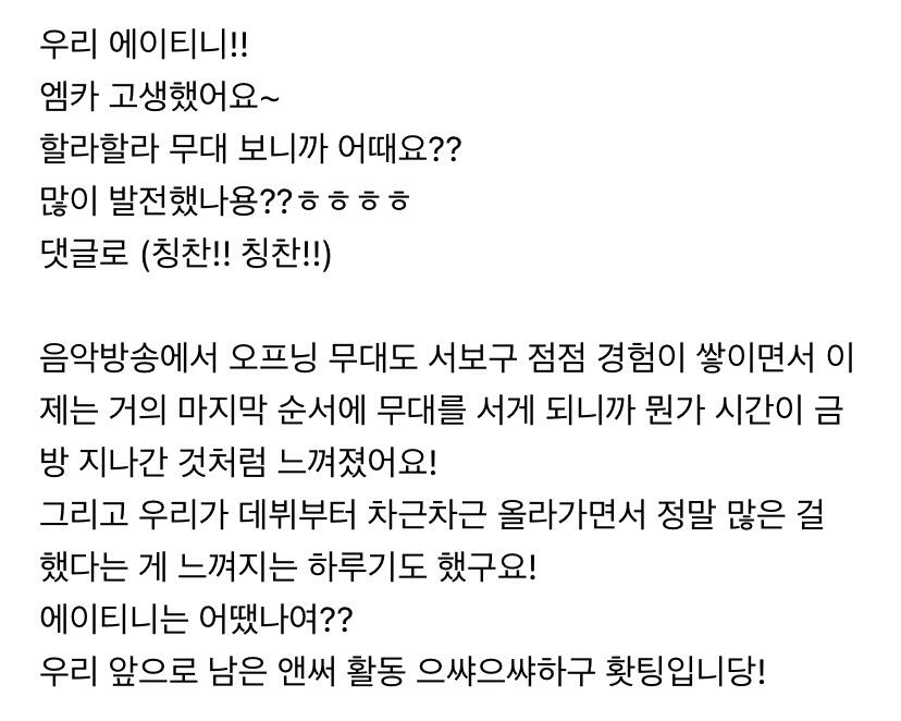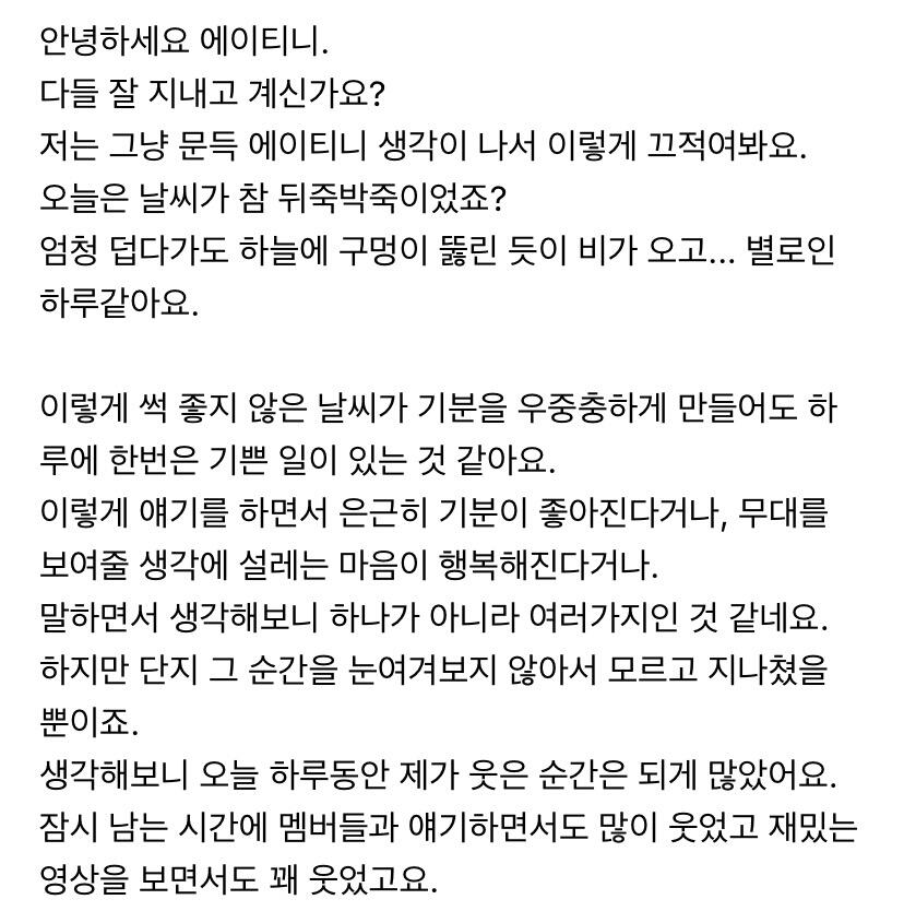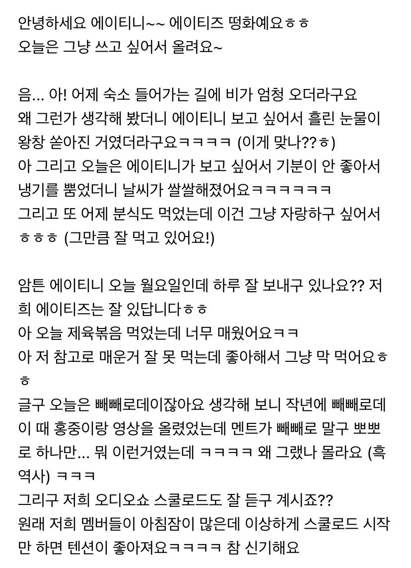 이번 주도 너무 고생 많았어요 에이티니