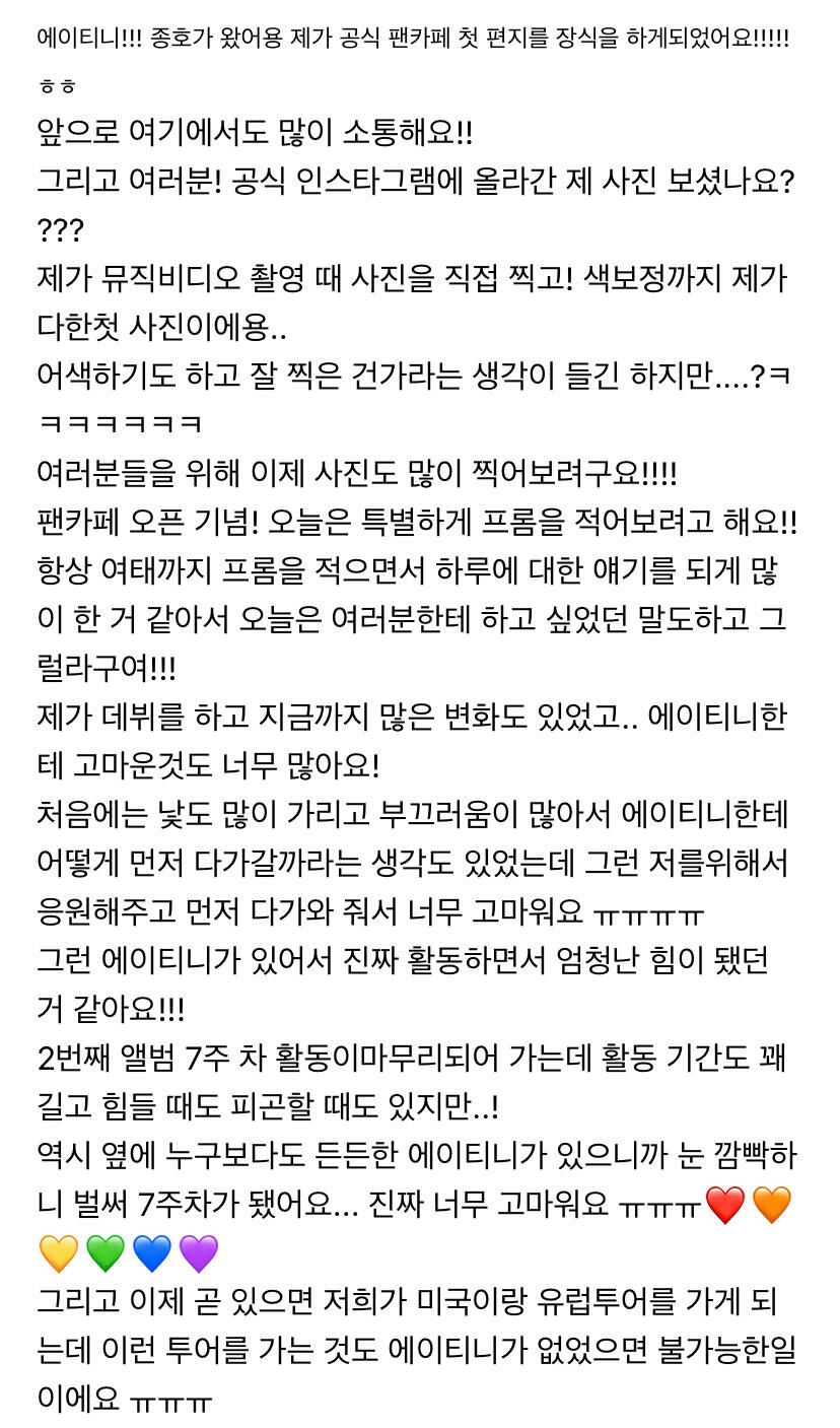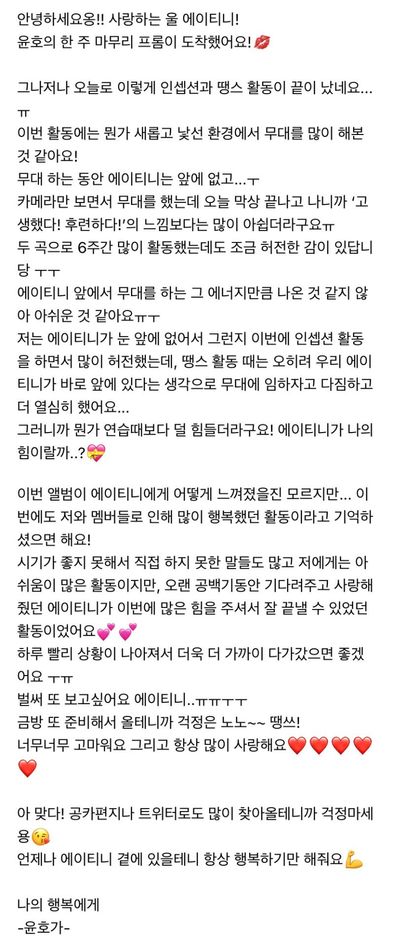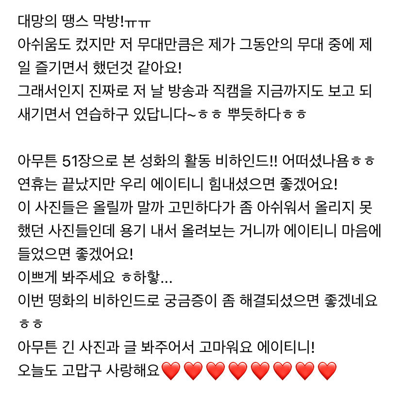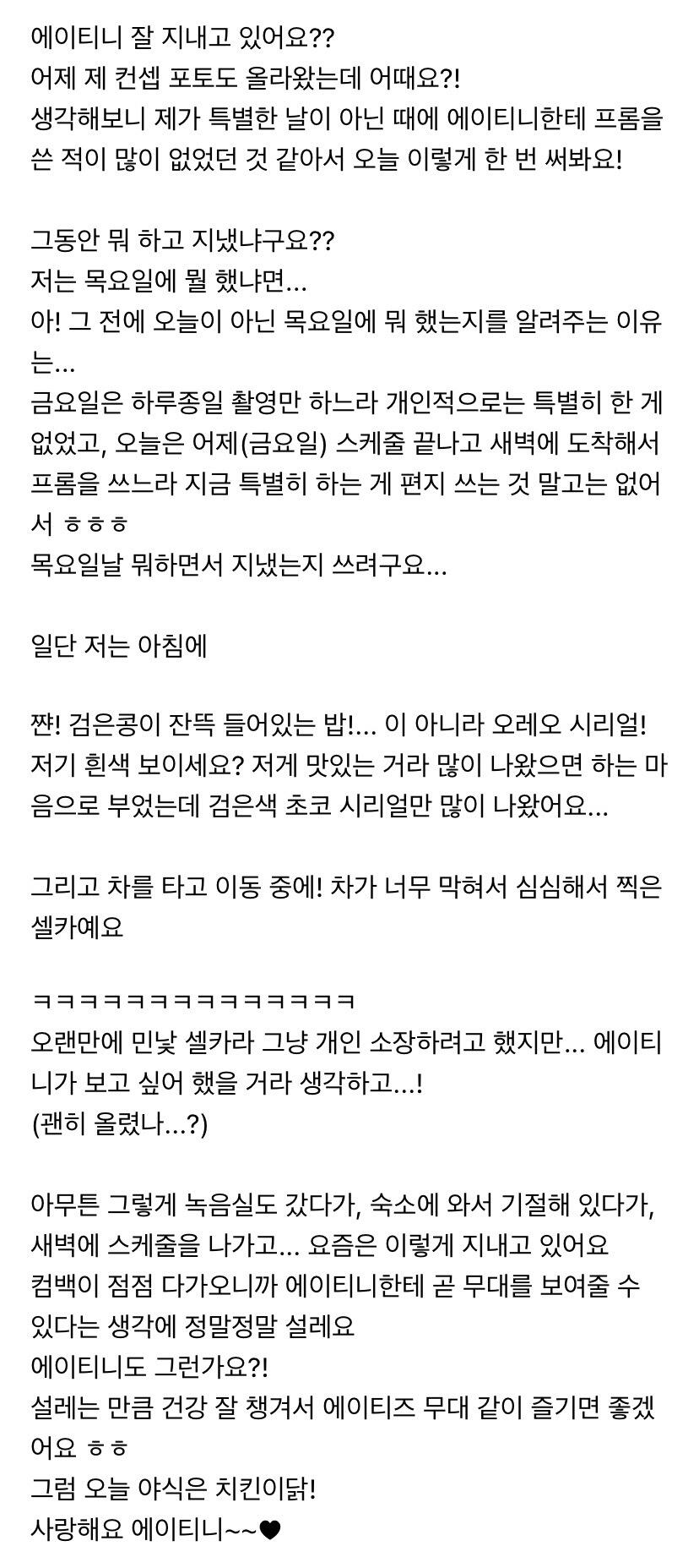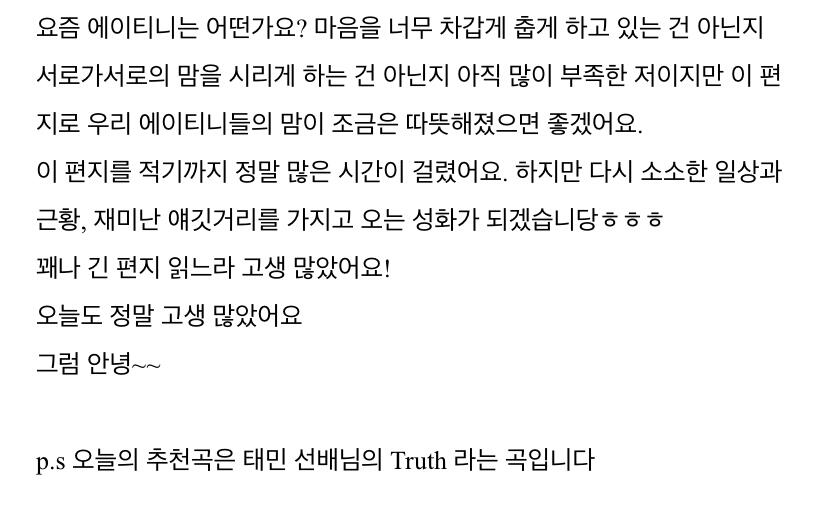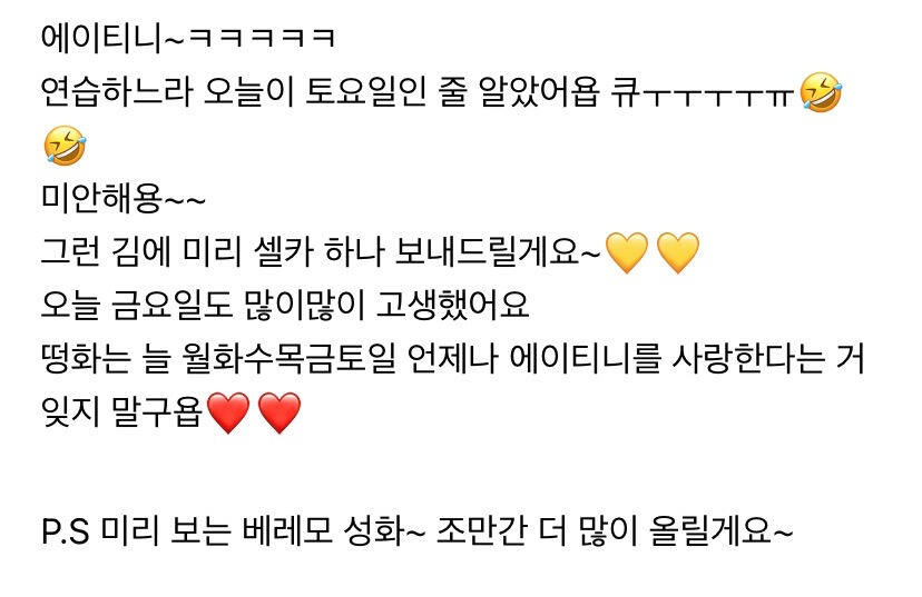 이번 주도 너무 고생 많았어요 에이티니