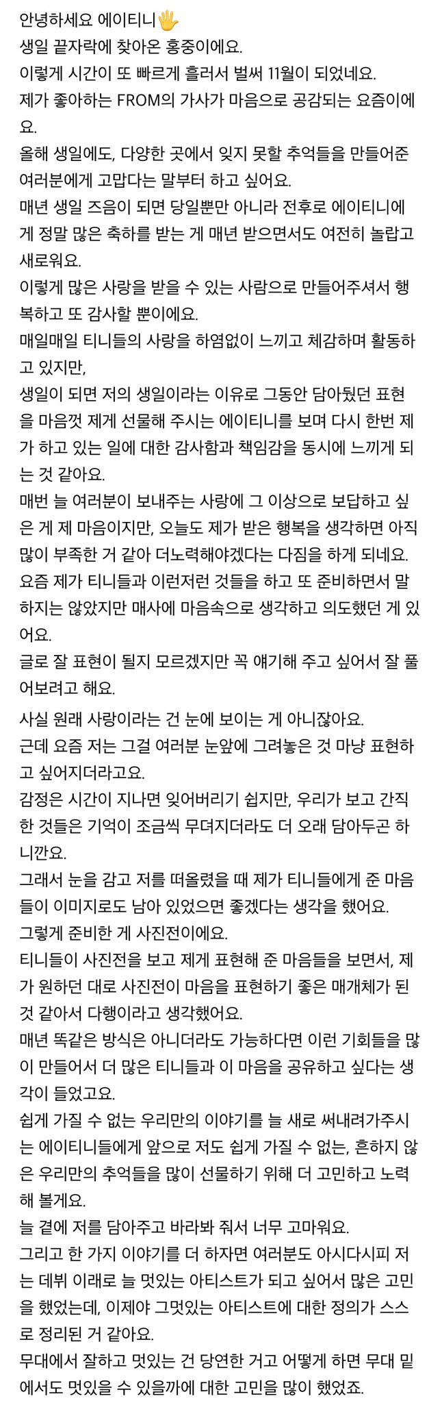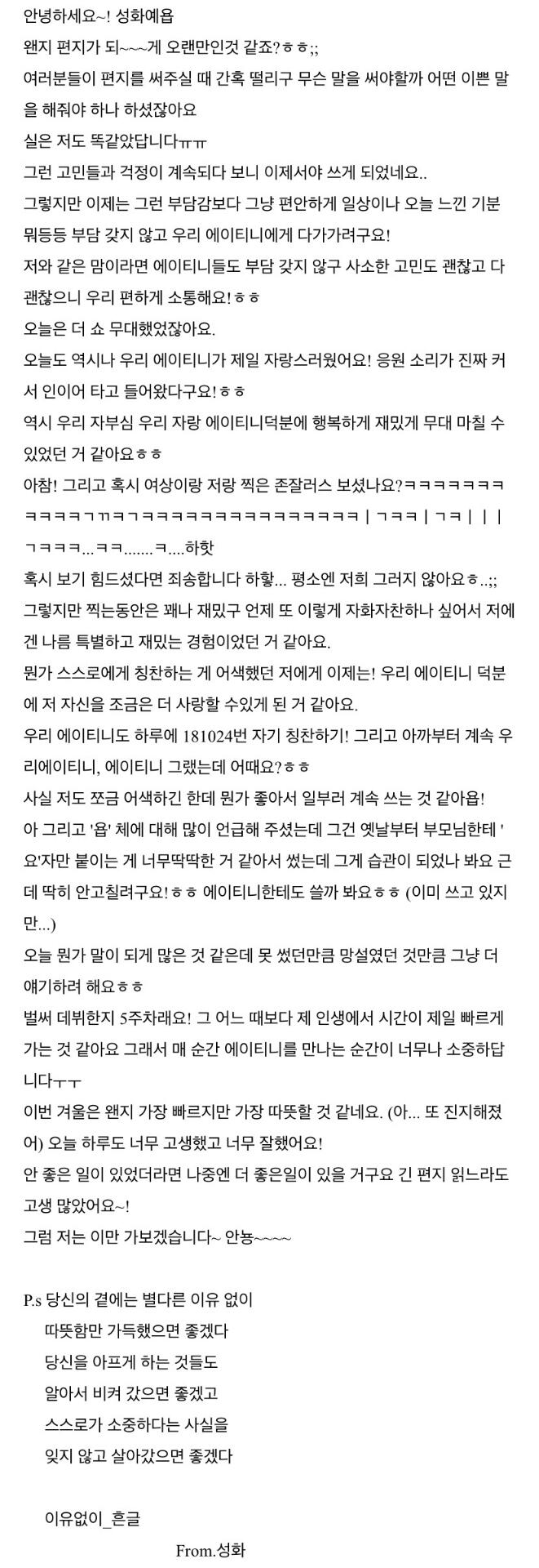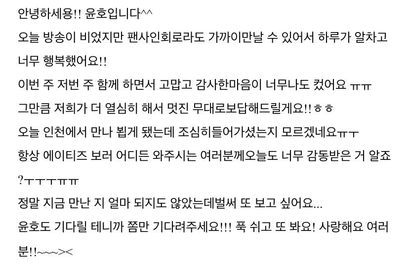 오랜만에 팬미팅을 앞두고 쓰는 From