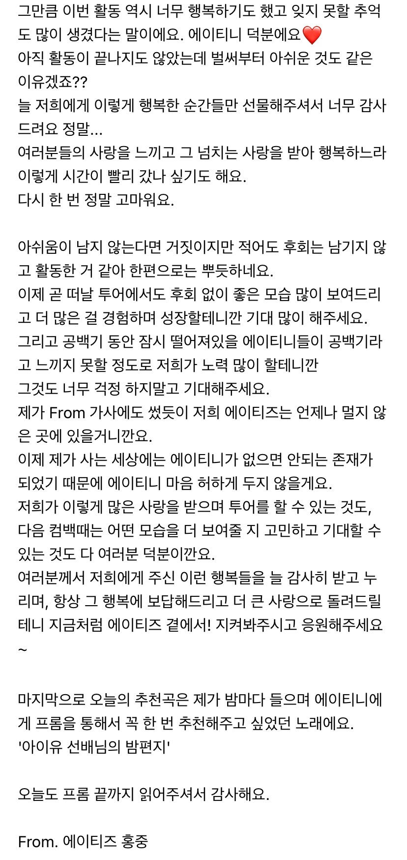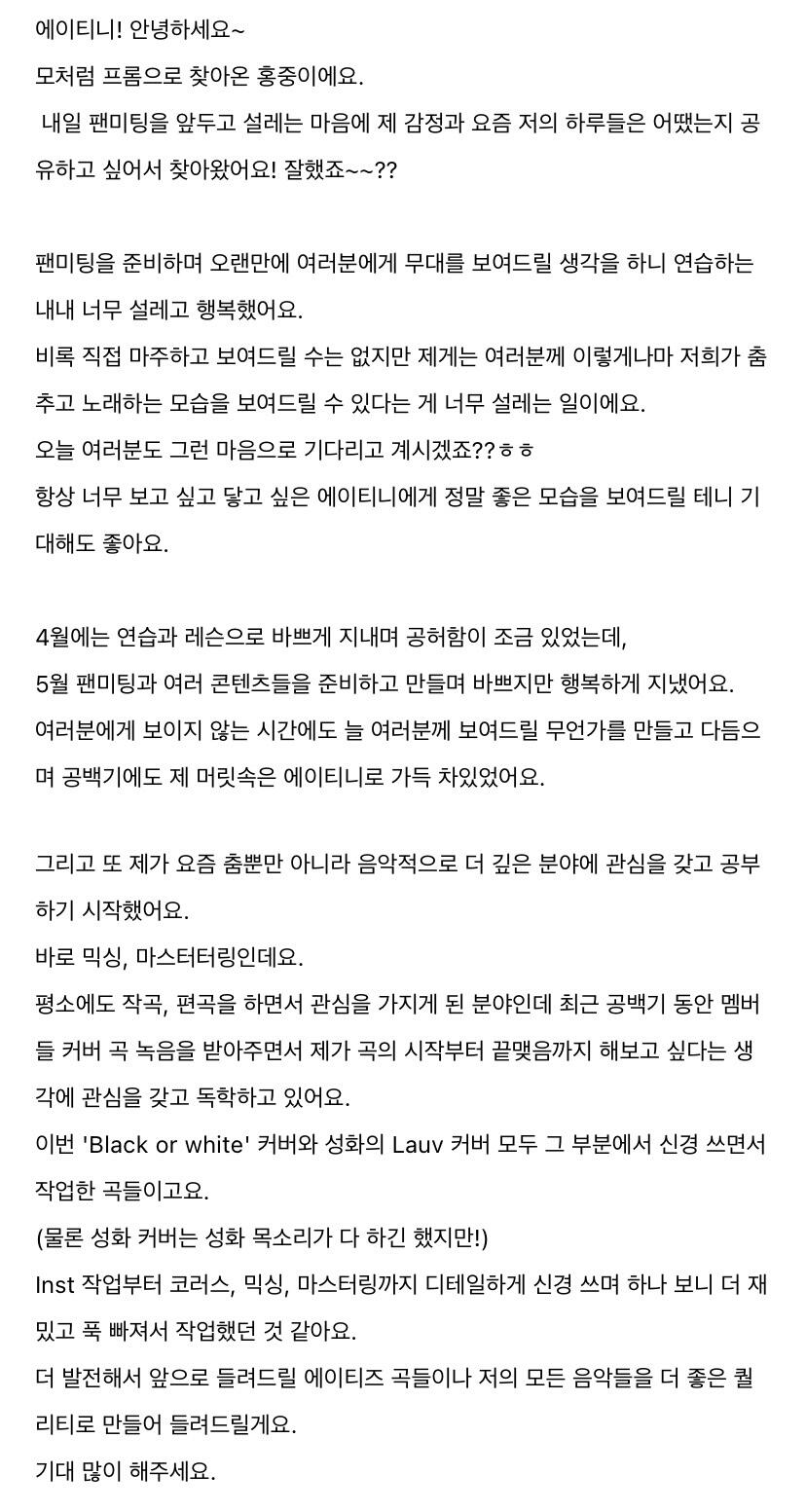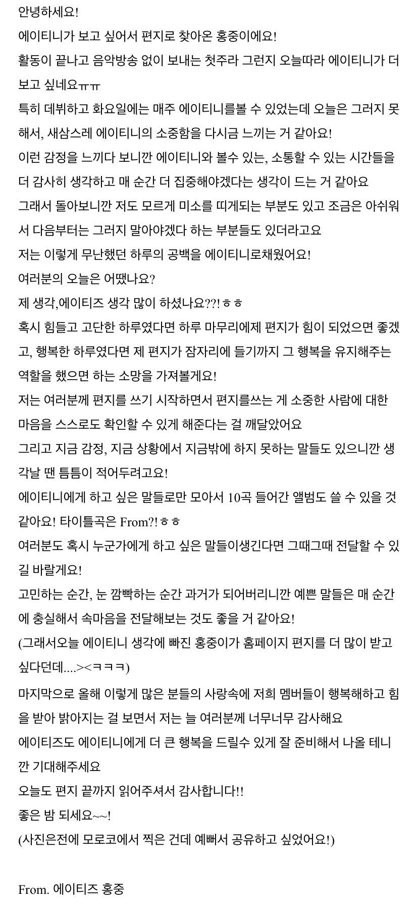 오랜만에 팬미팅을 앞두고 쓰는 From