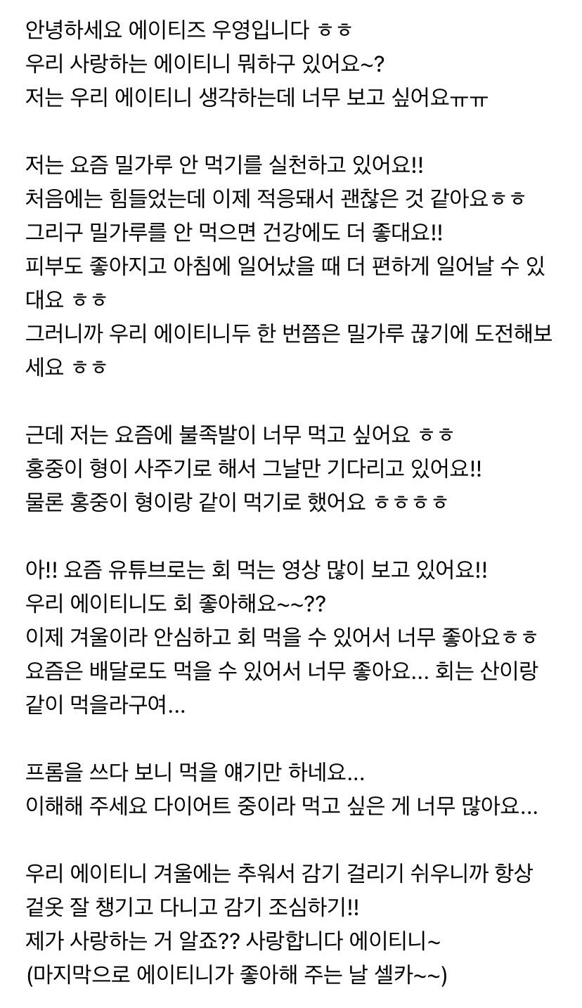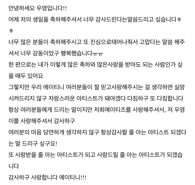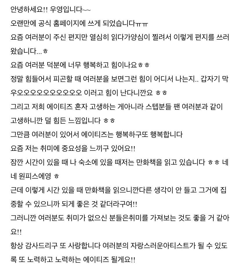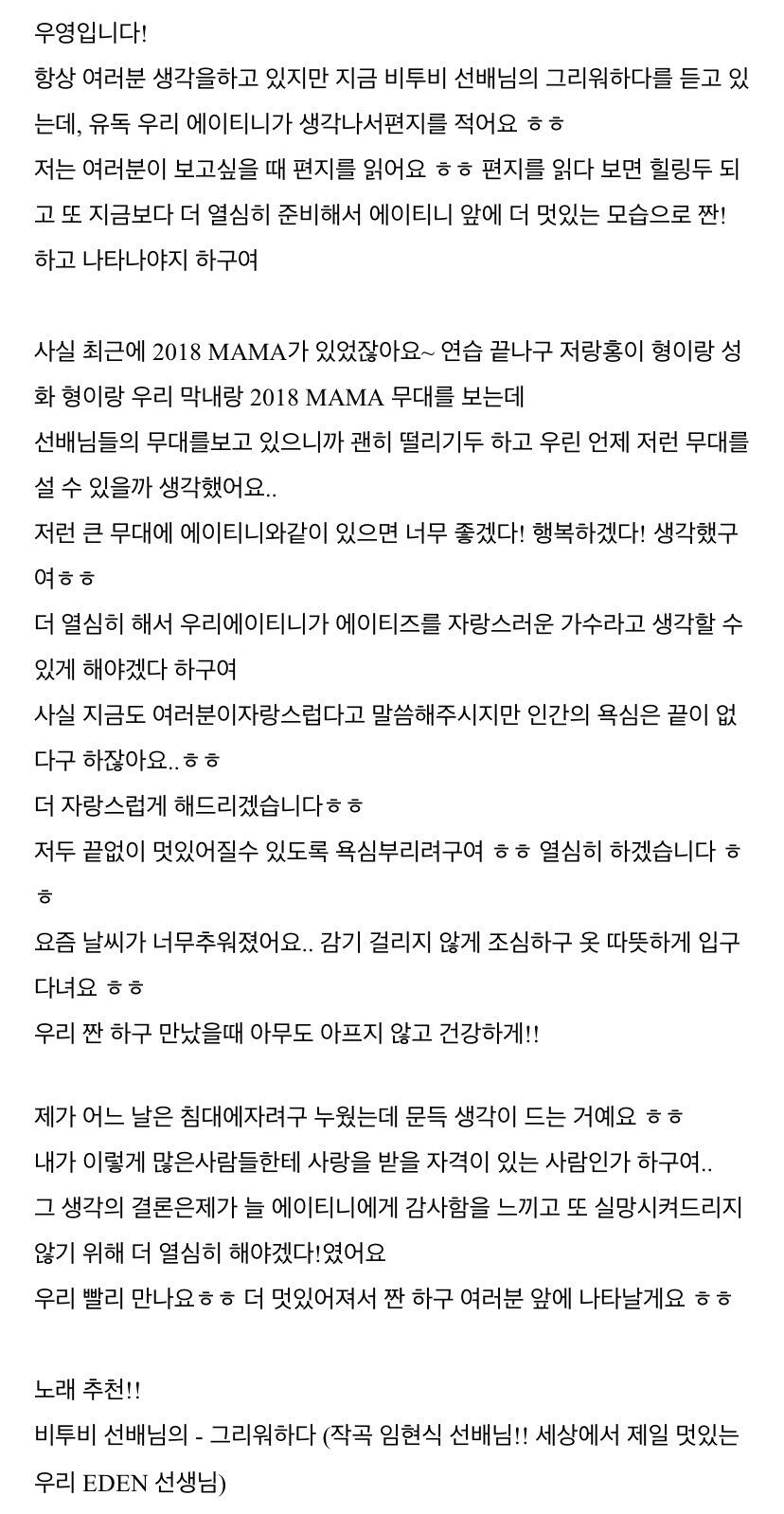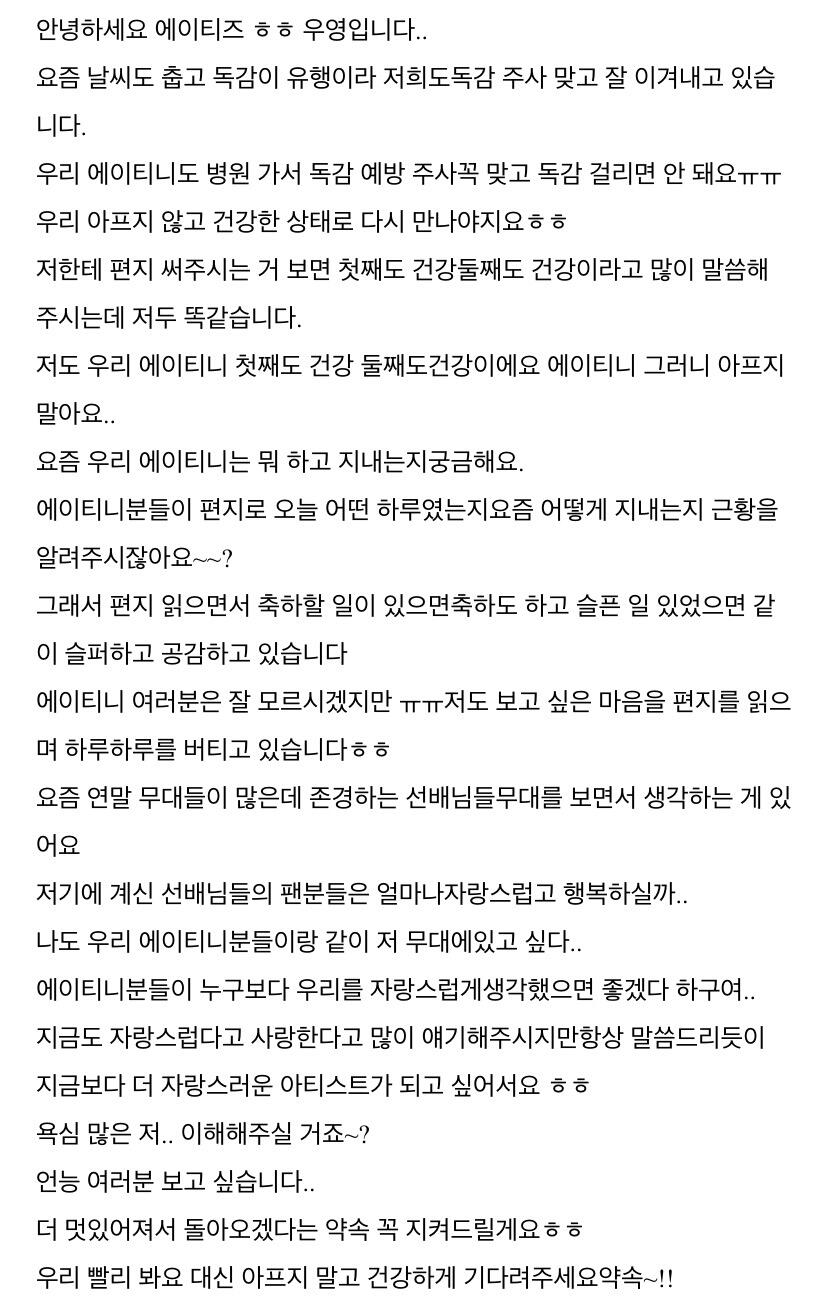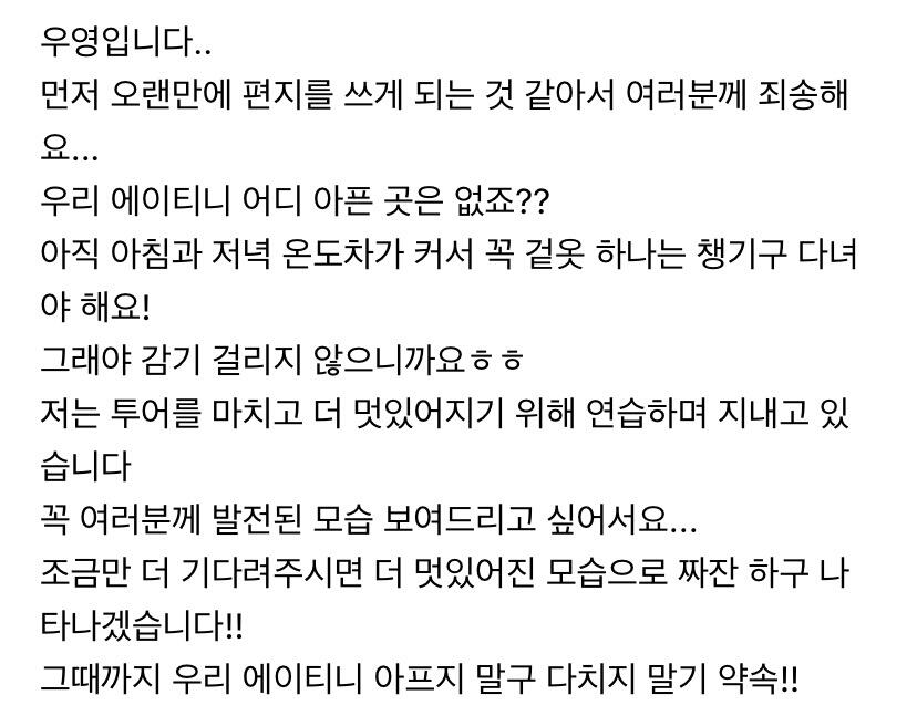 컴백하고 우영이의 첫 편지 ㅎ