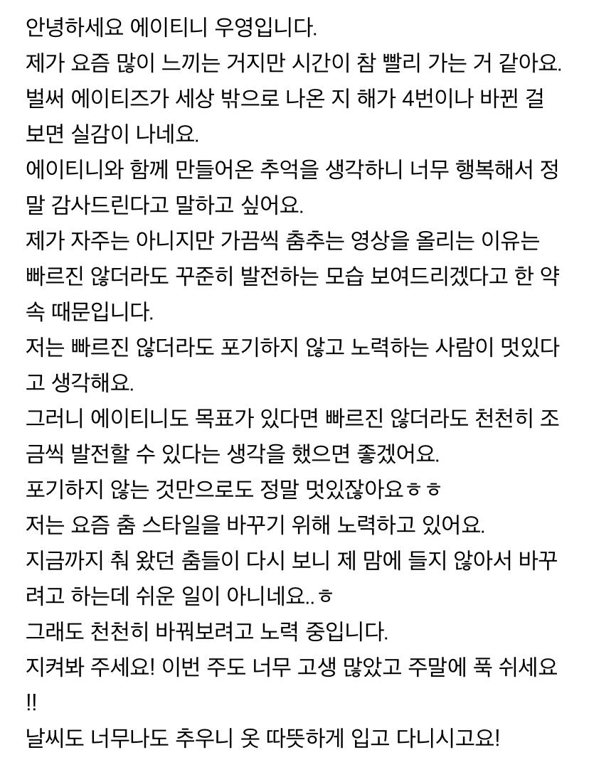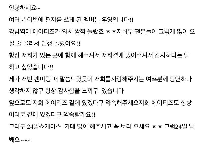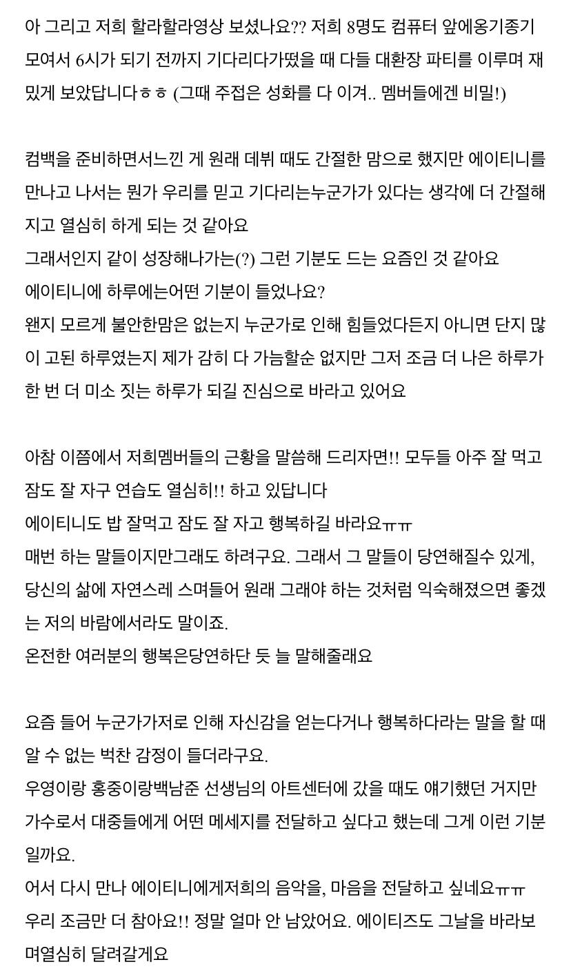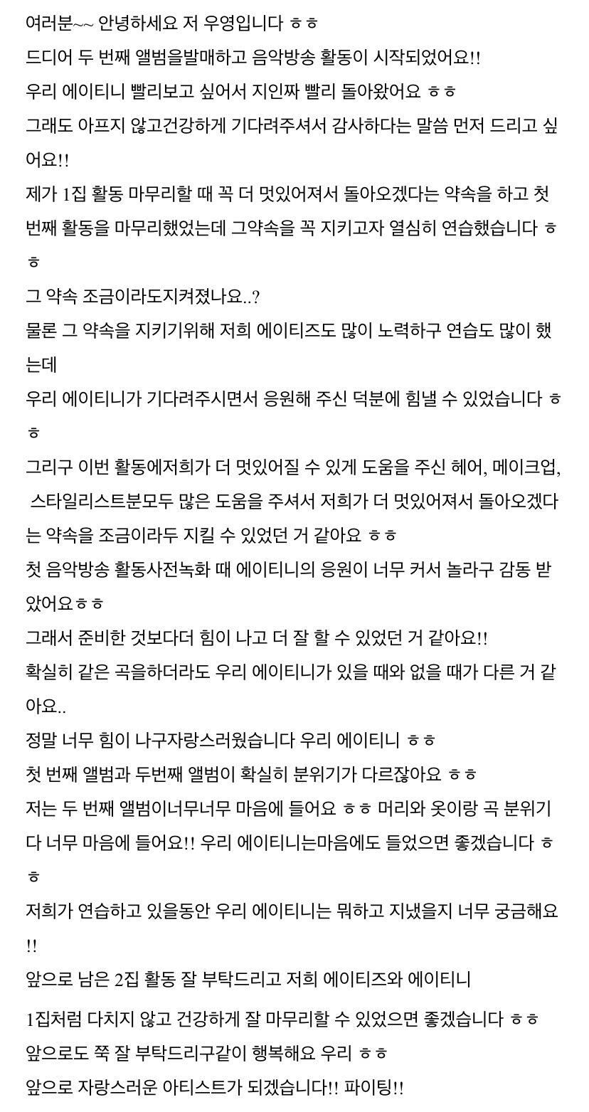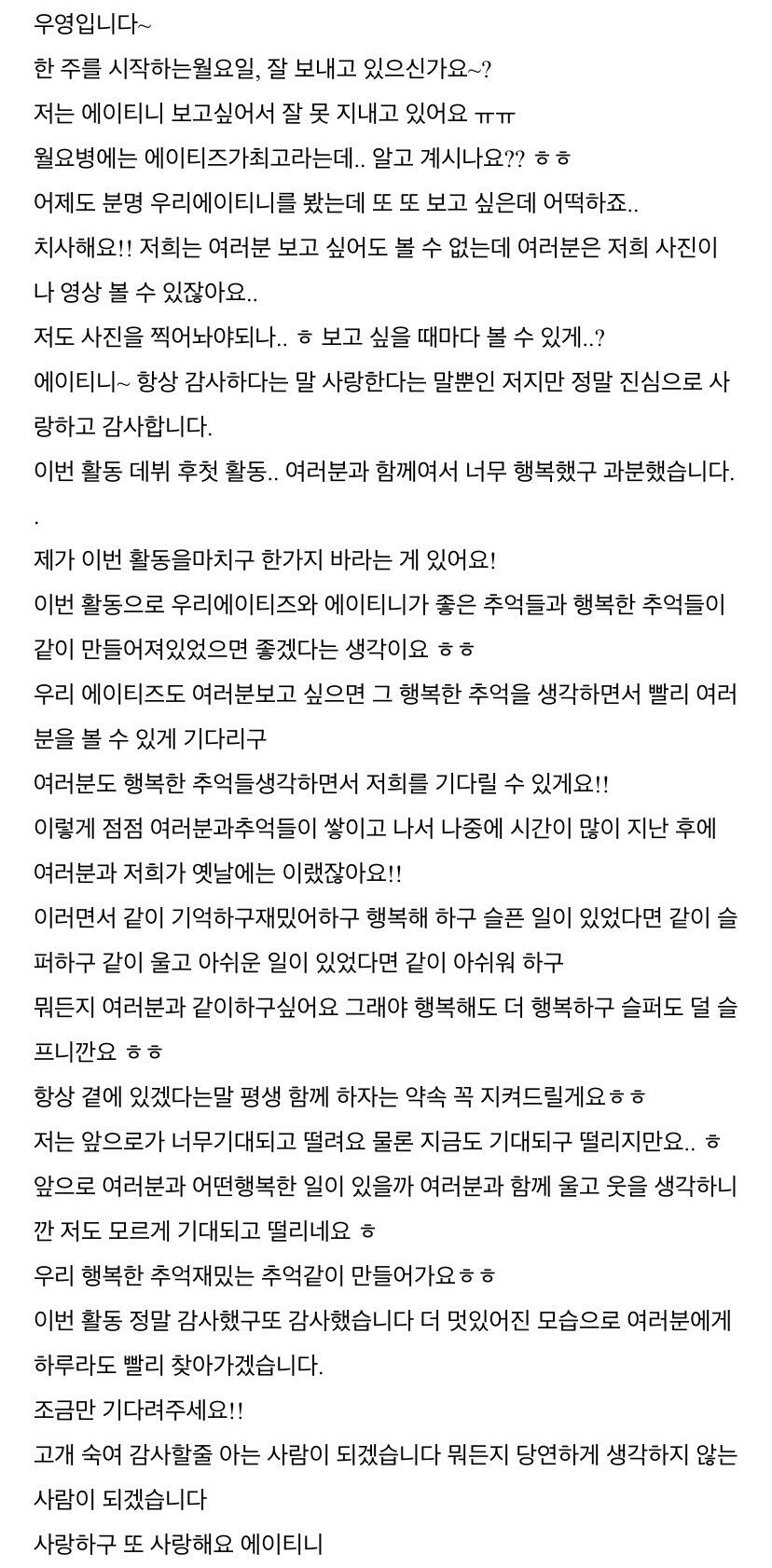 컴백하고 우영이의 첫 편지 ㅎ