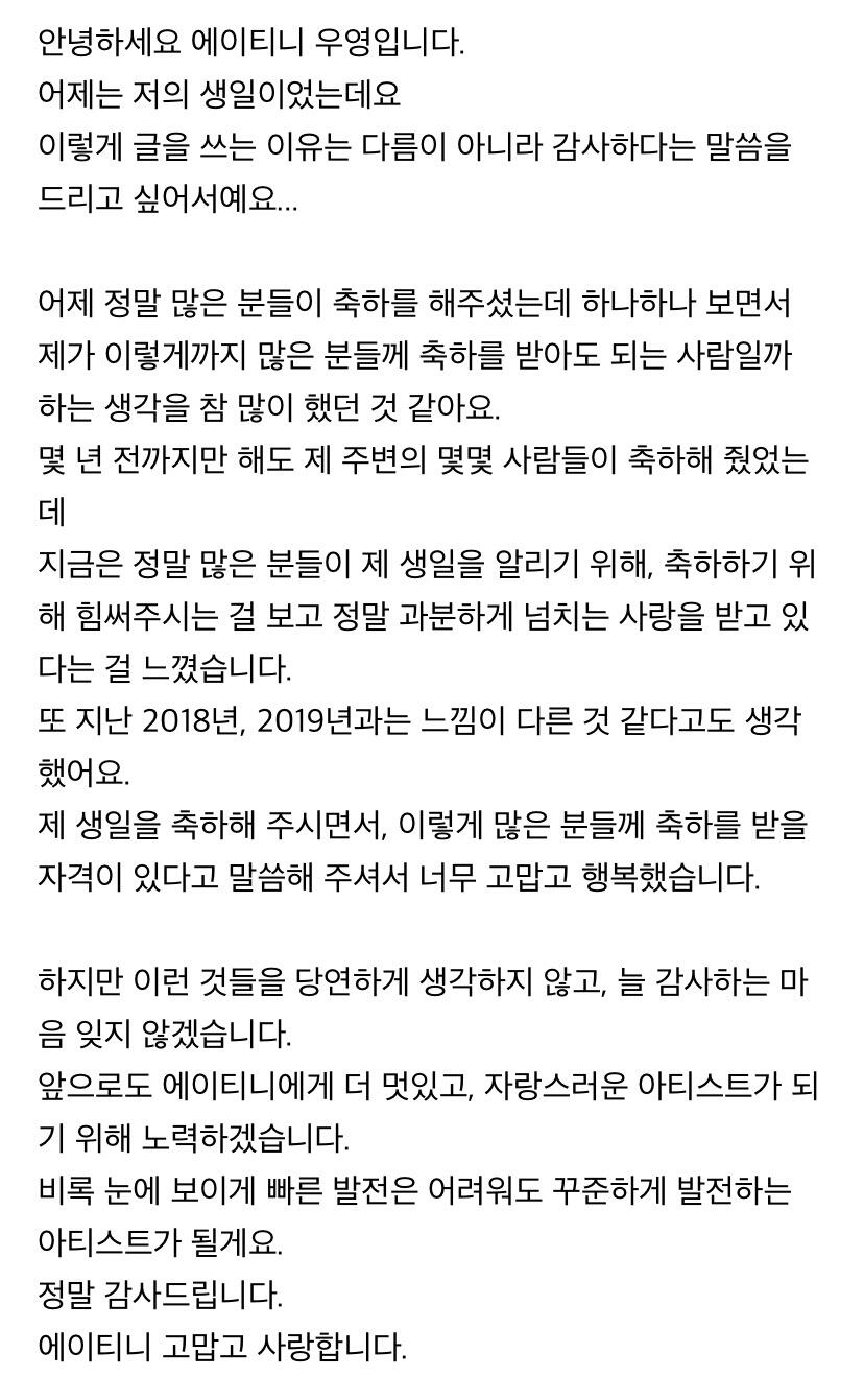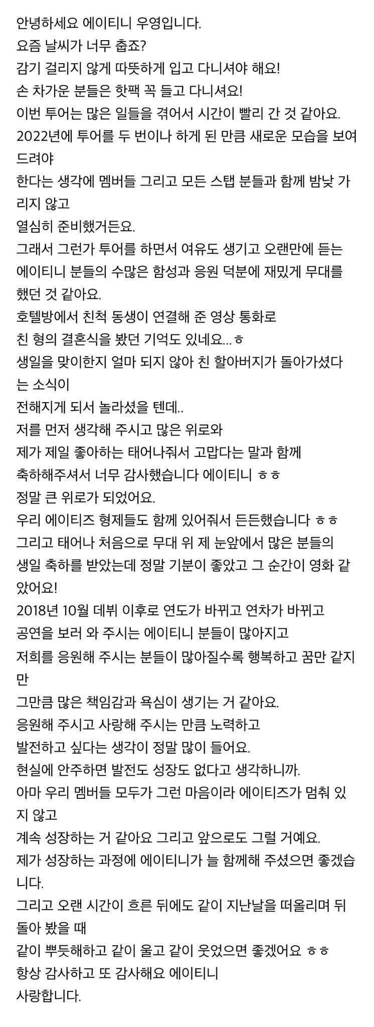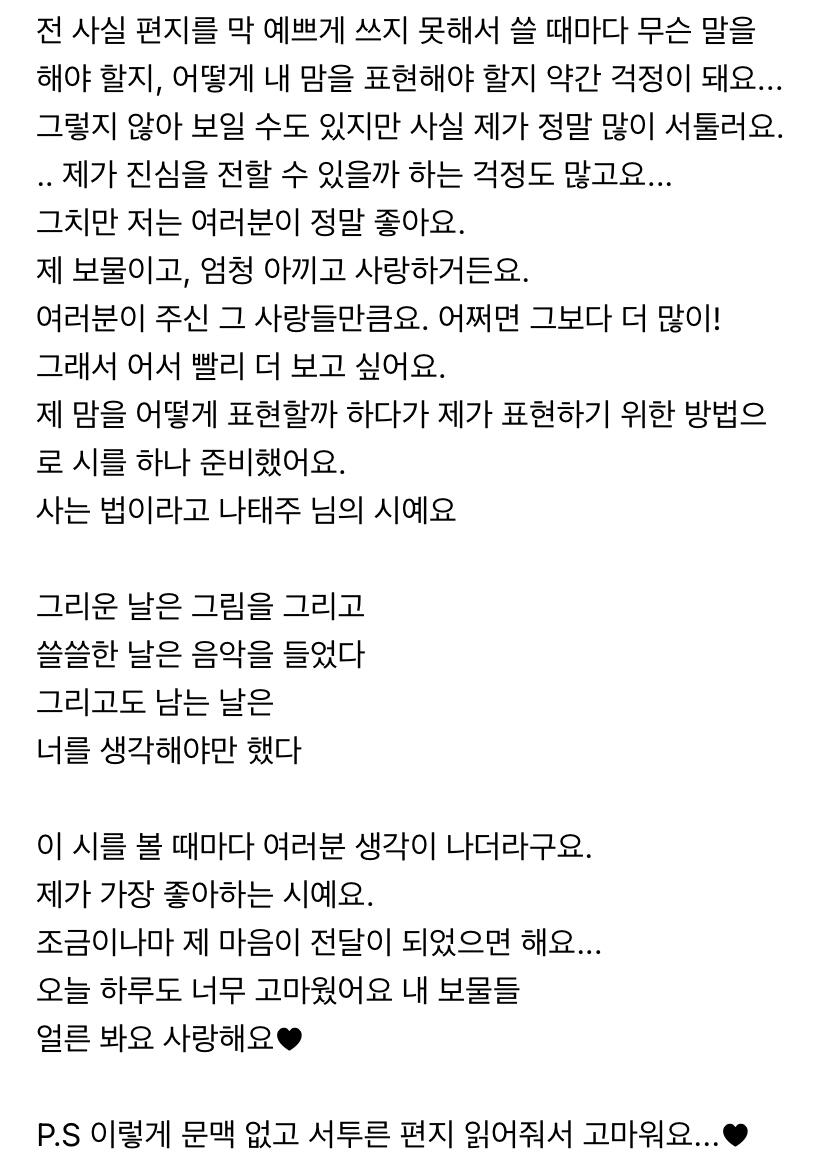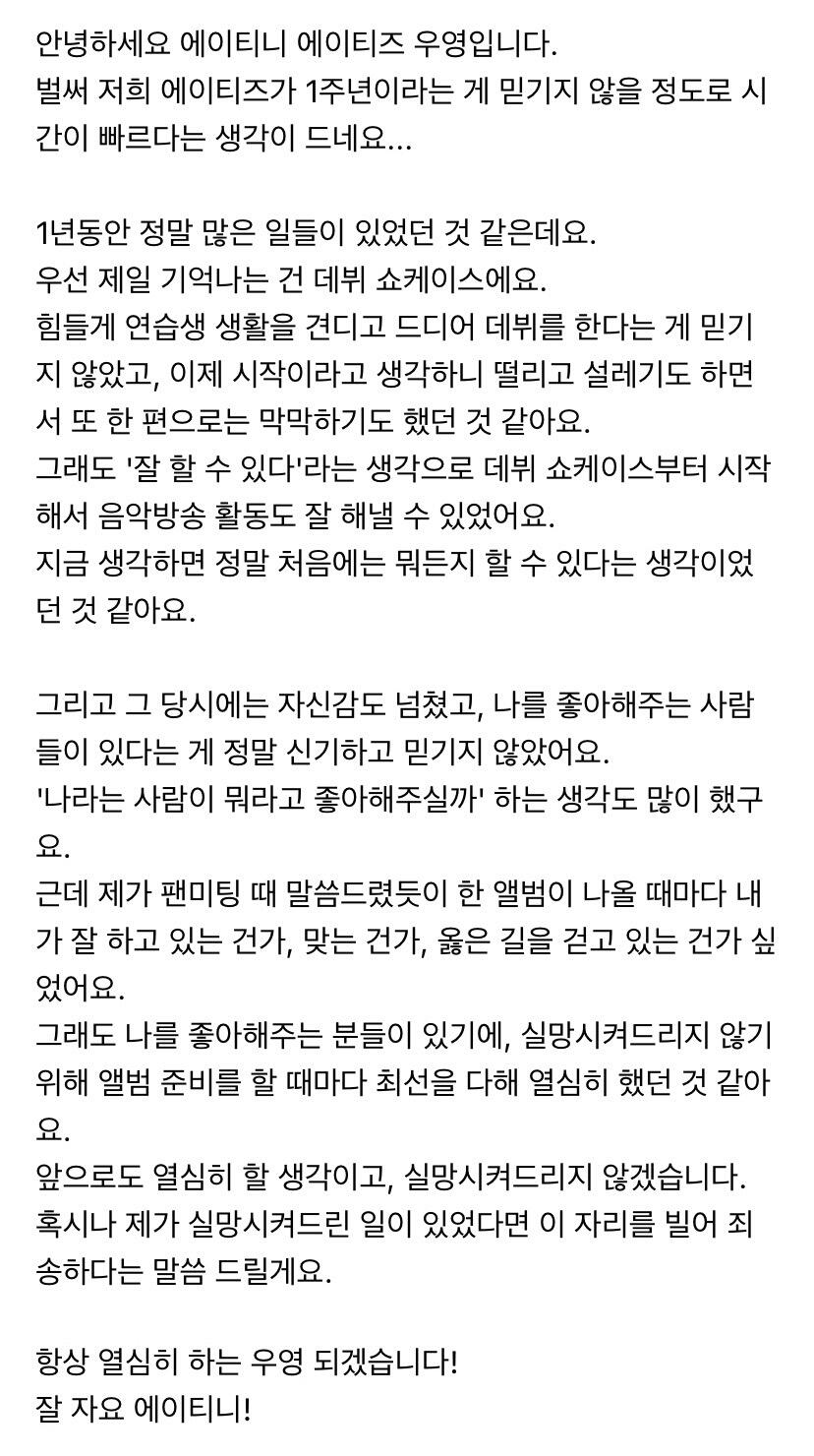 컴백하고 우영이의 첫 편지 ㅎ