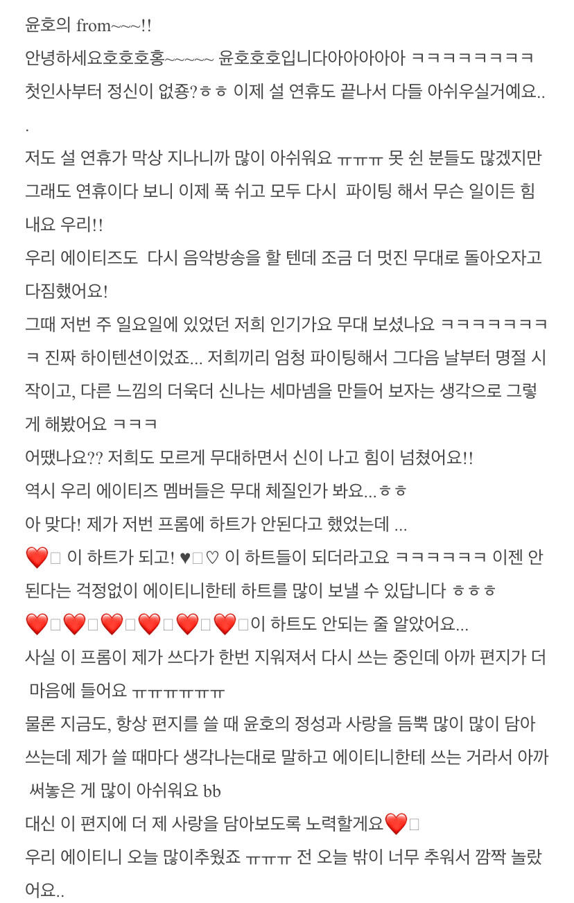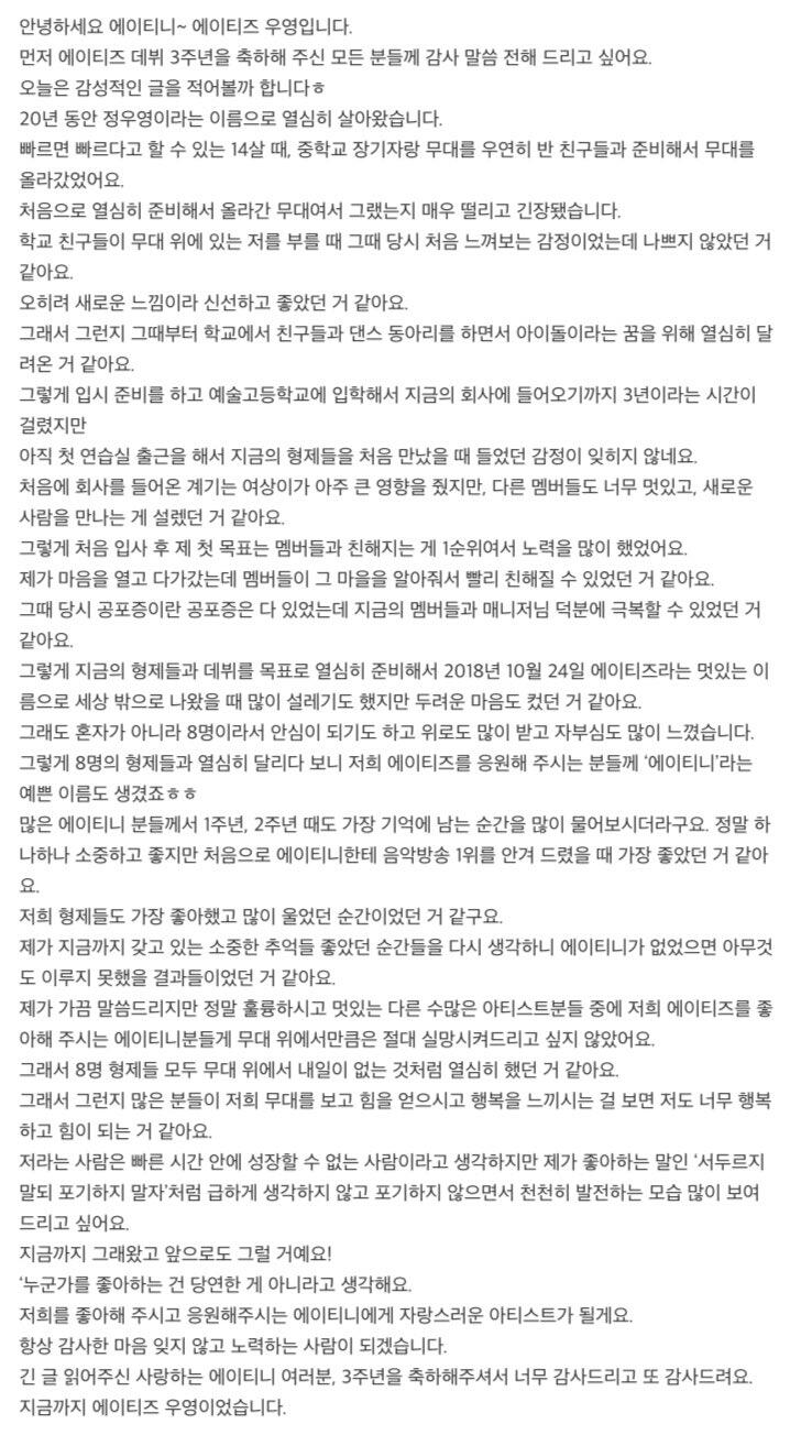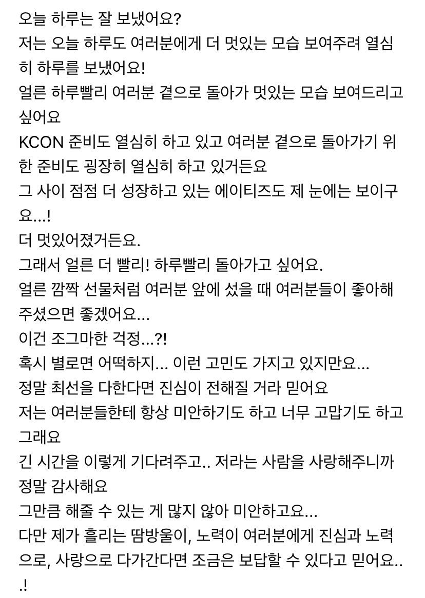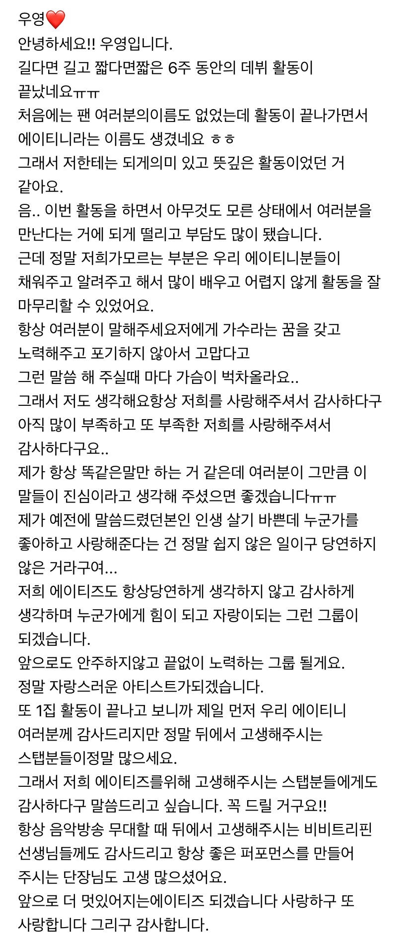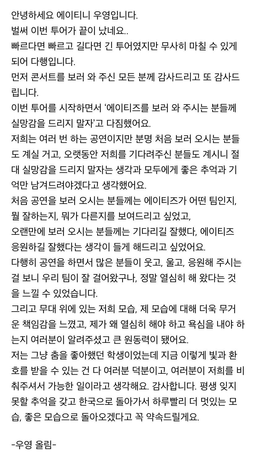 컴백하고 우영이의 첫 편지 ㅎ