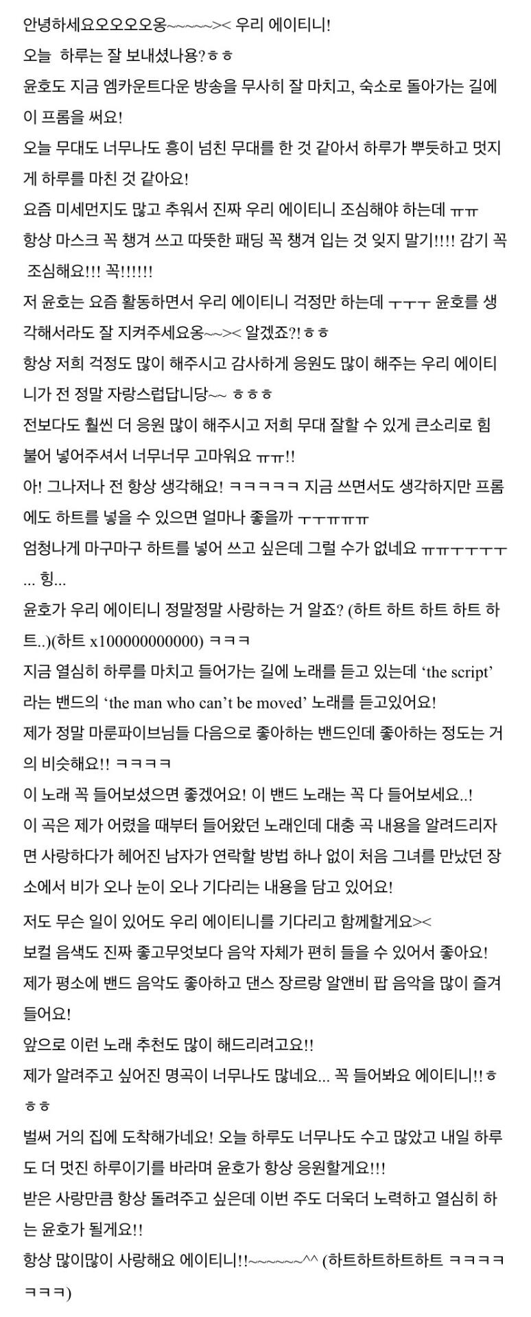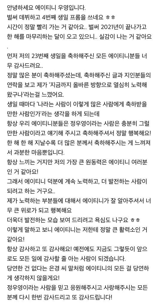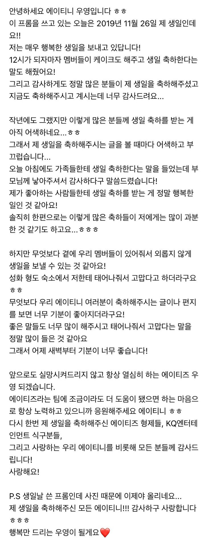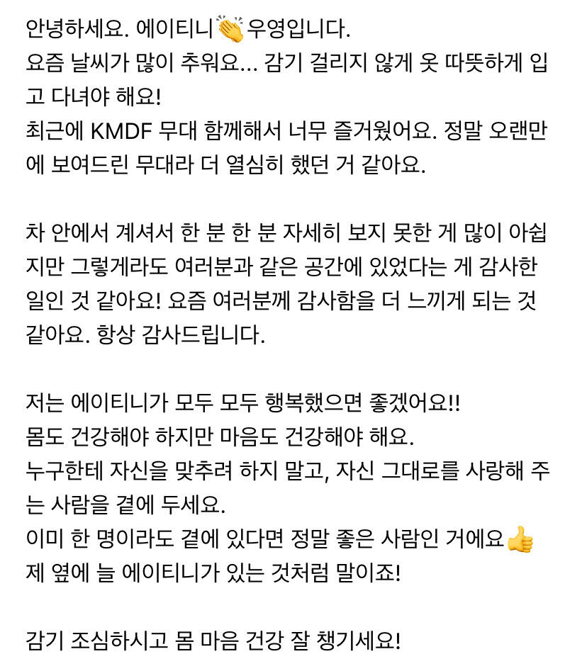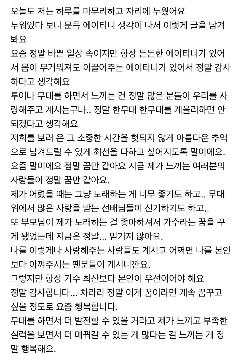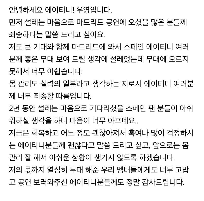 컴백하고 우영이의 첫 편지 ㅎ