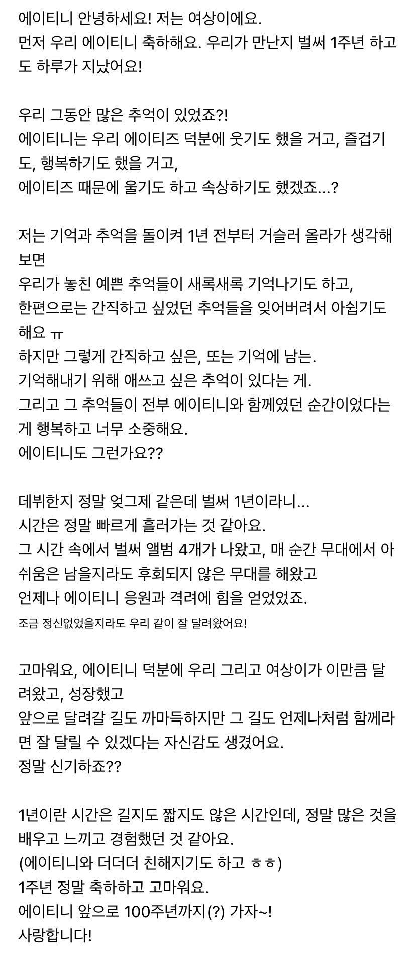 To. 1주년을 맞은 우리 에이티니