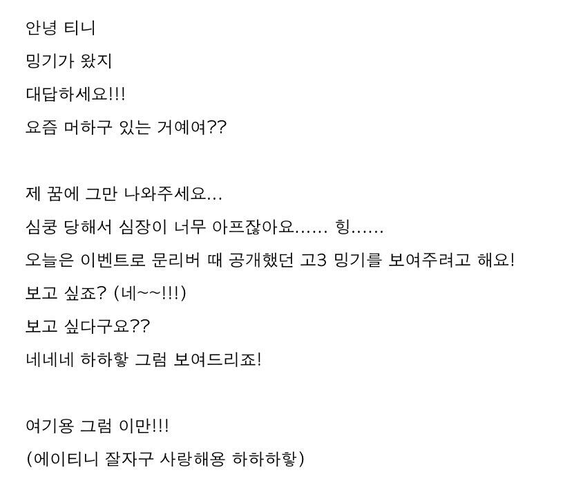안녕하세요 에이티니 ㅎㅎㅎ