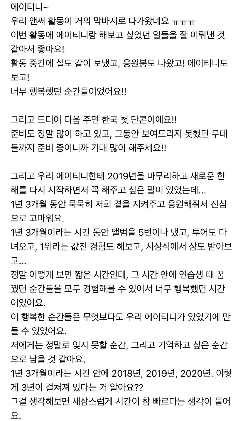 2020년 고생많았을 에이티니에게✨