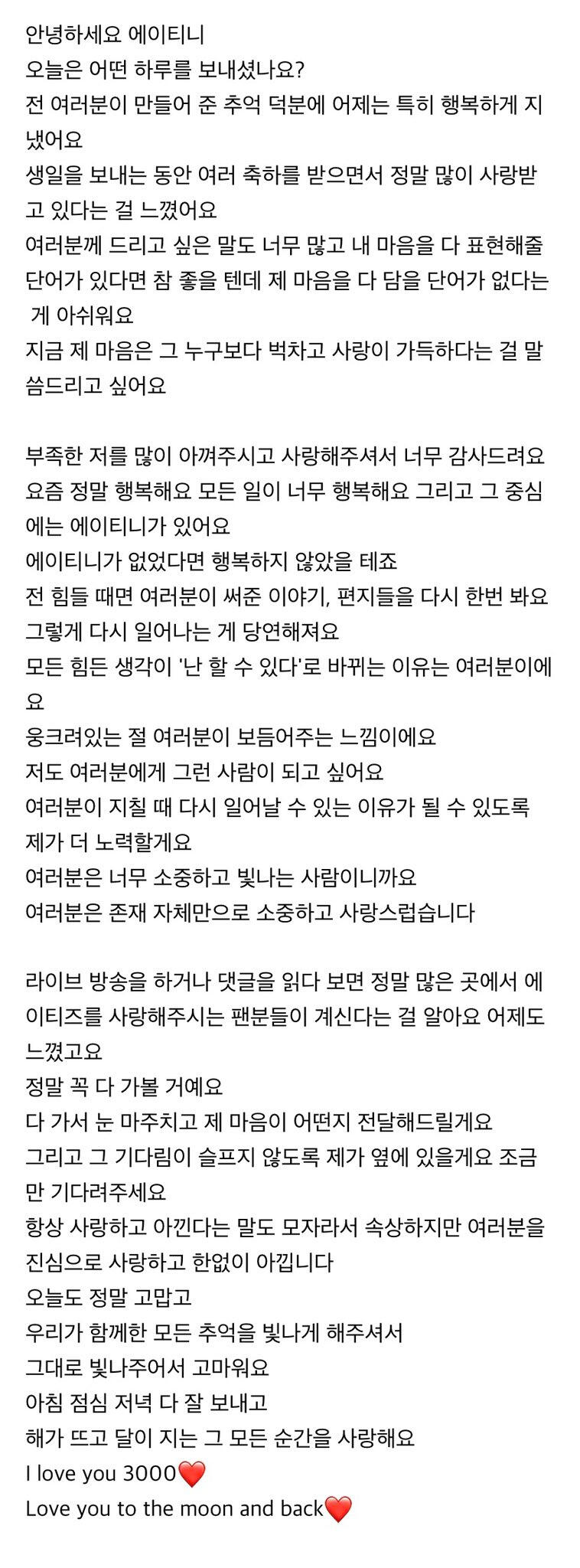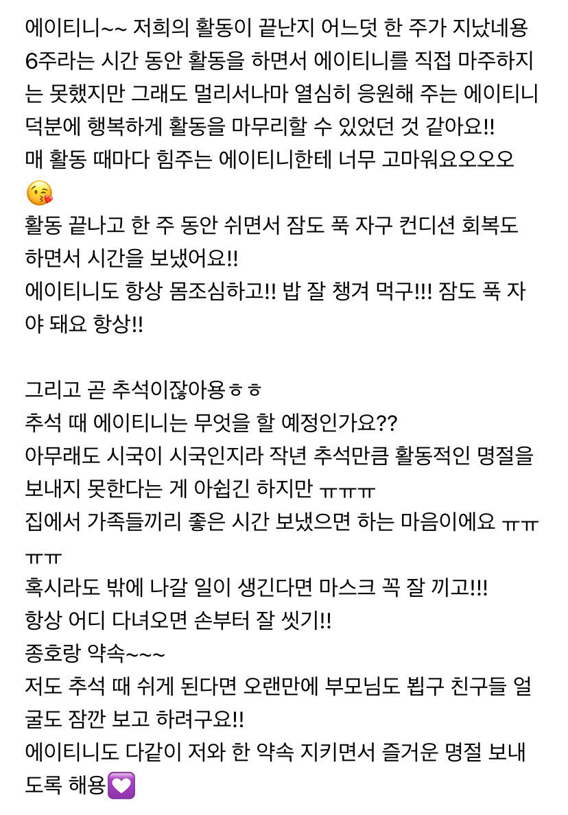 이번 주도 수고한 에이티니에게🌙🌙🌙