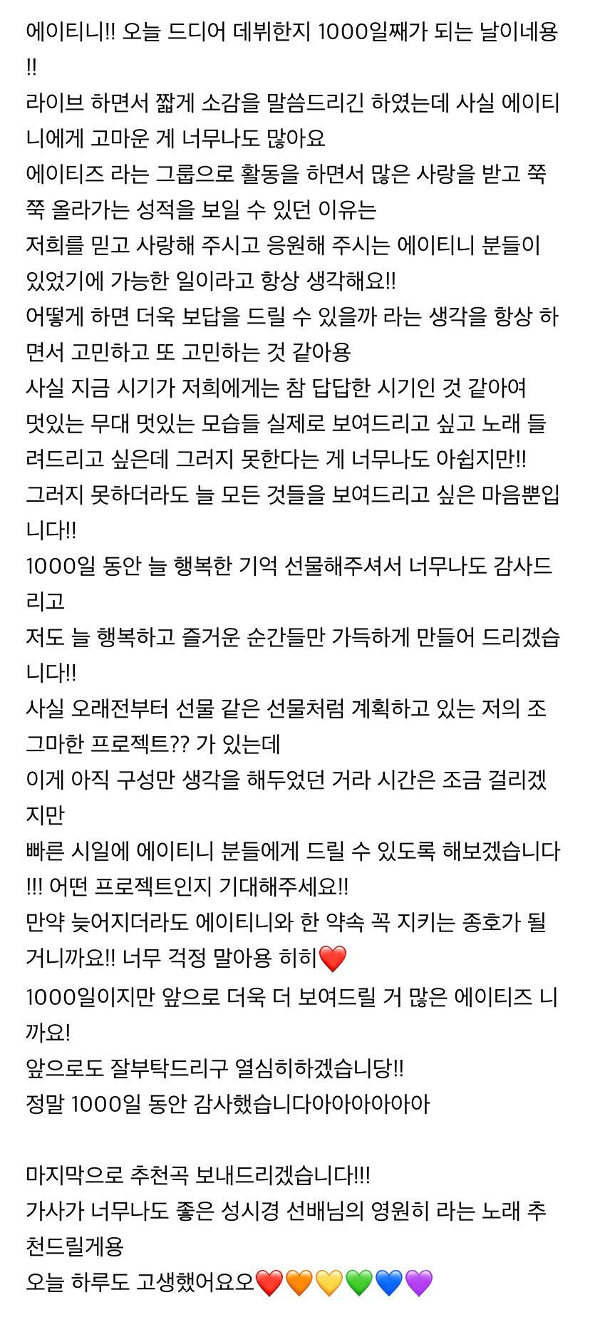 1000일❤️🧡💛💚💙💜