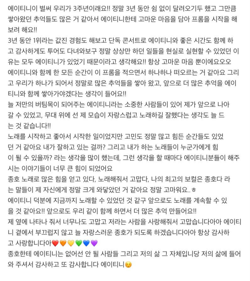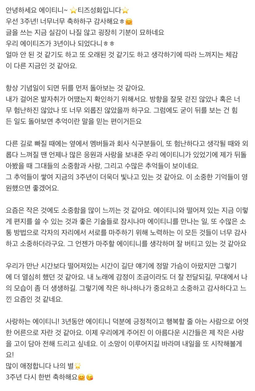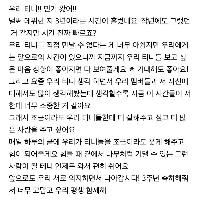 3년 동안 제 옆에 있어 줘서 고마워요💜