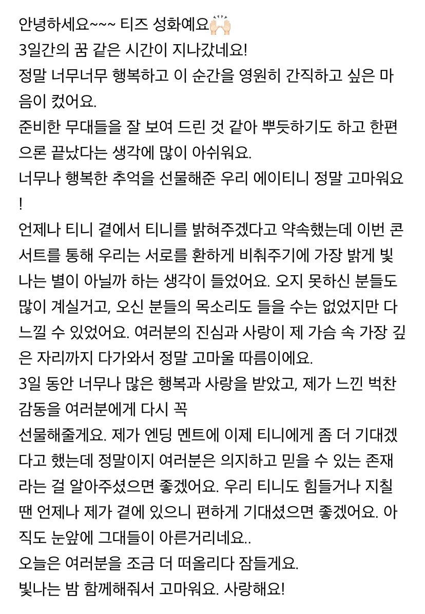3일간 함께 해준 우리 에이티니에게❤